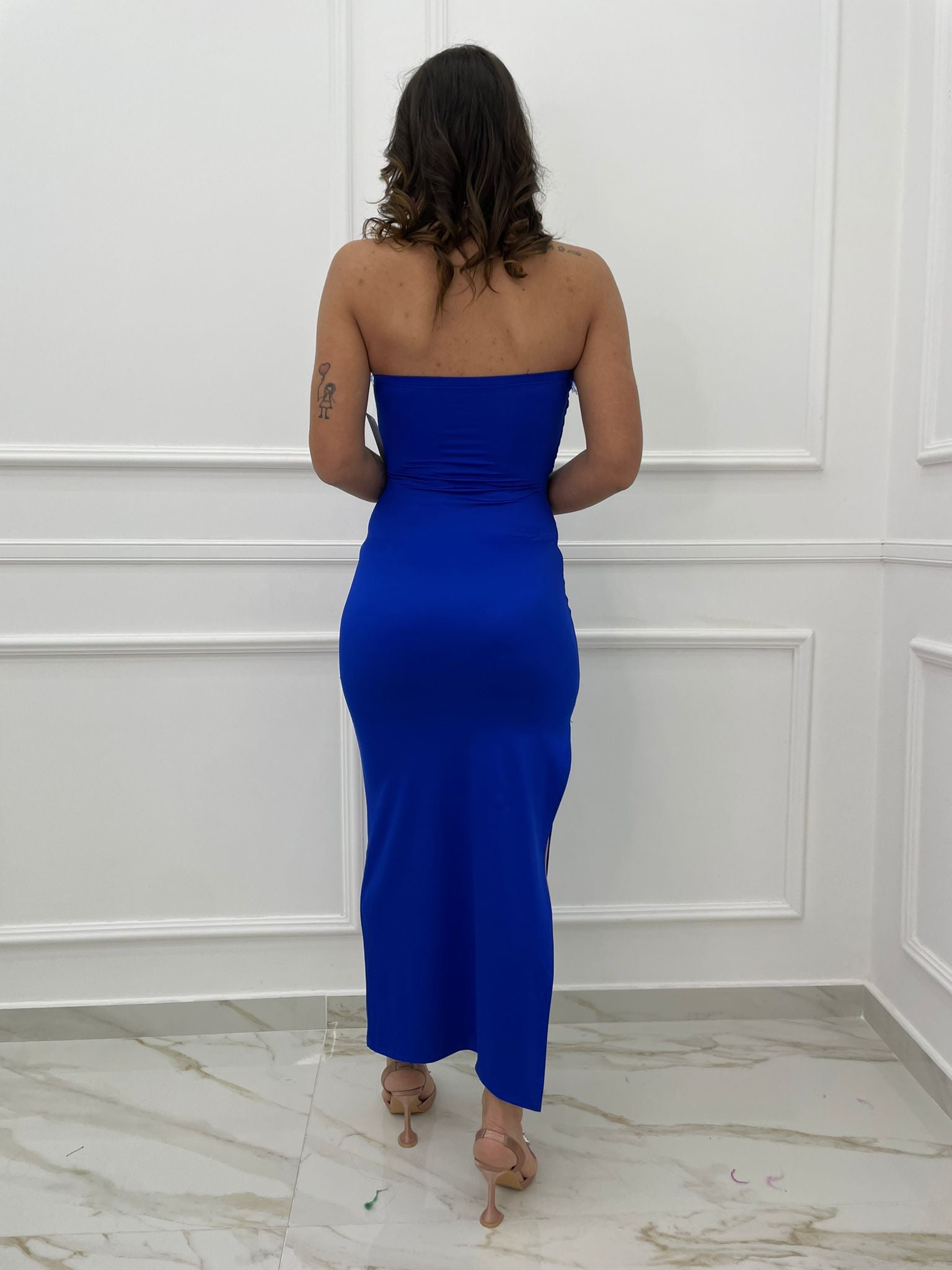 Vestito lungo in paillettes con spacco
