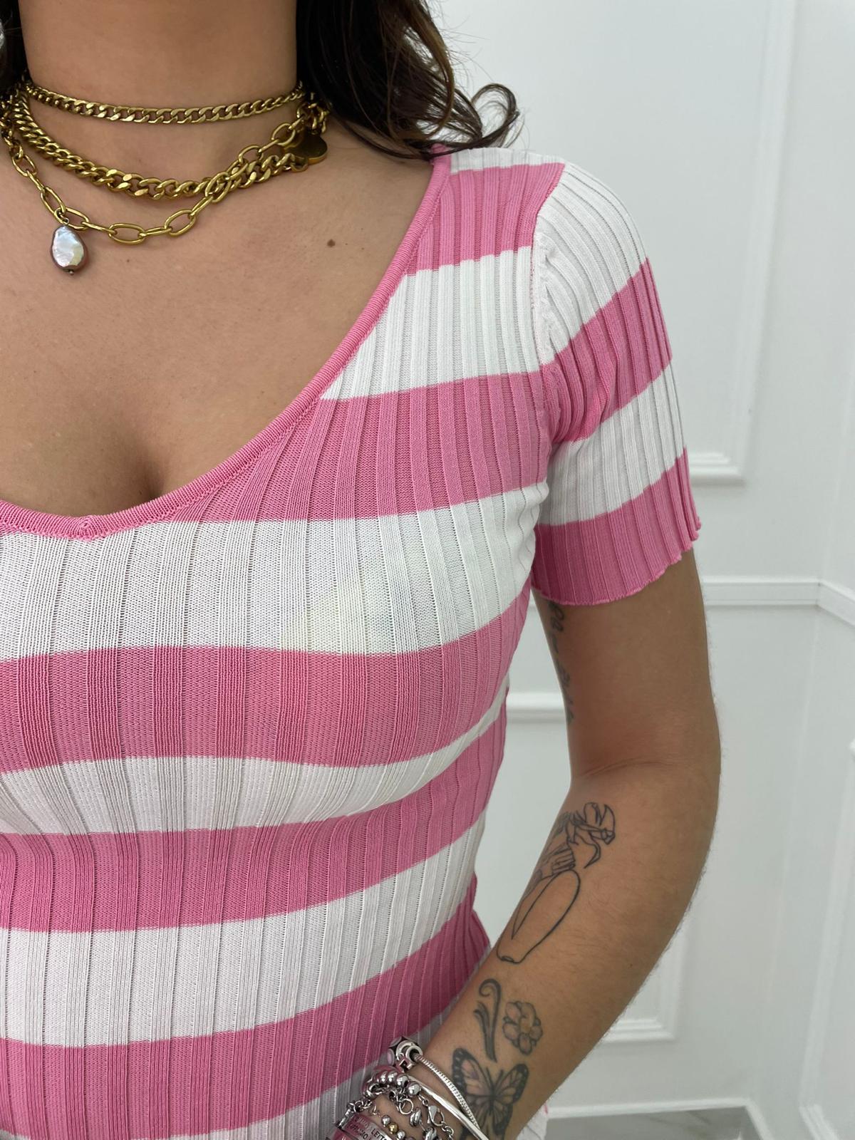 Vestito midi mezza manica a righe