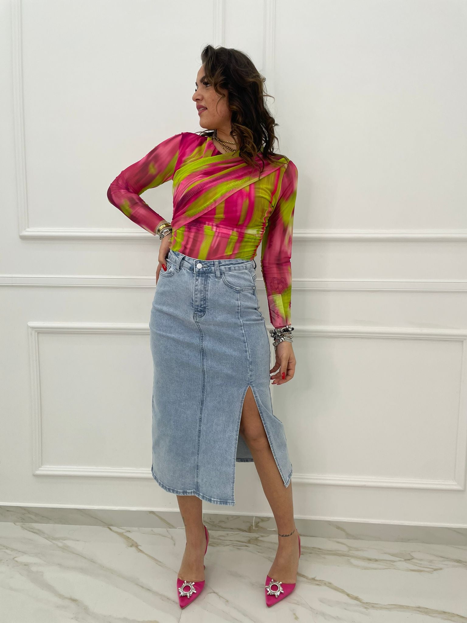 Gonna lunga di jeans con spacco laterale