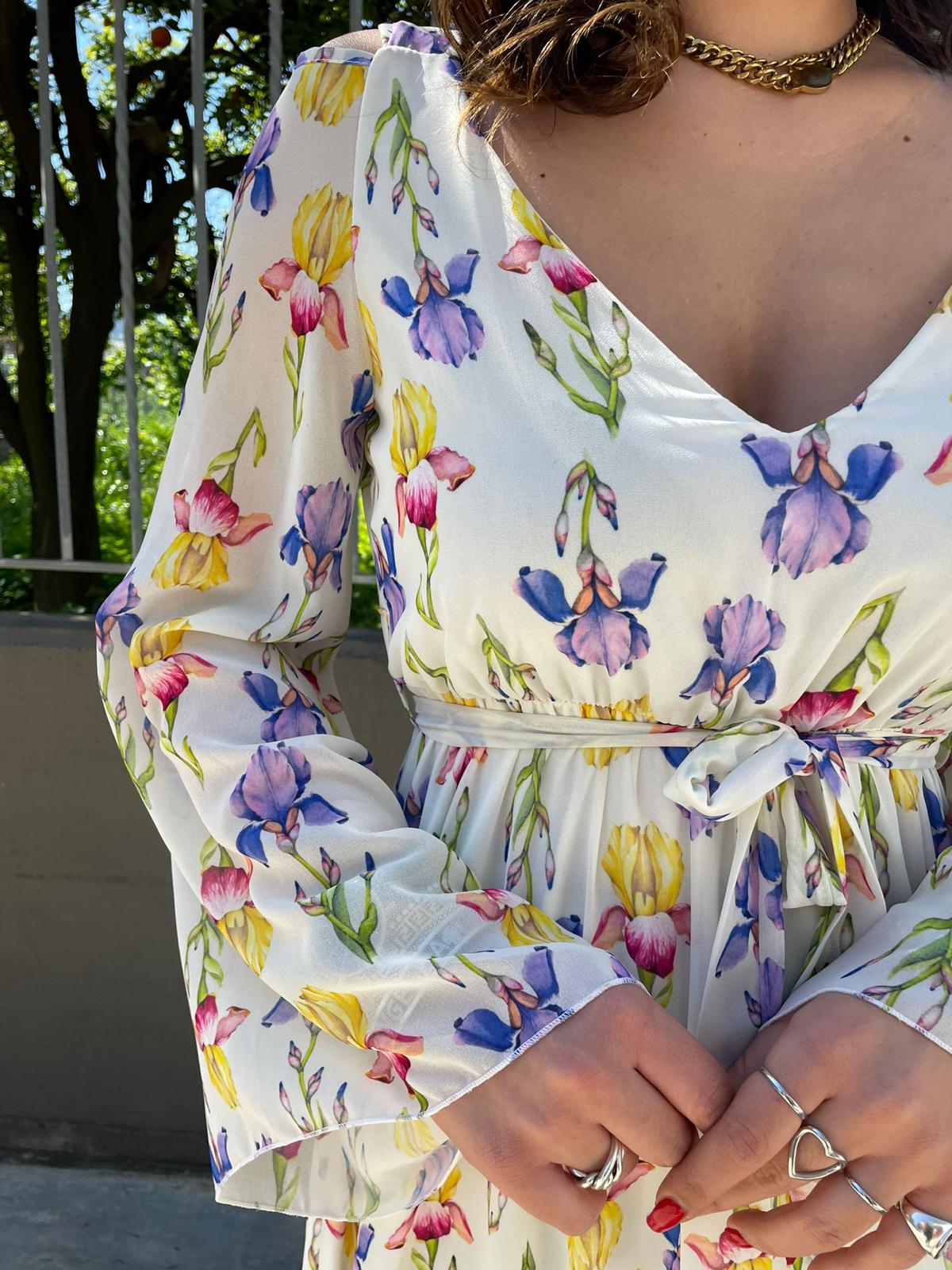 Vestitino a fiori con scollo strutturato e balze
