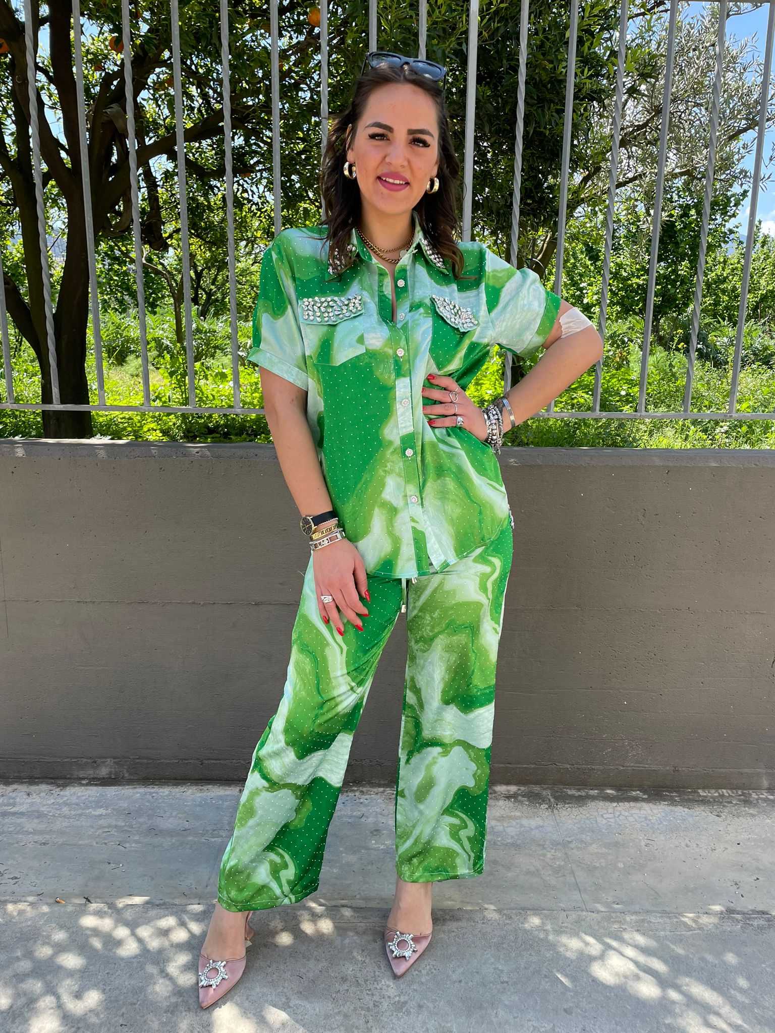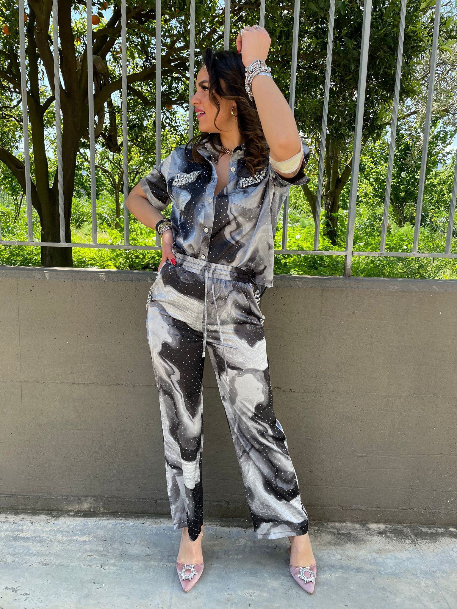 Coordinato sfumato con swarovski e brillantini