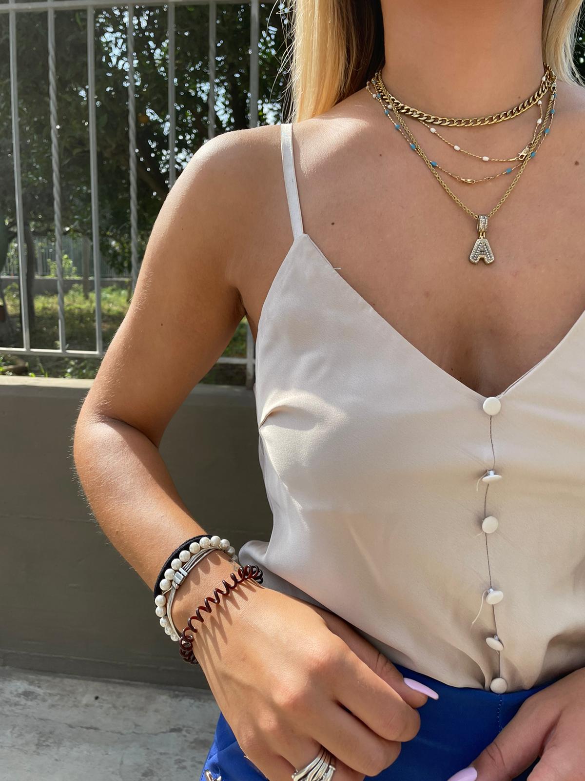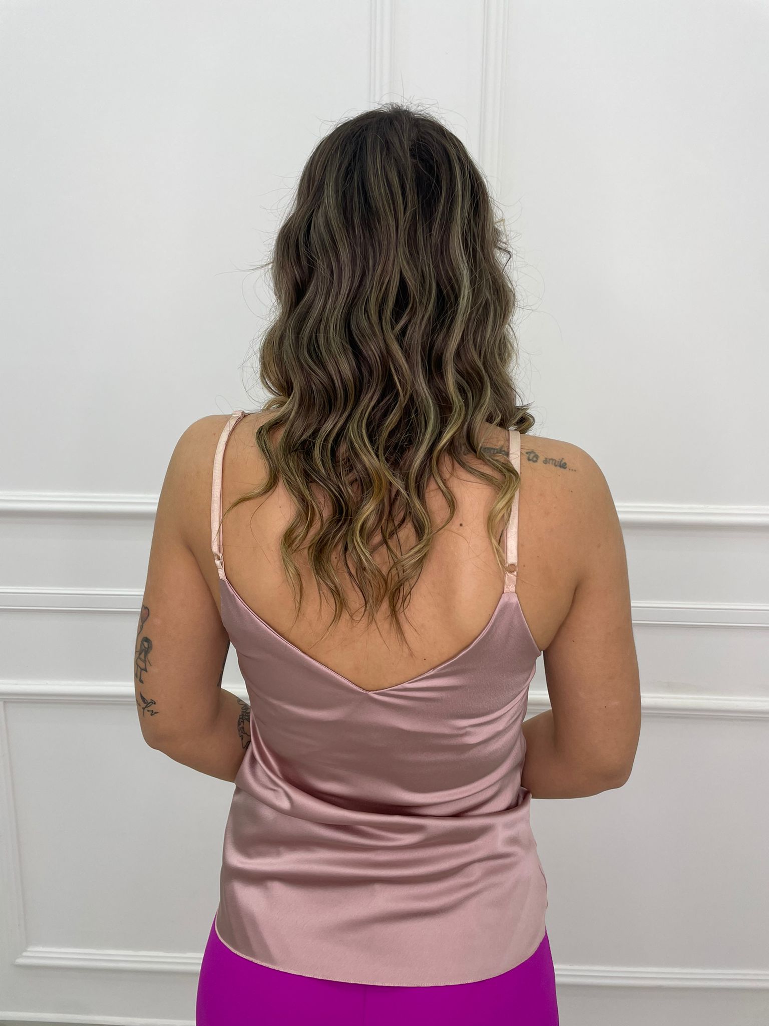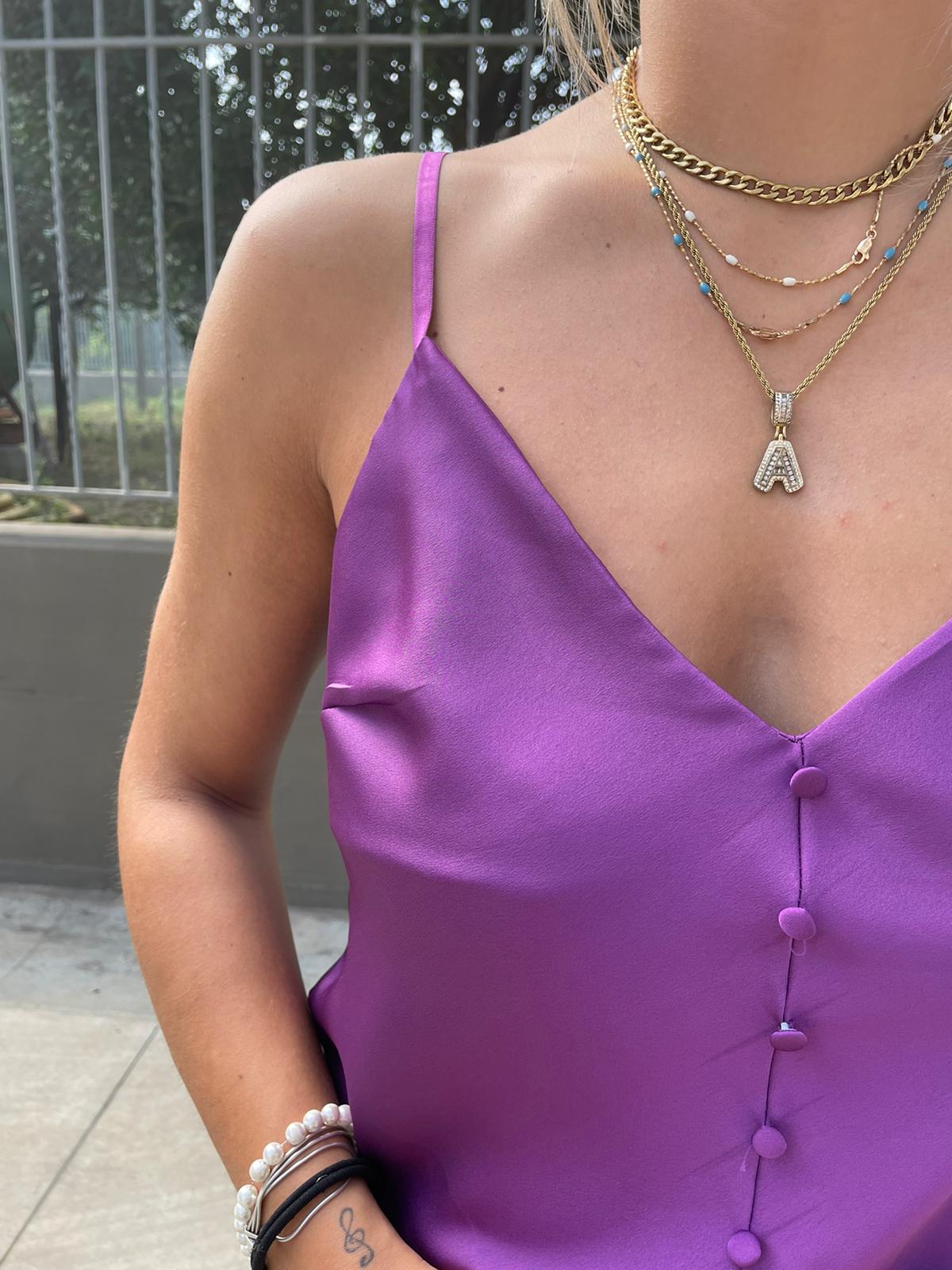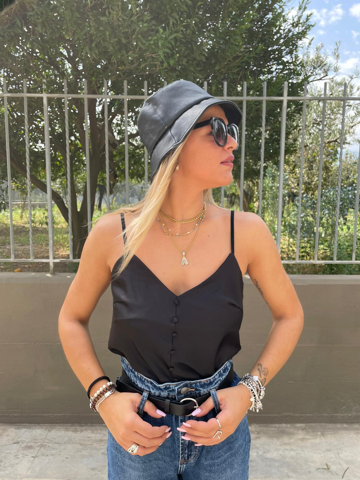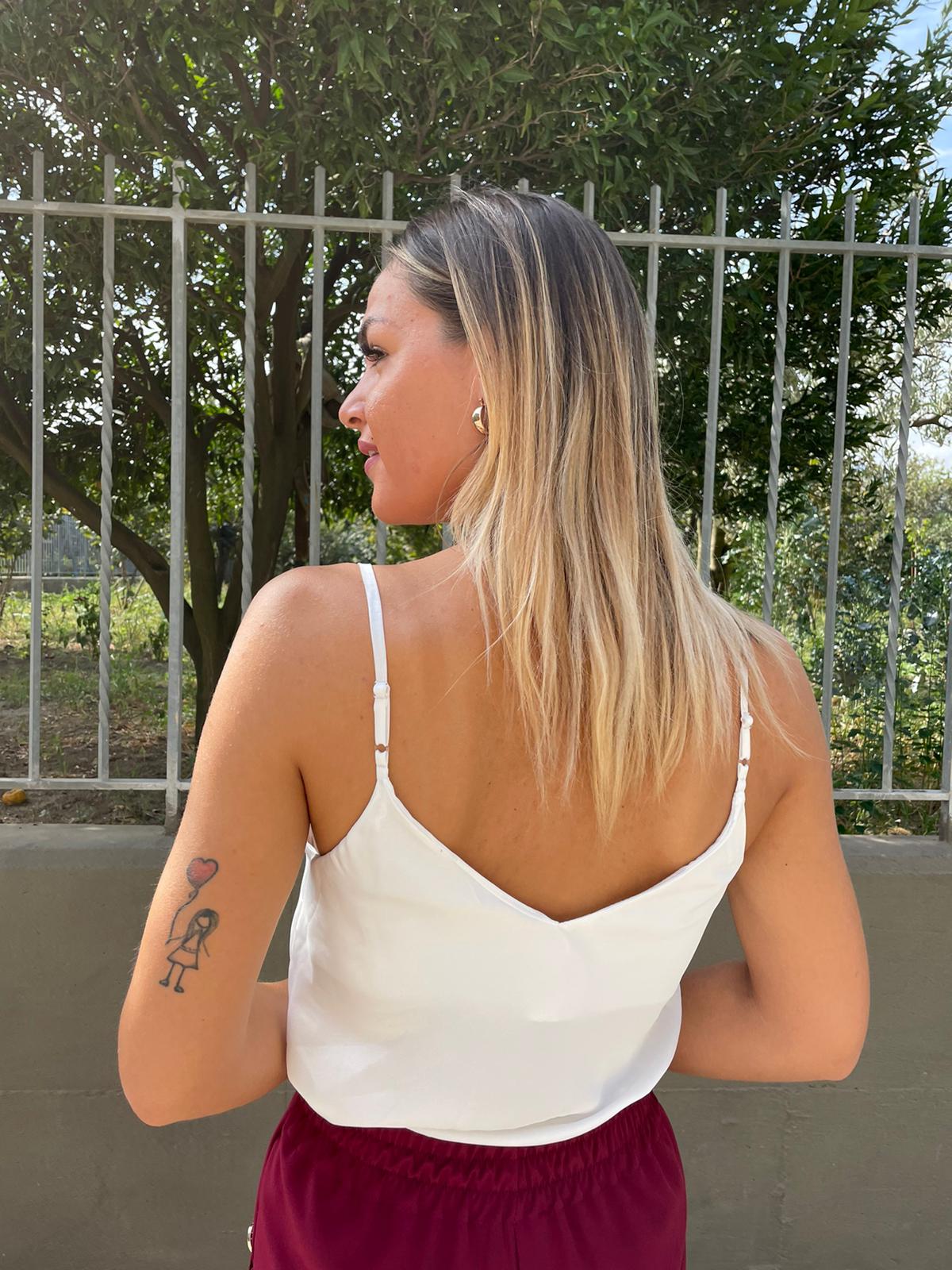 Top in raso con bottoncini