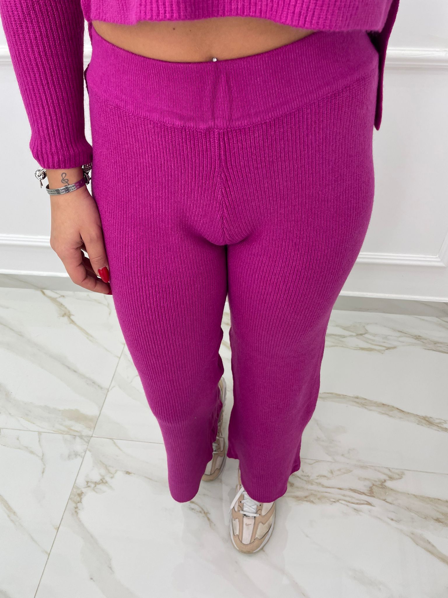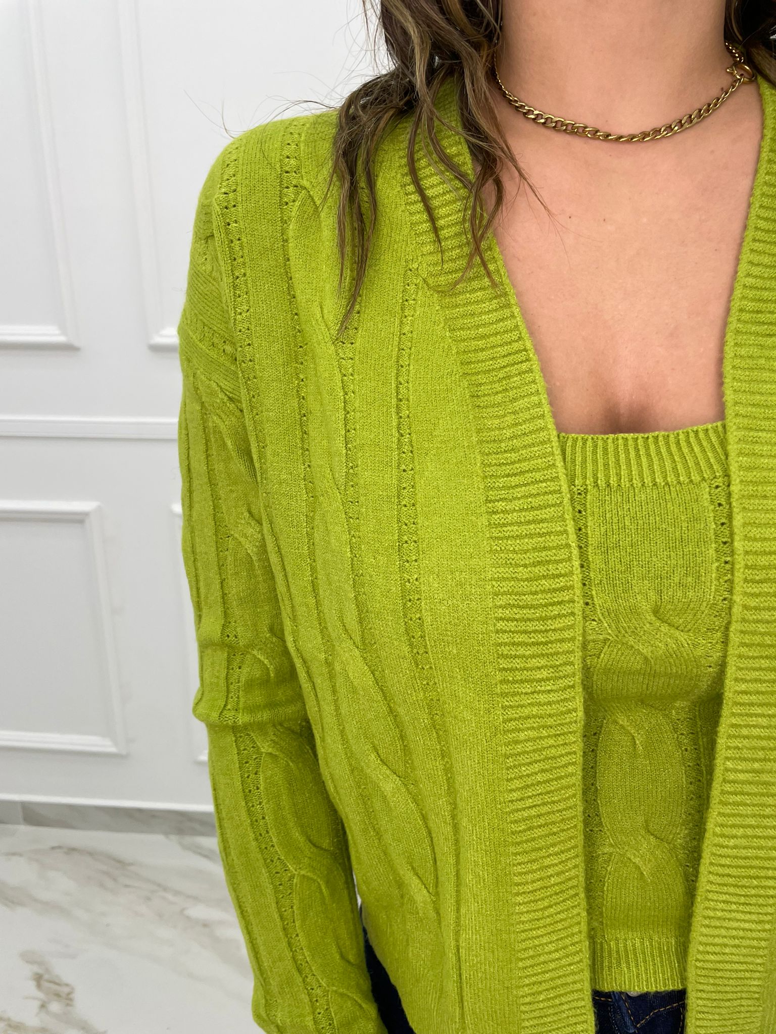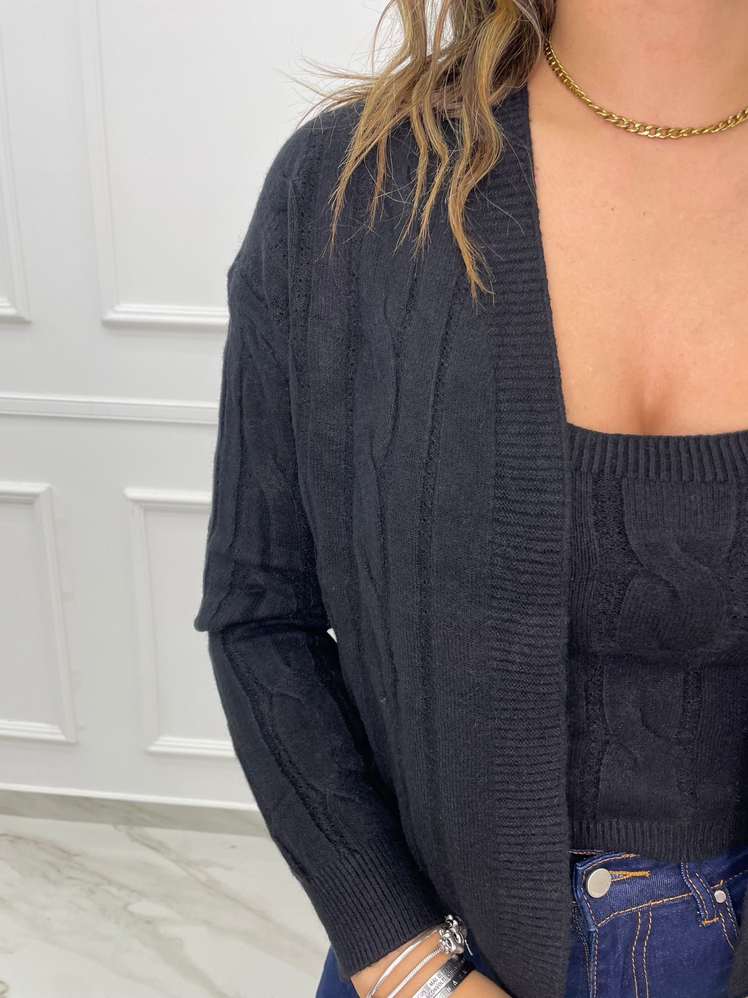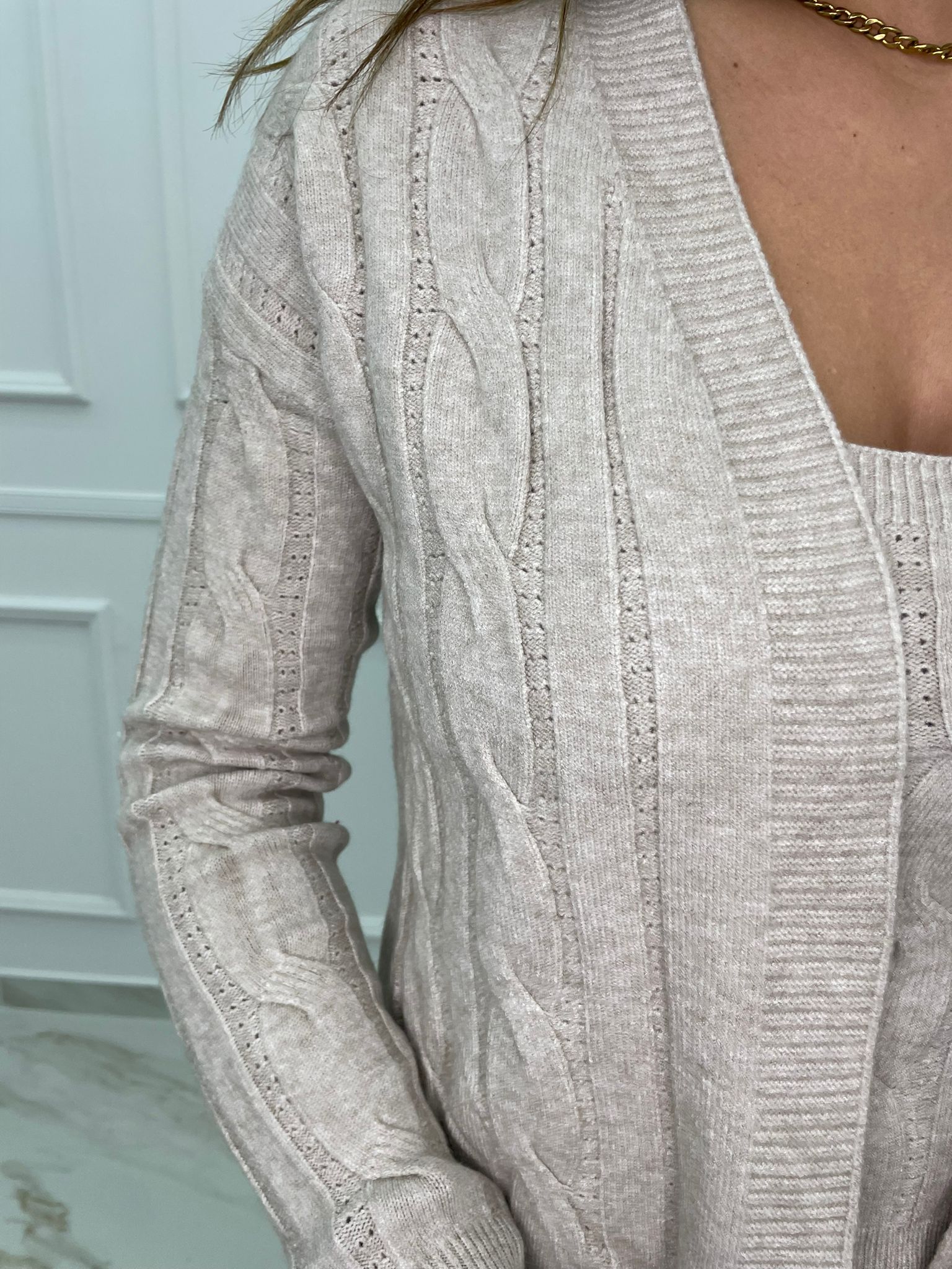 Twin set con top e cardigan trama treccia