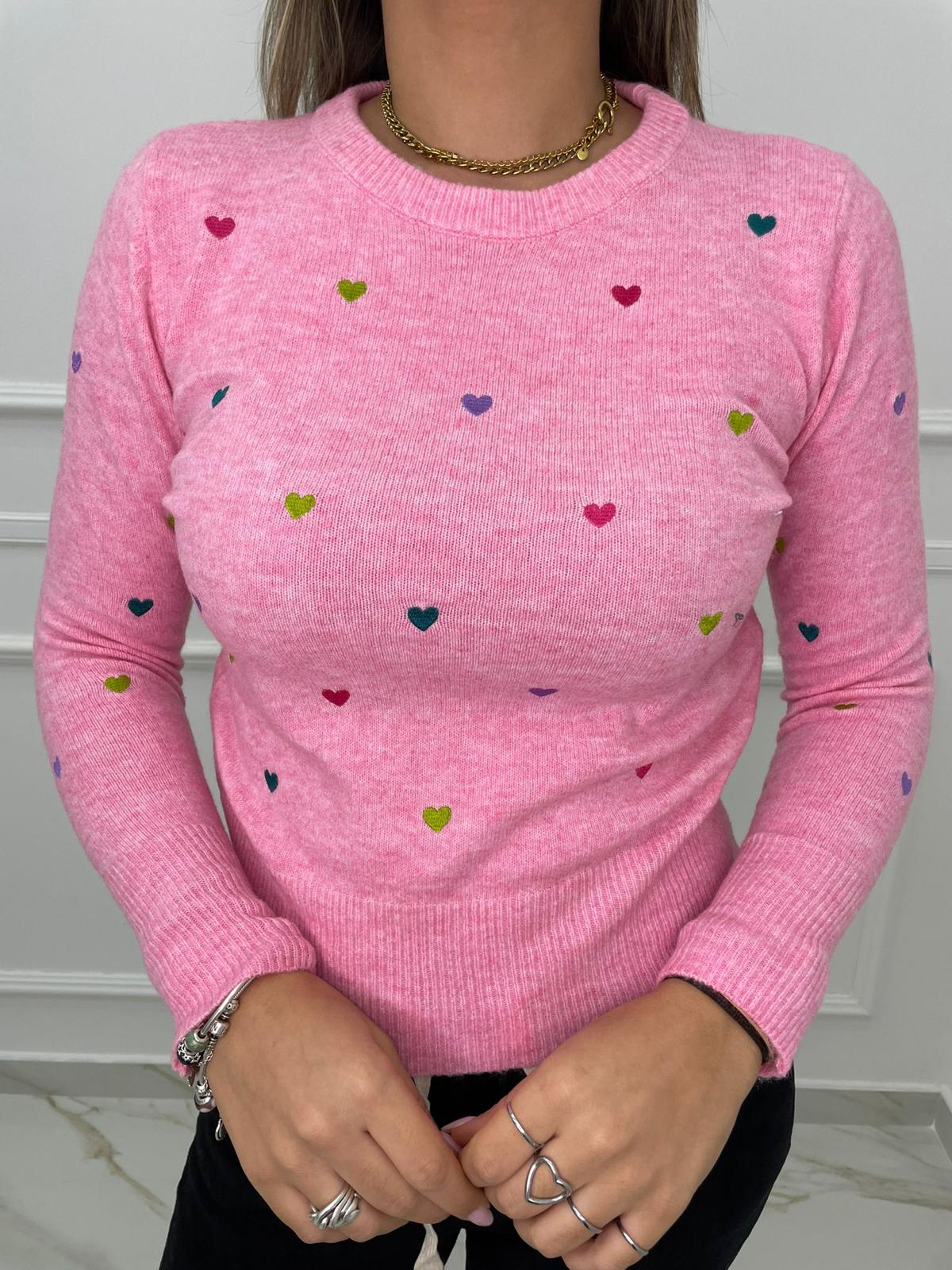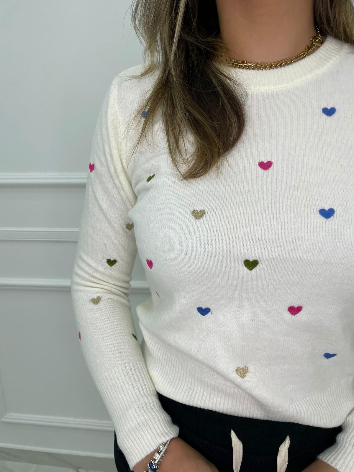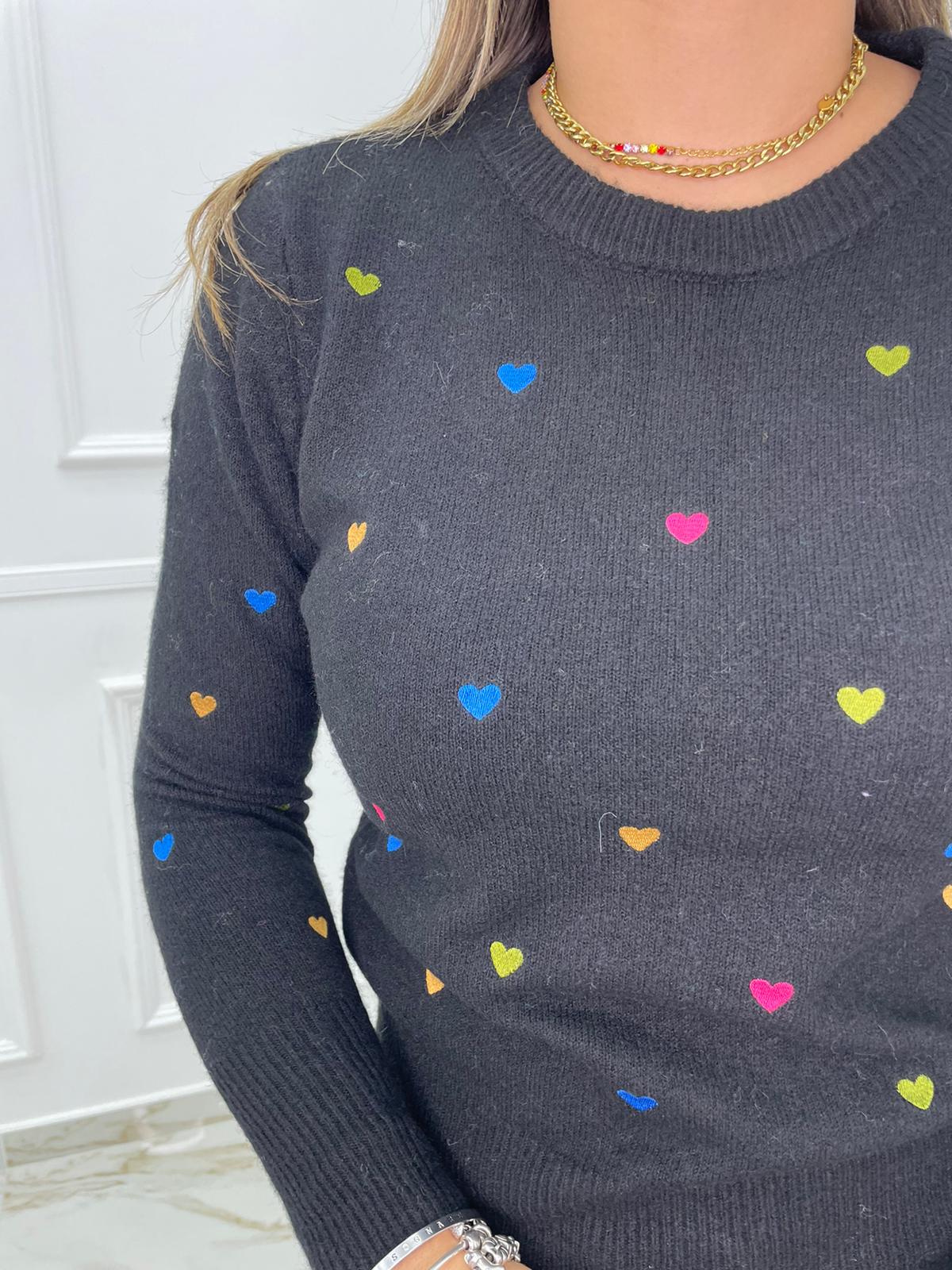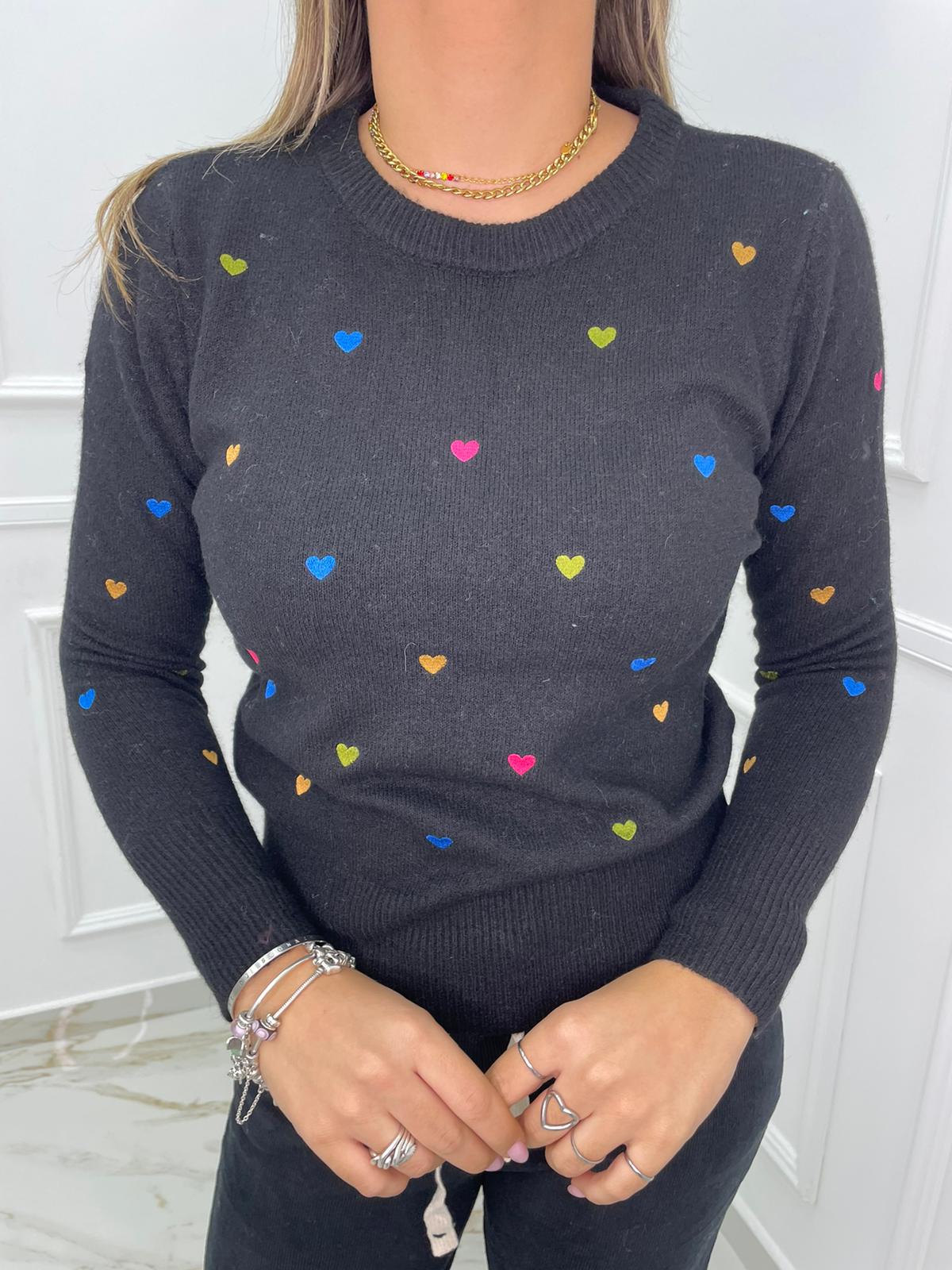 Maglioncino tinta unita con cuori colorati