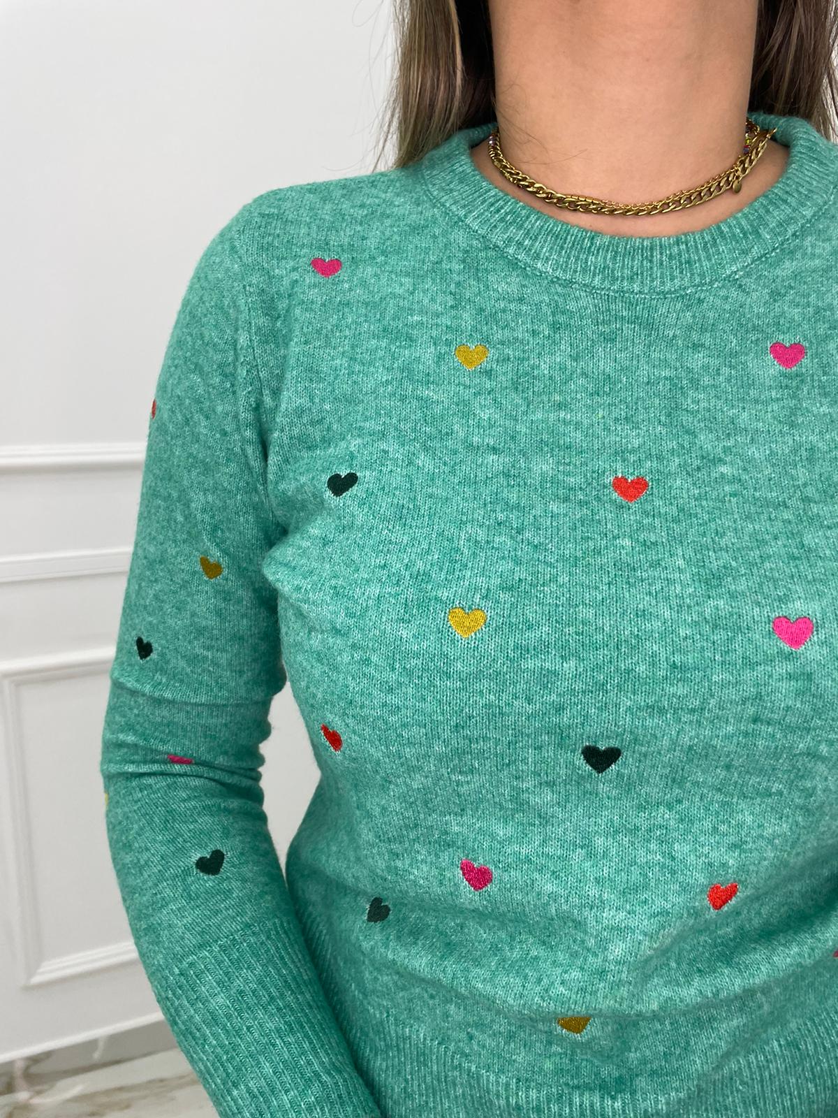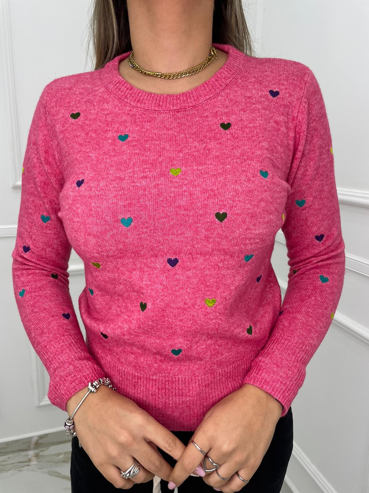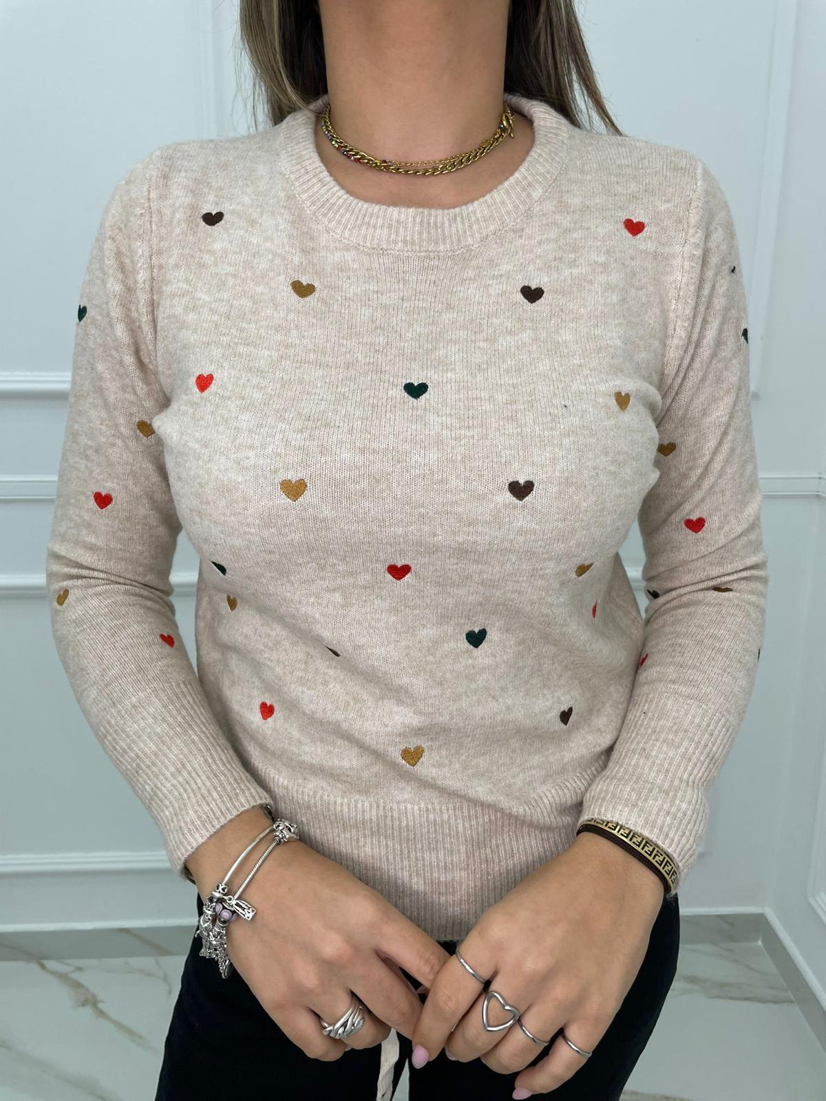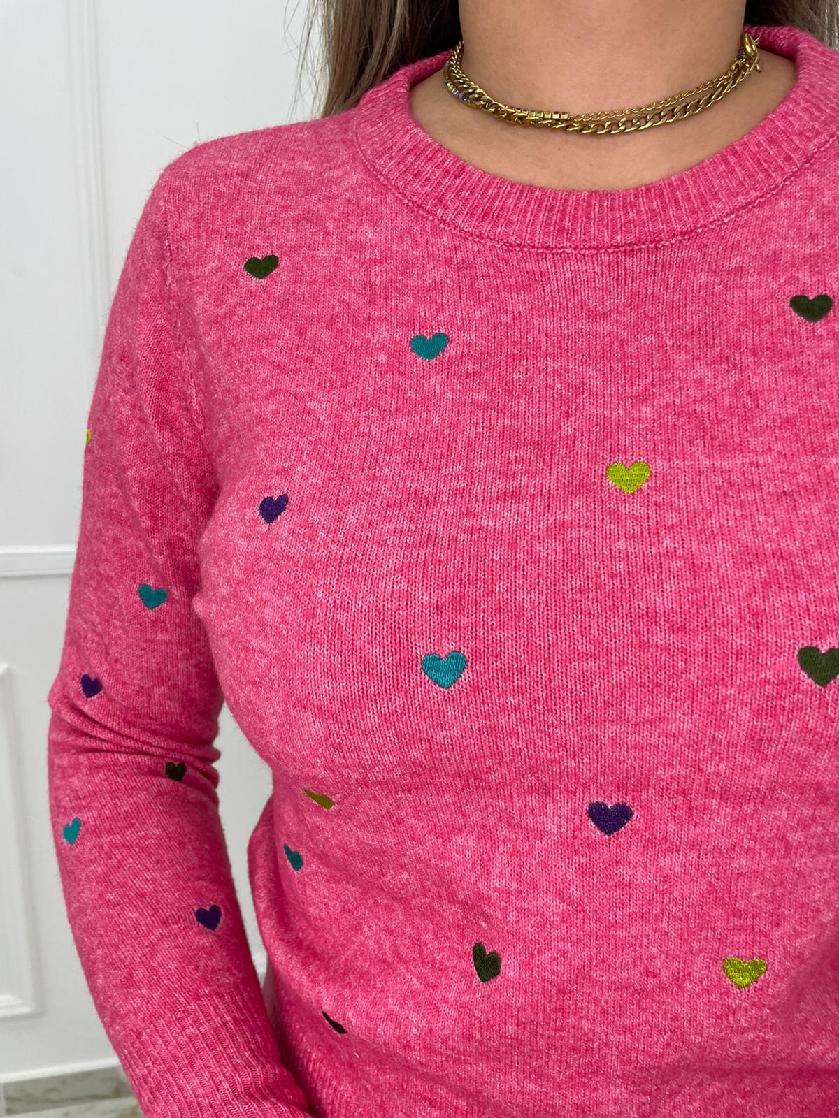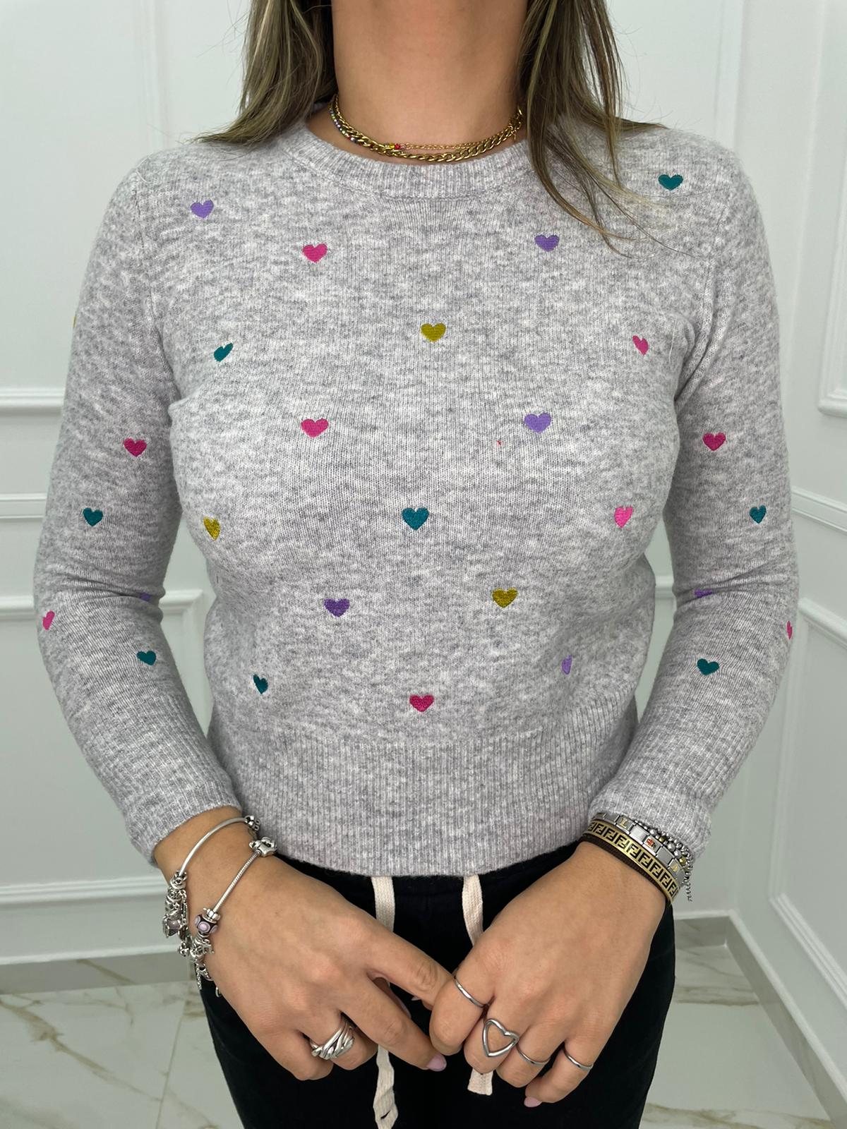 Maglioncino tinta unita con cuori colorati