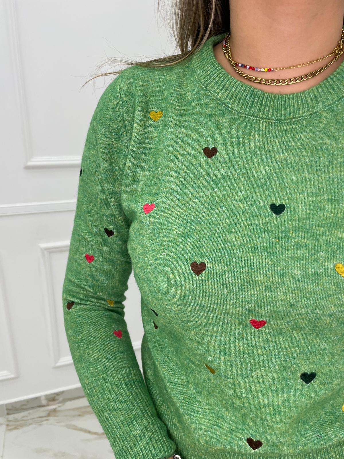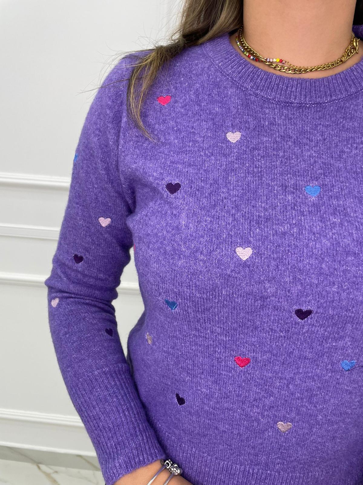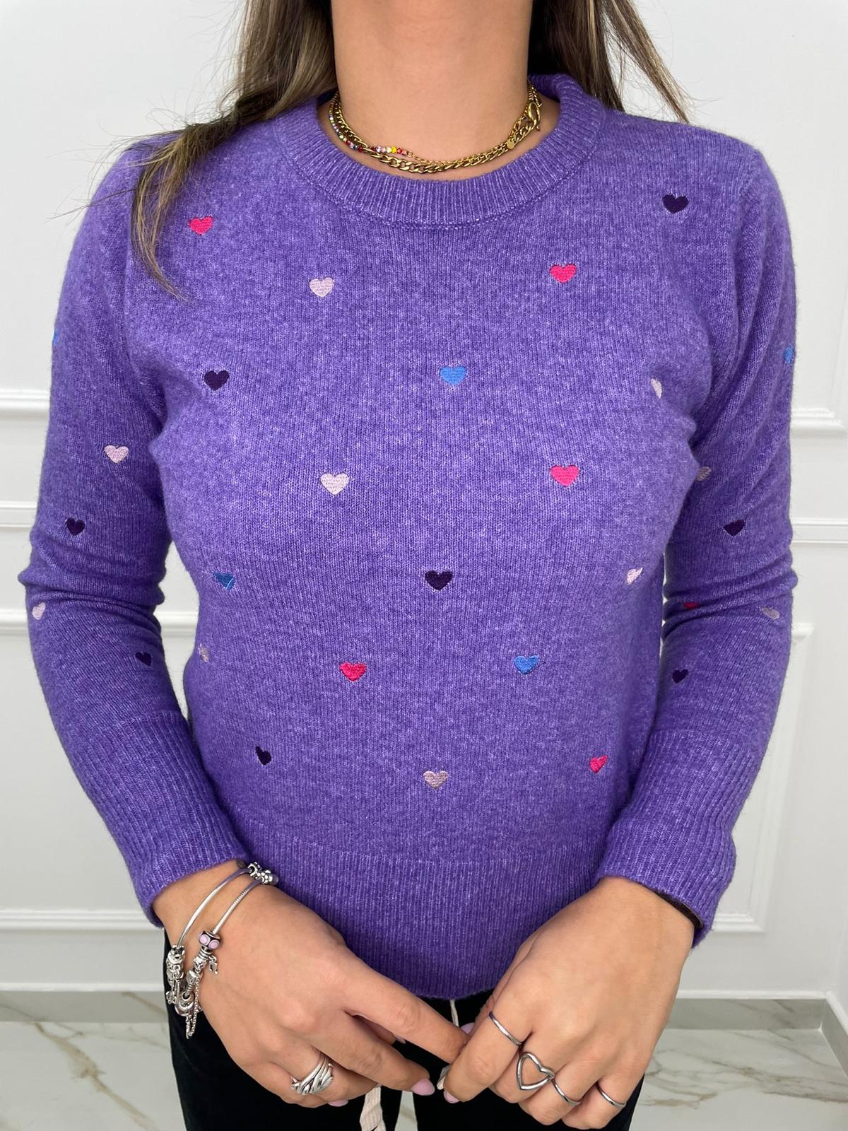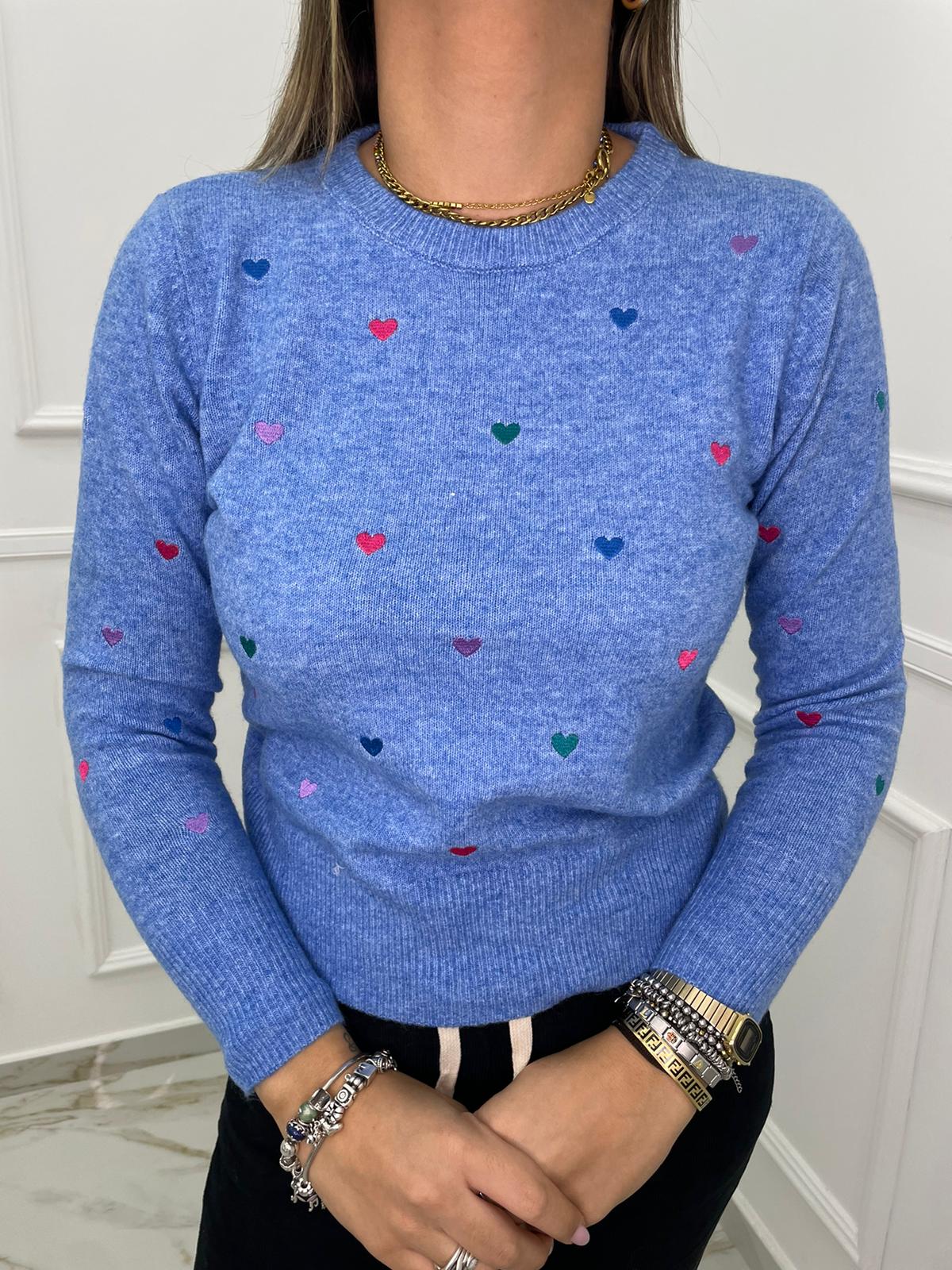 Maglioncino tinta unita con cuori colorati