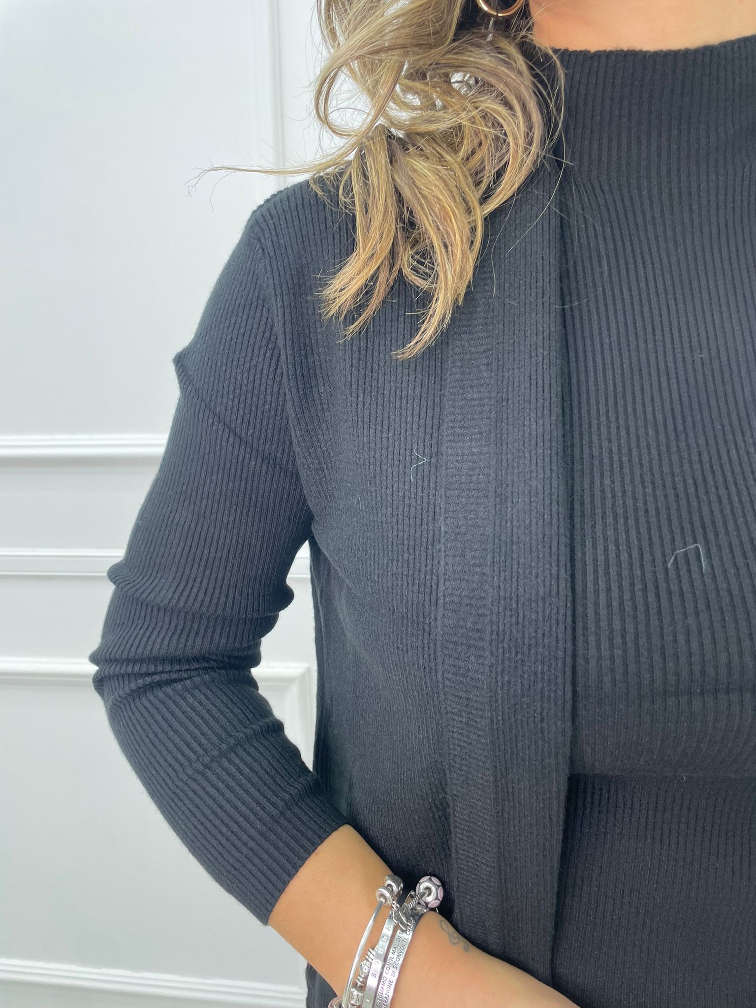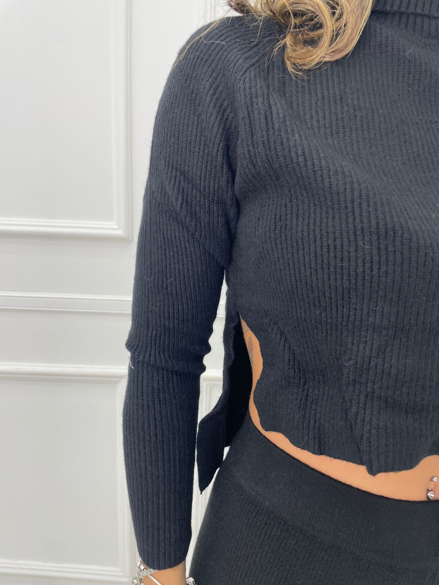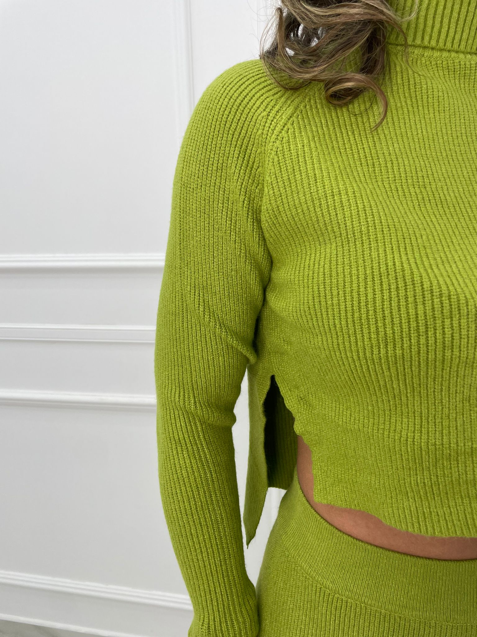 Maglia collo alto crop trama treccia