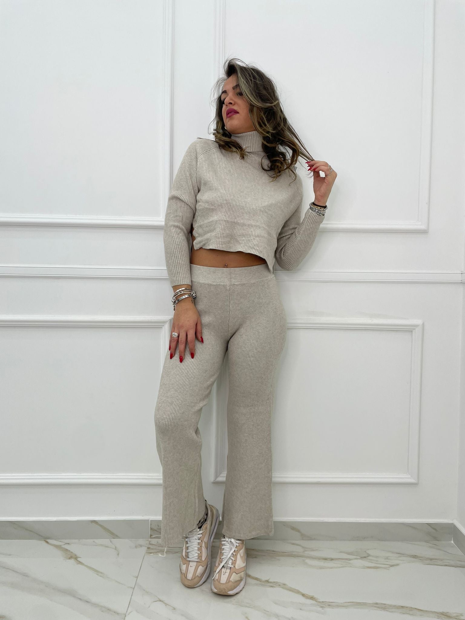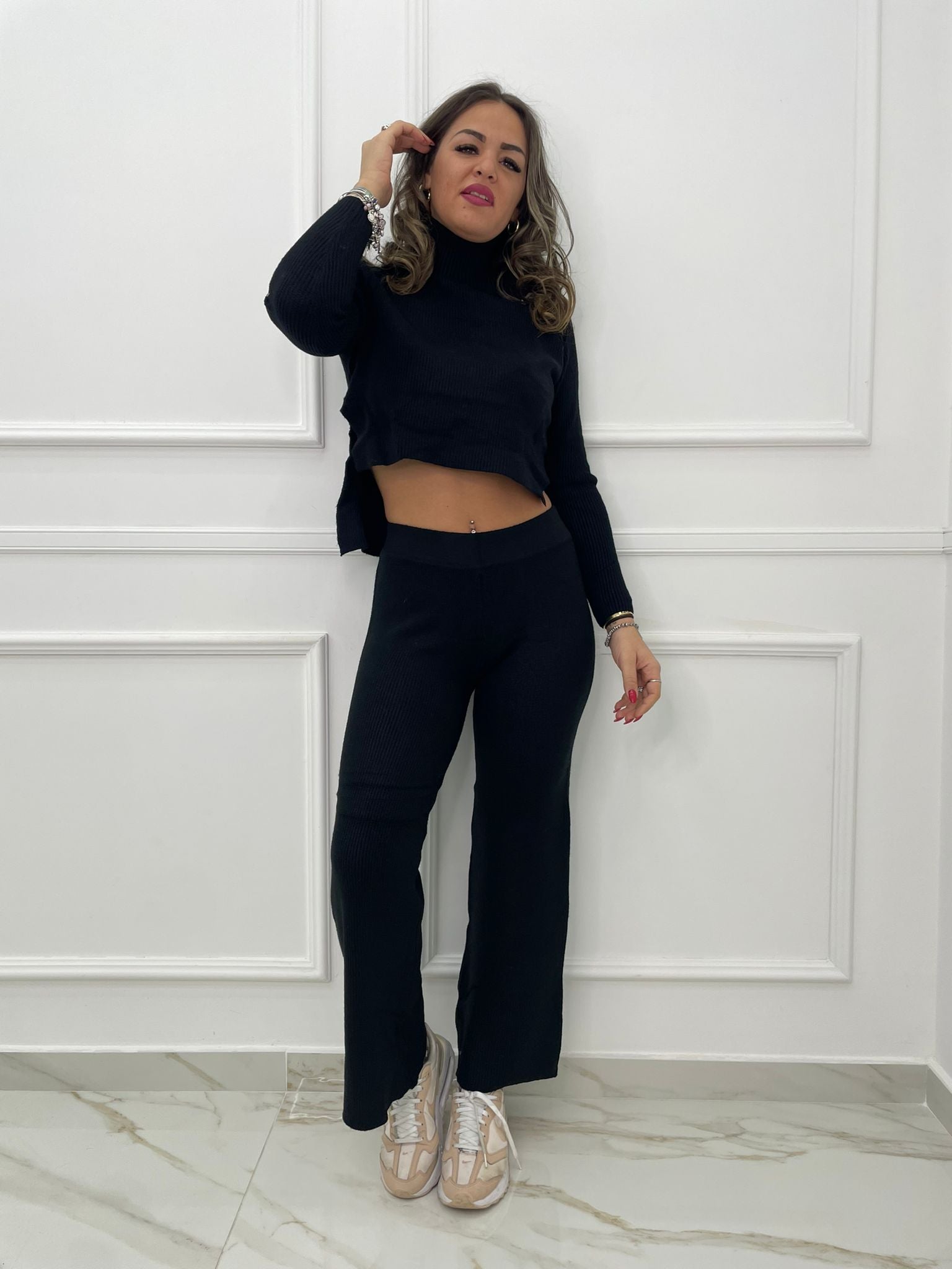 Coordinato 2 pezzi con maglia asimmetrica