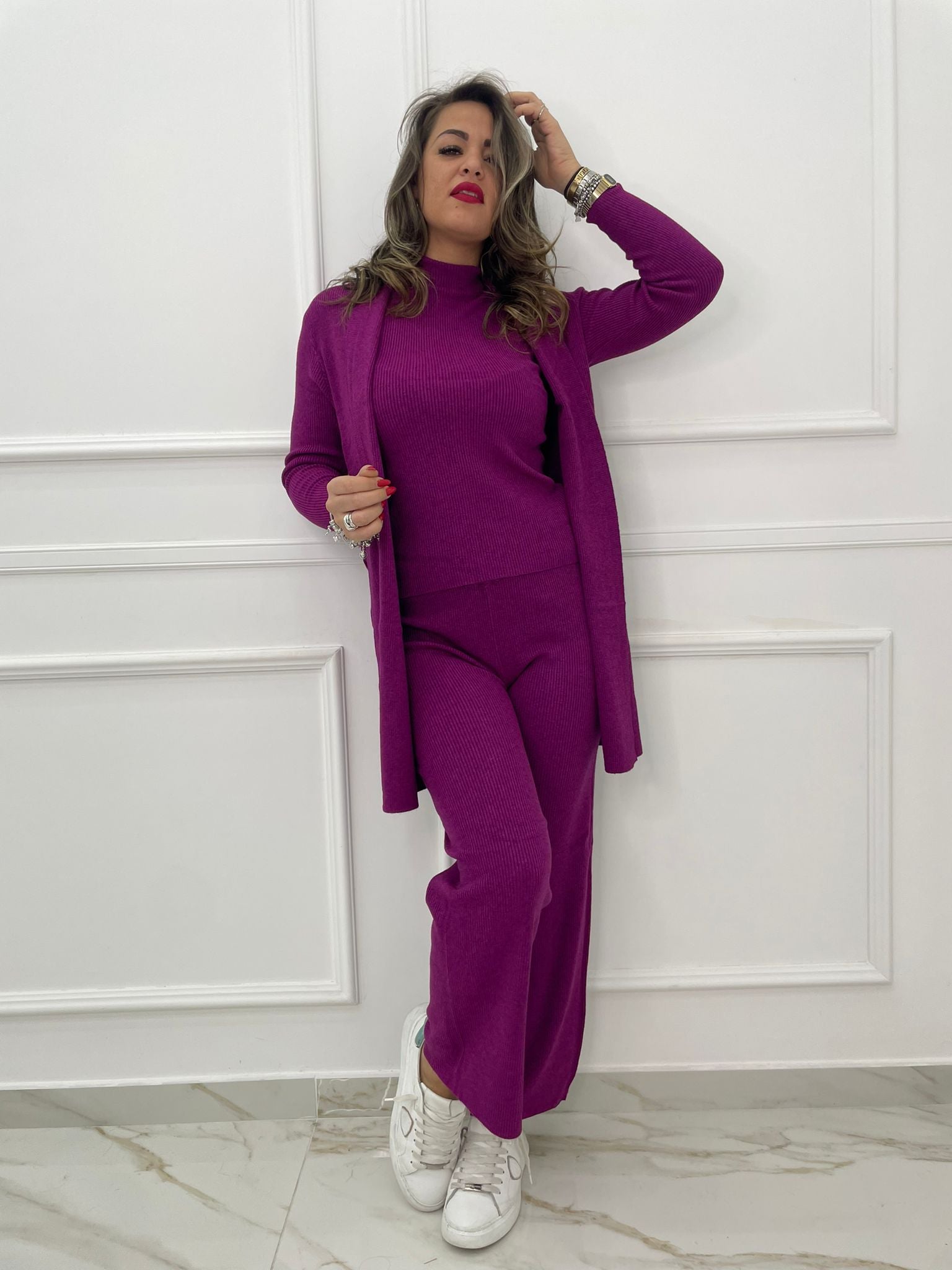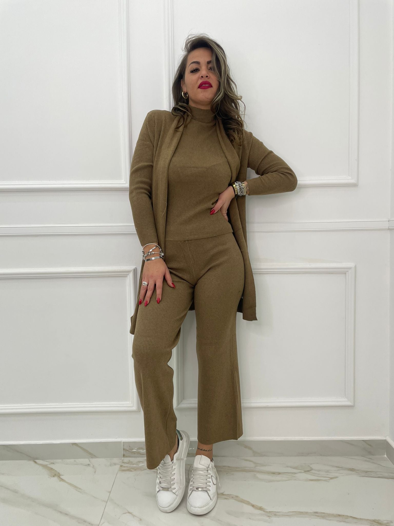 Coordinato 3 pezzi con cardigan lungo