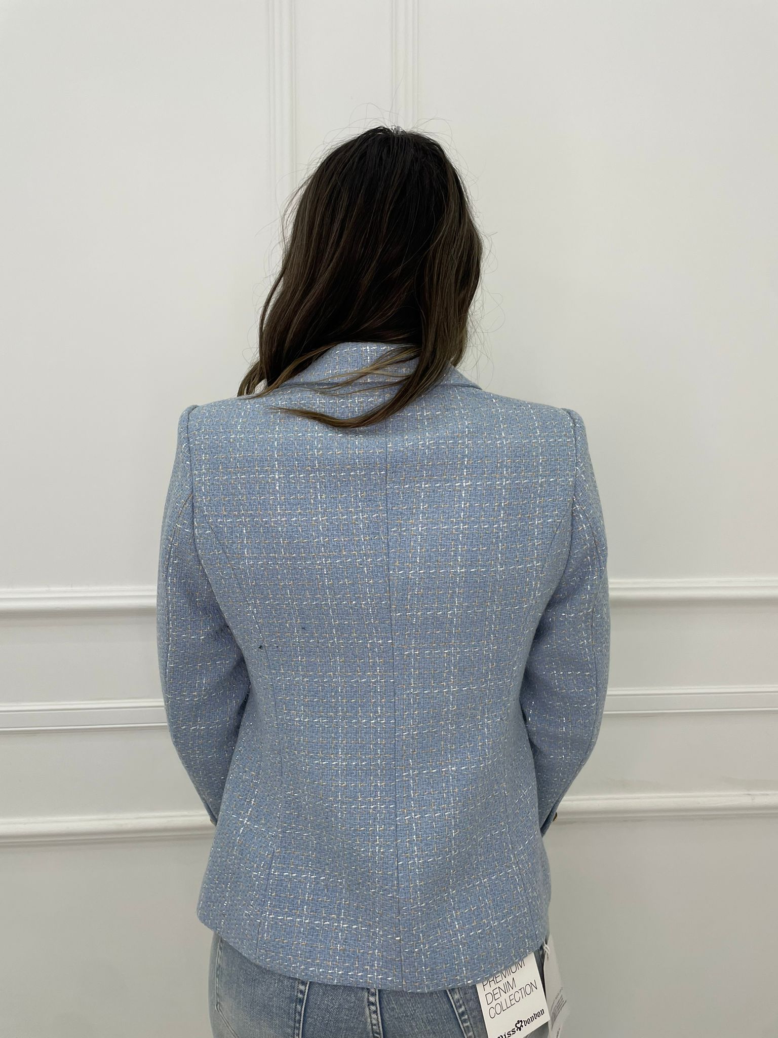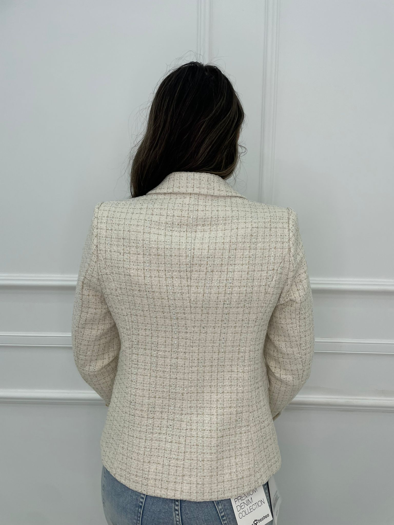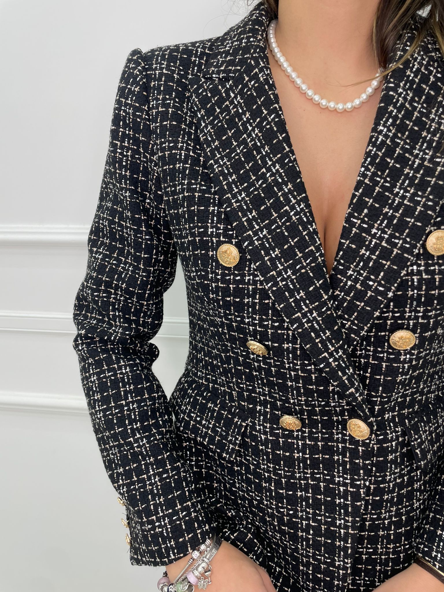 Giacca tweed doppio petto con fili laminati