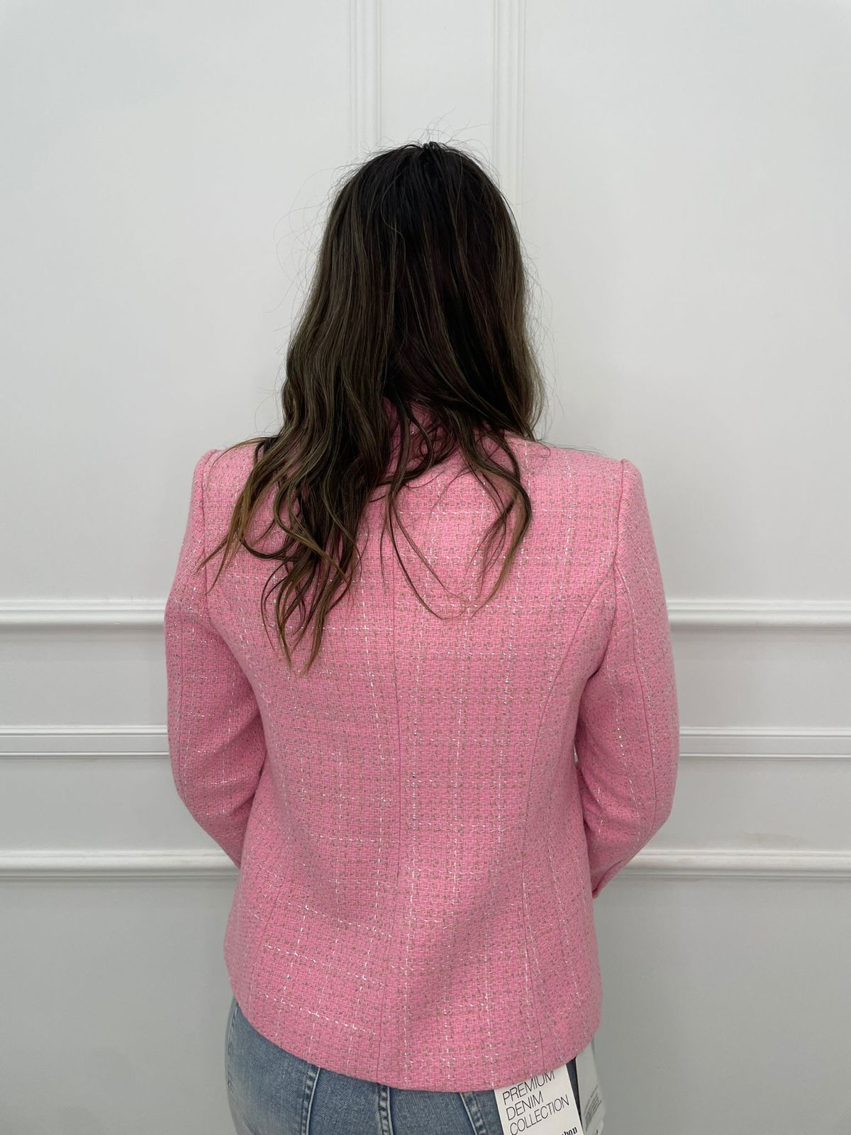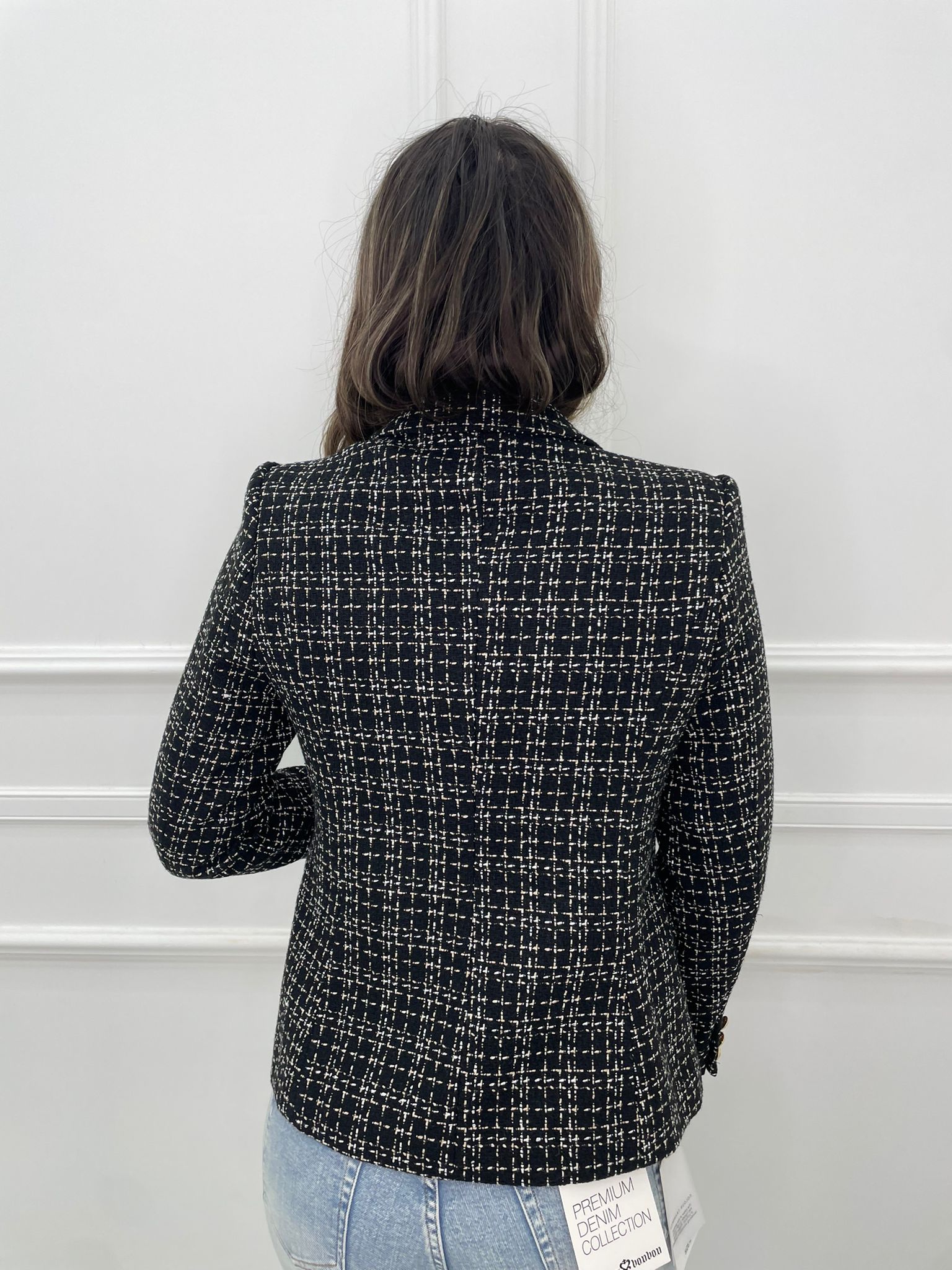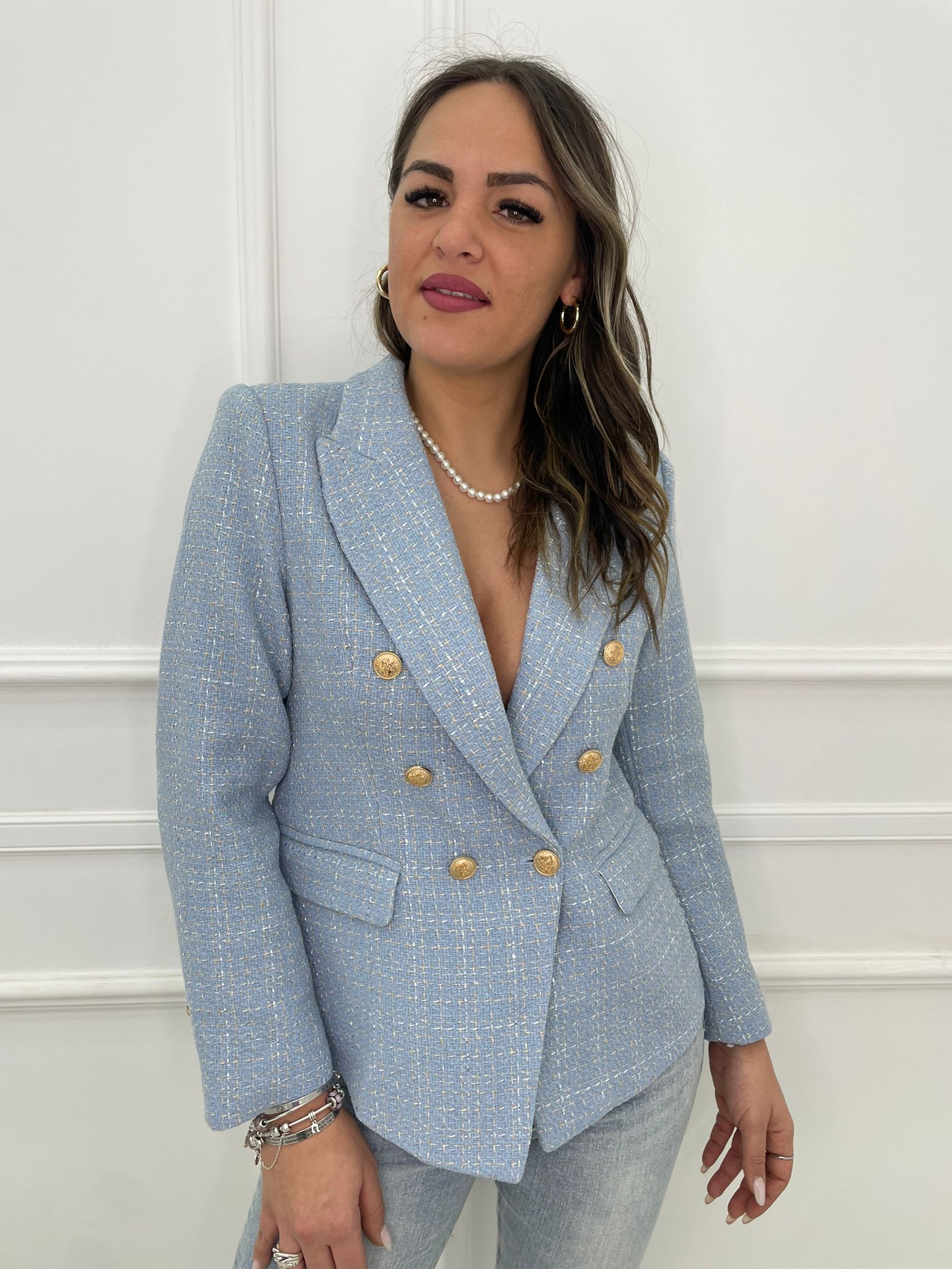 Giacca tweed doppio petto con fili laminati