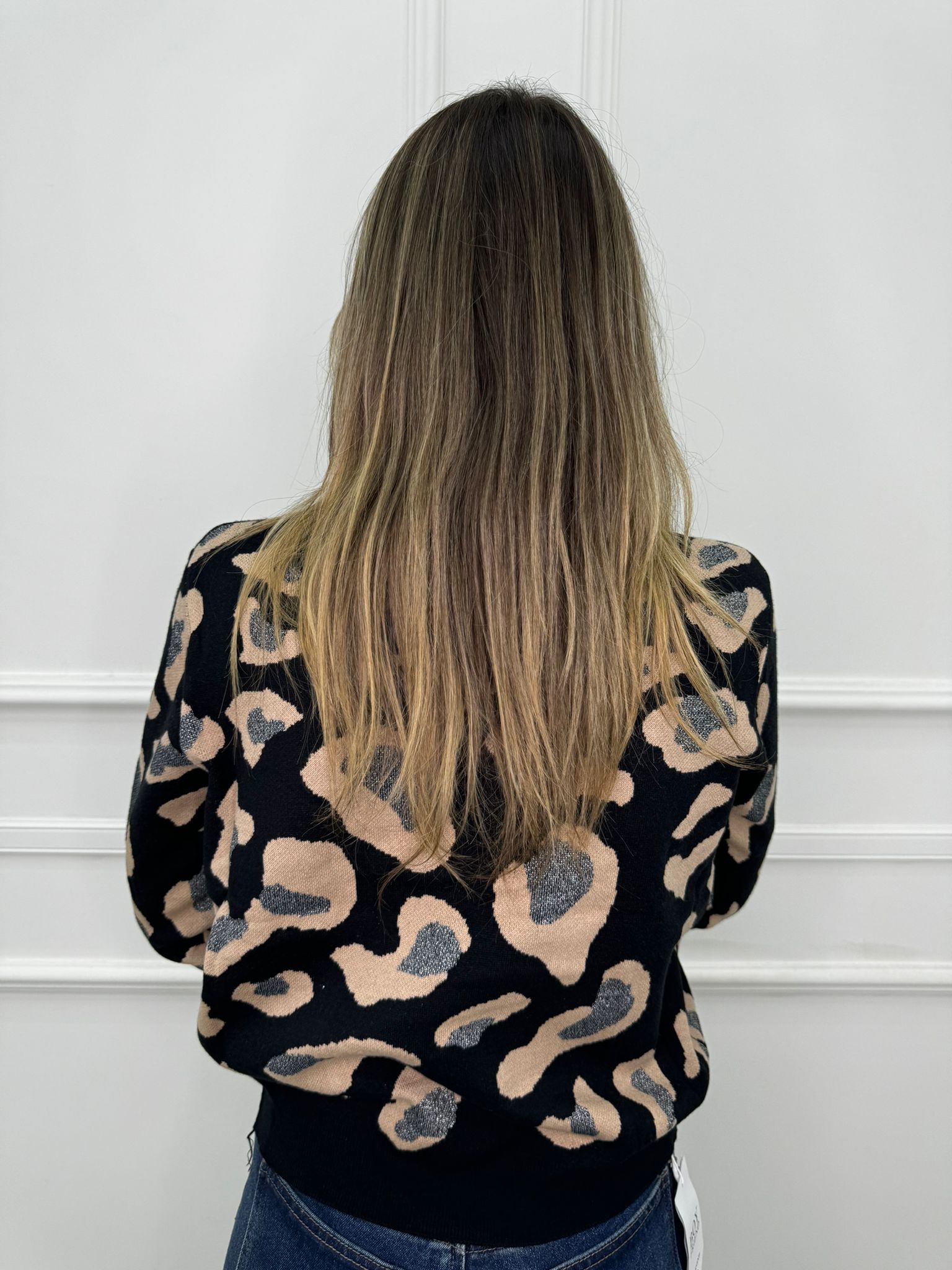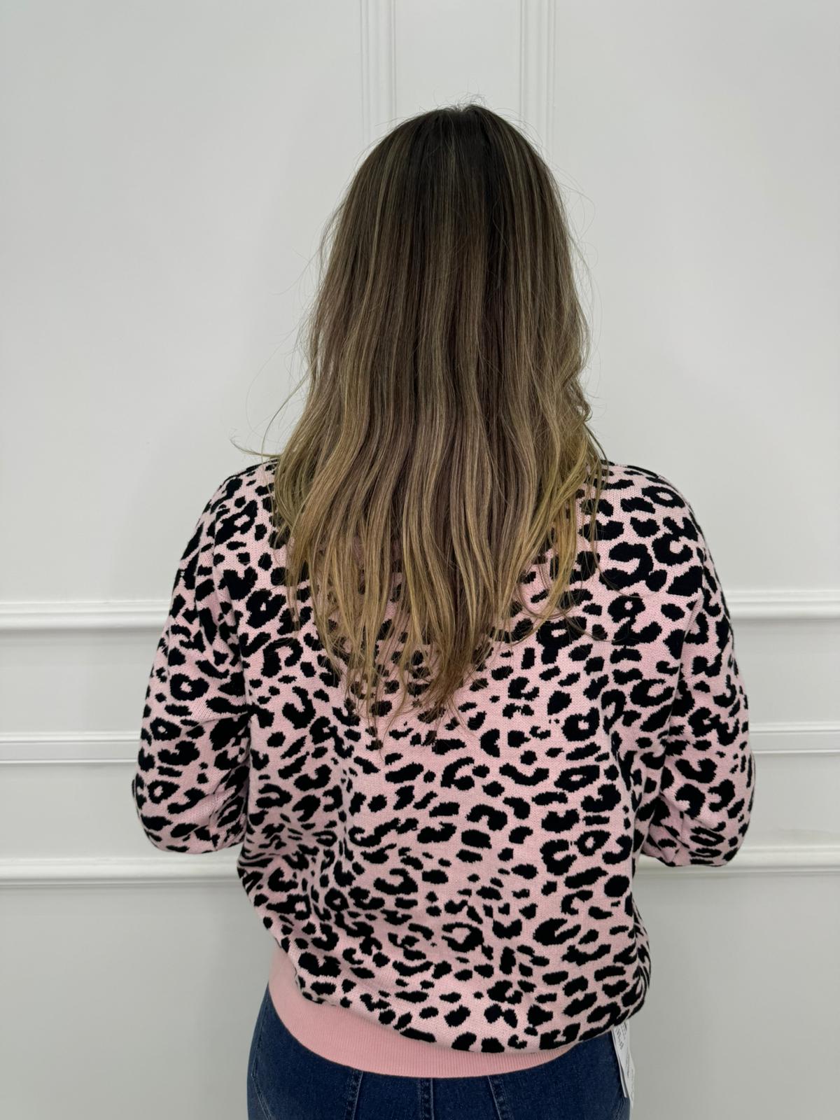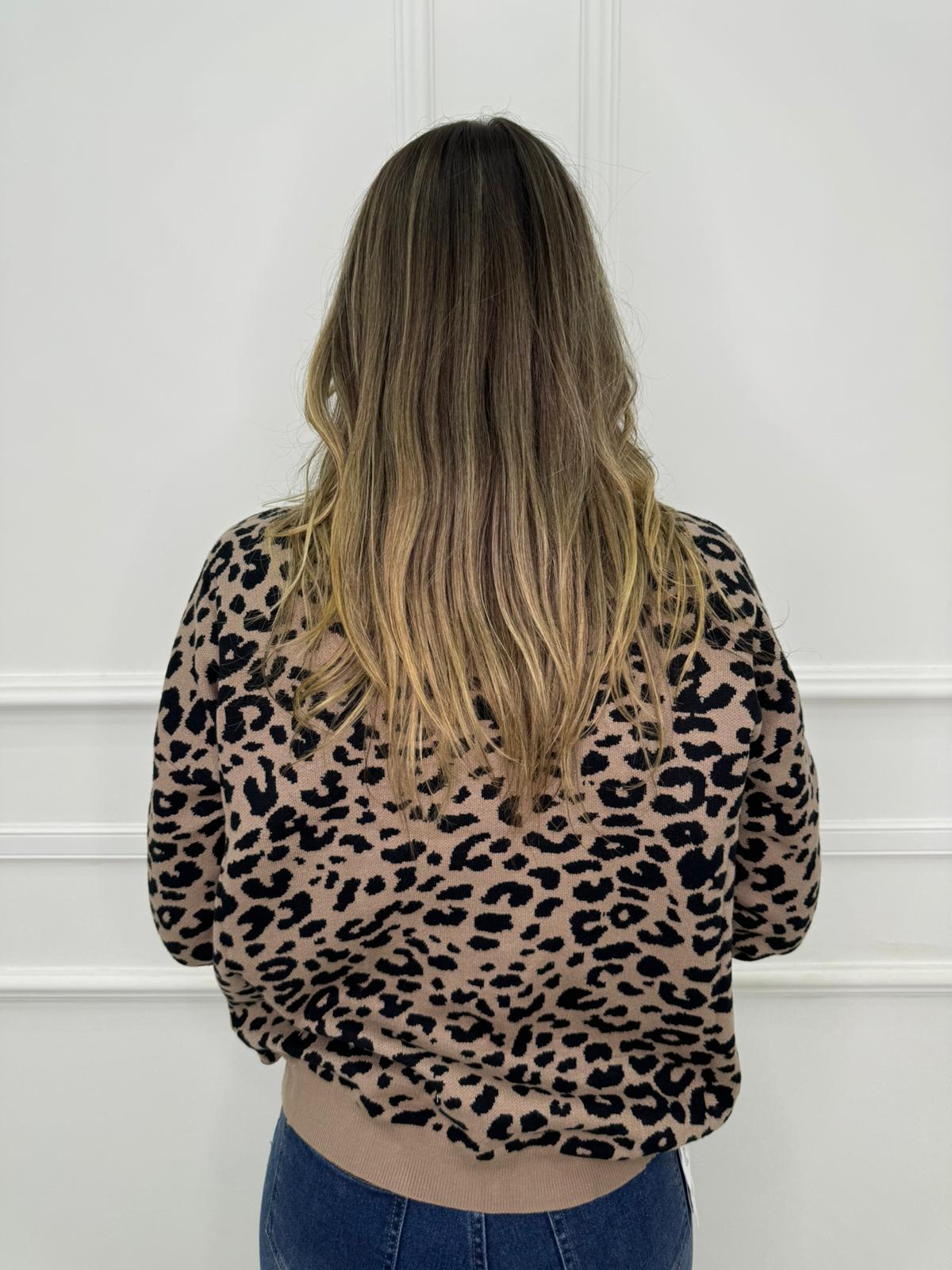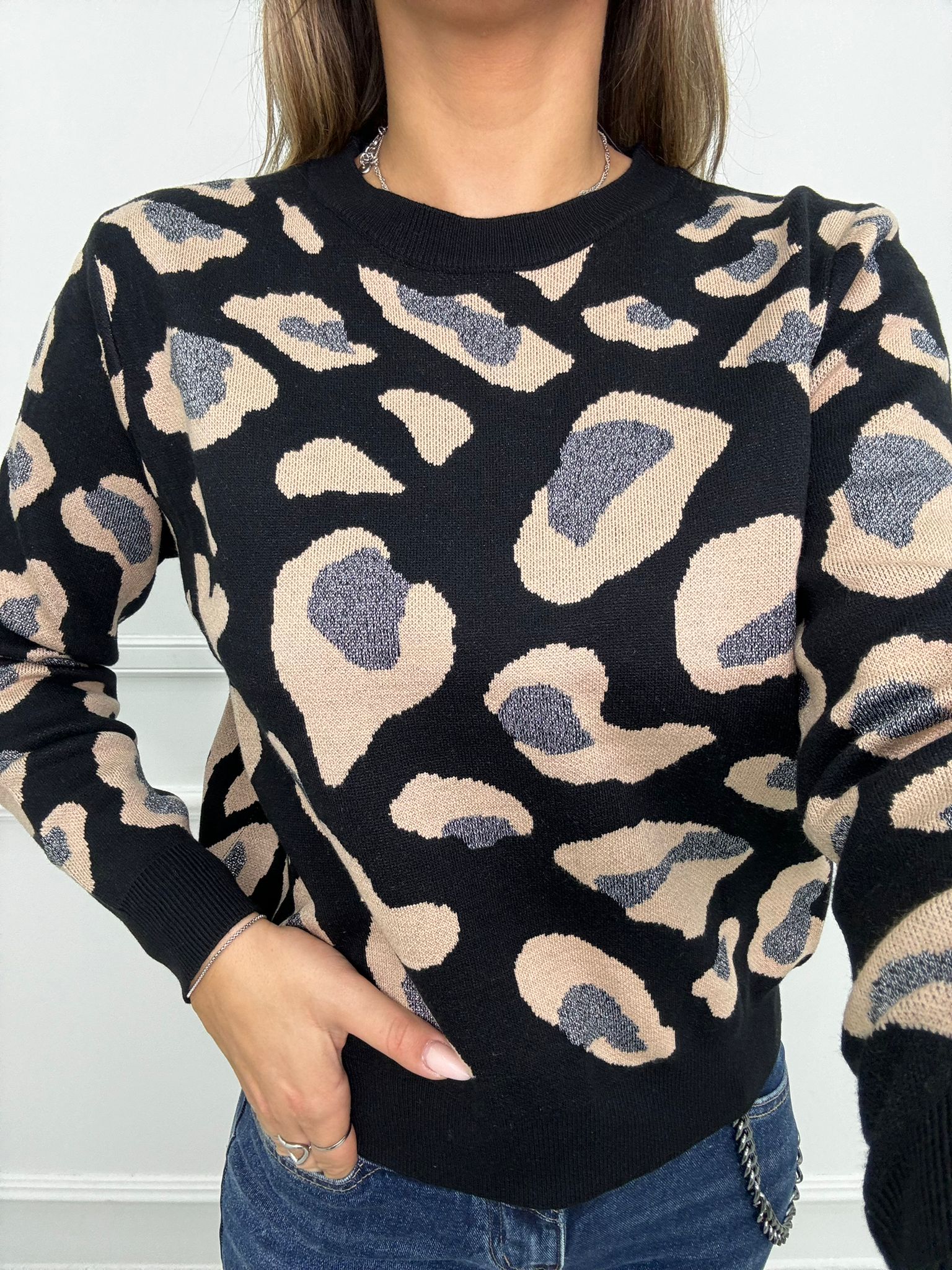 Maglione animalier con inserti glitter