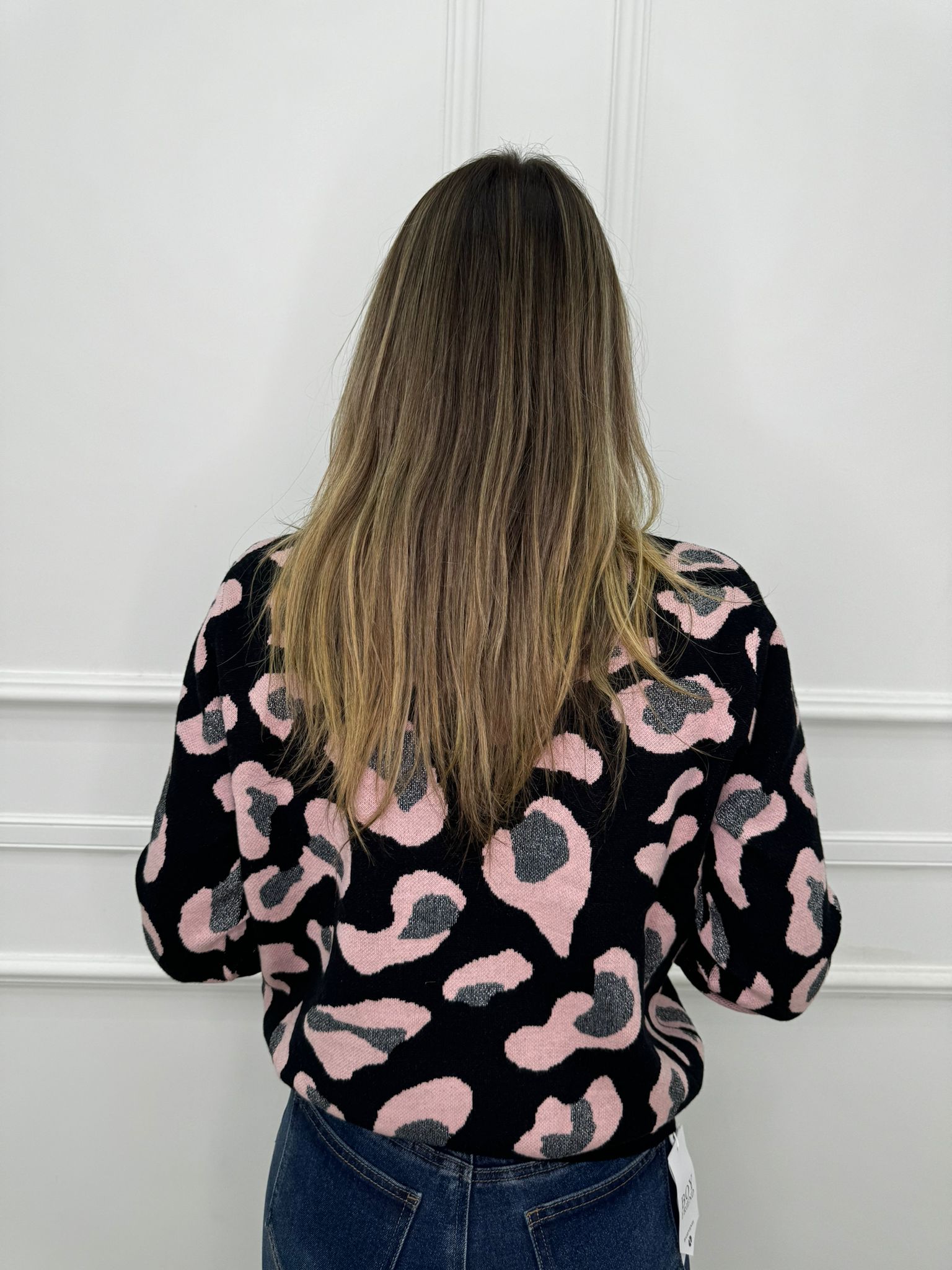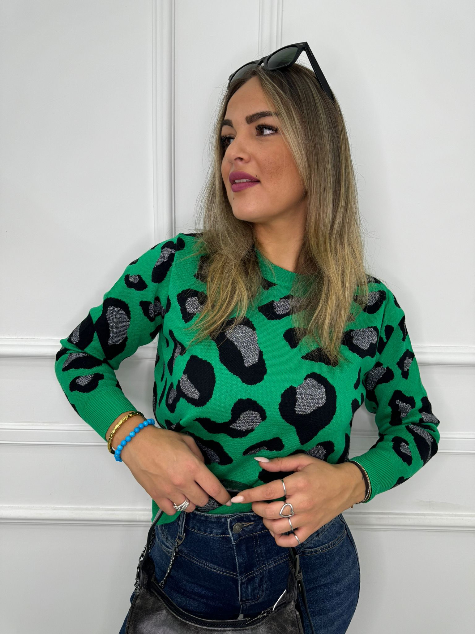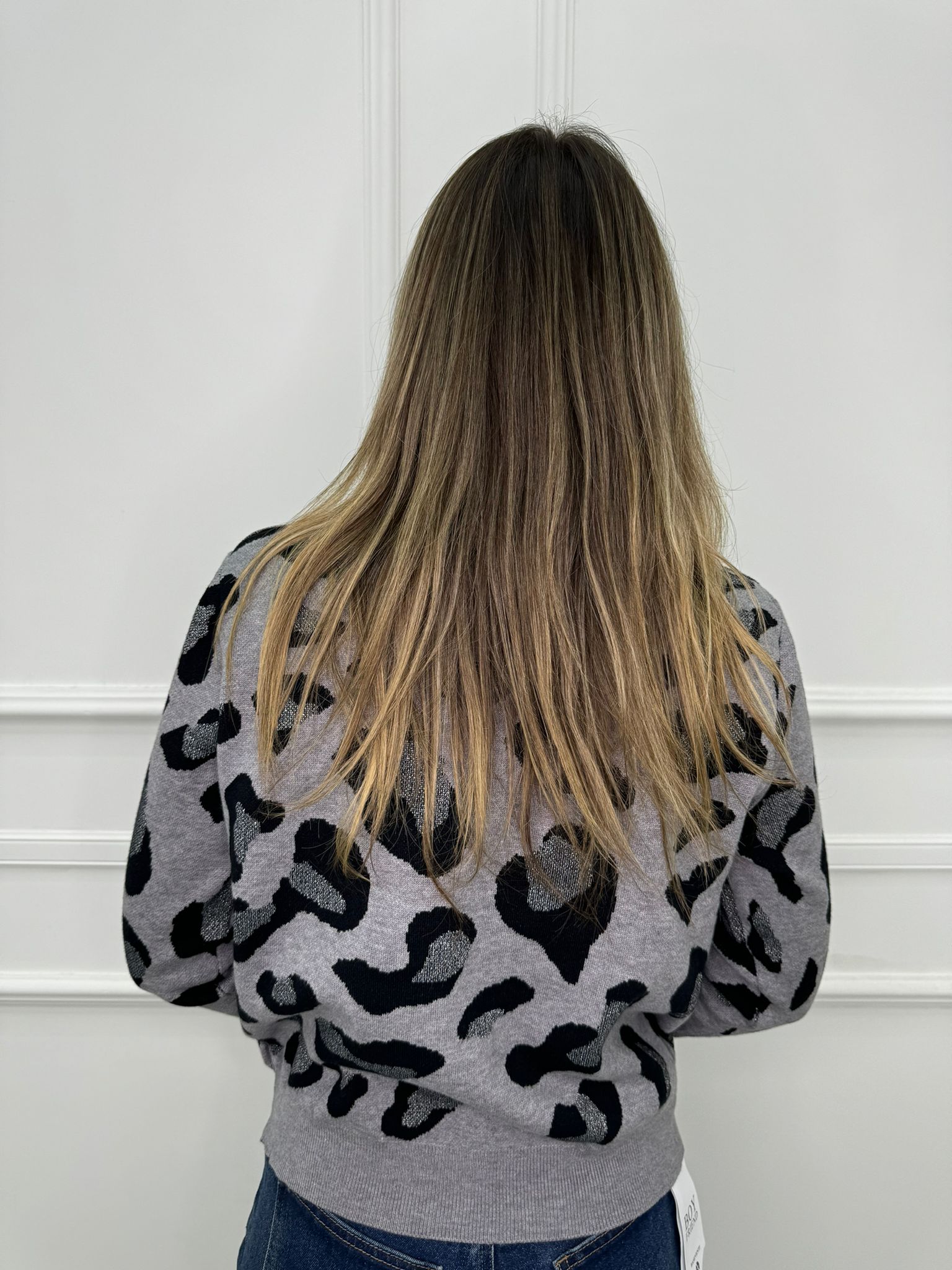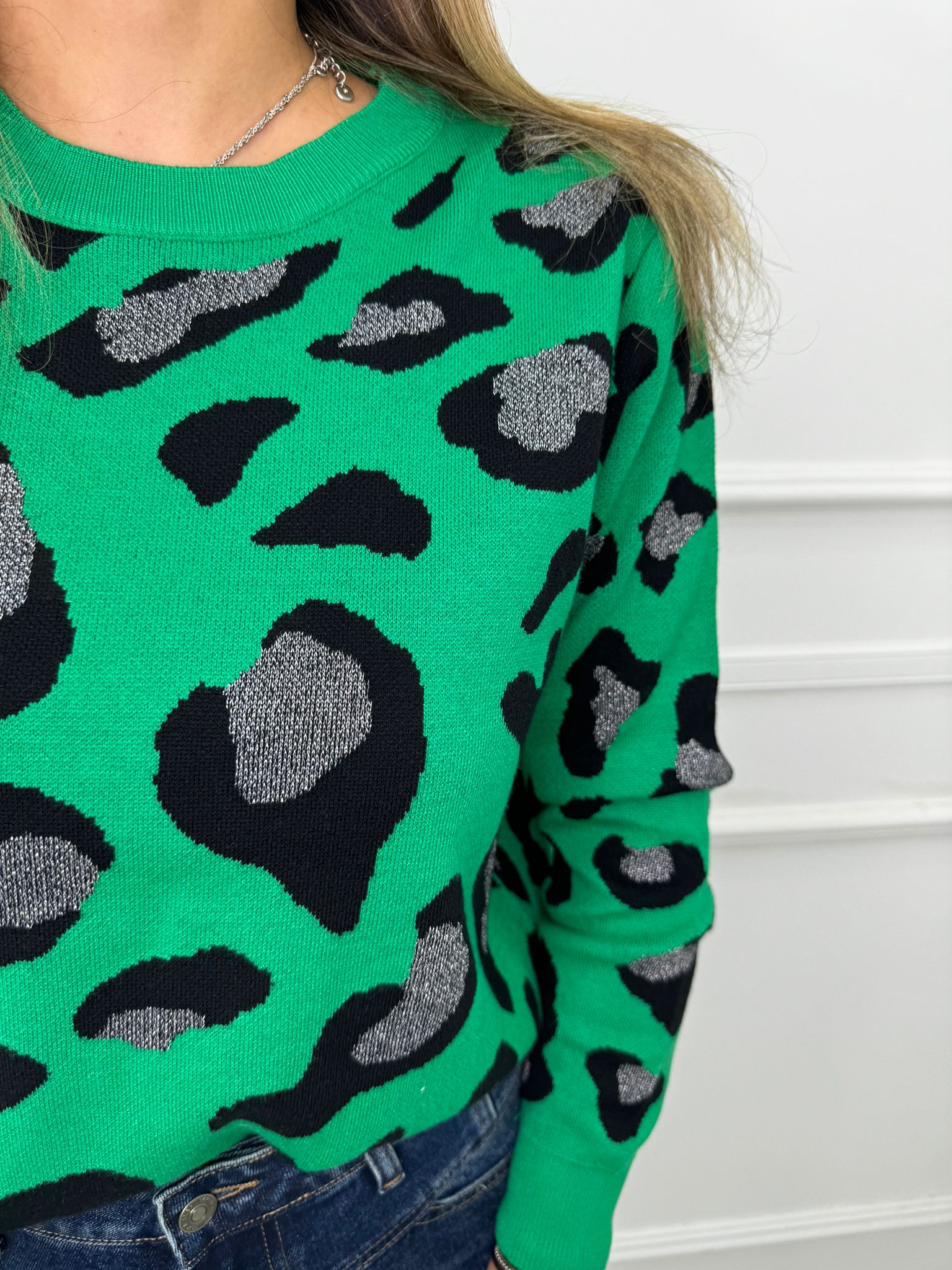 Maglione animalier con inserti glitter