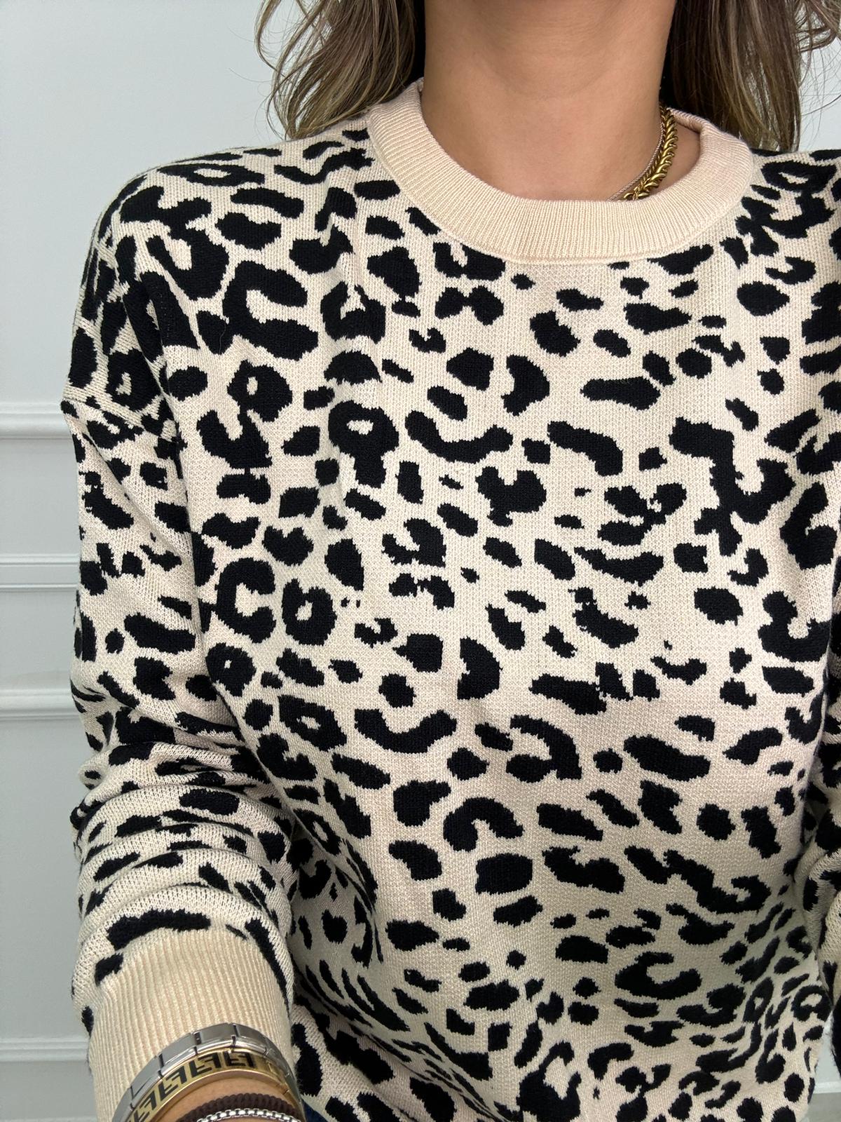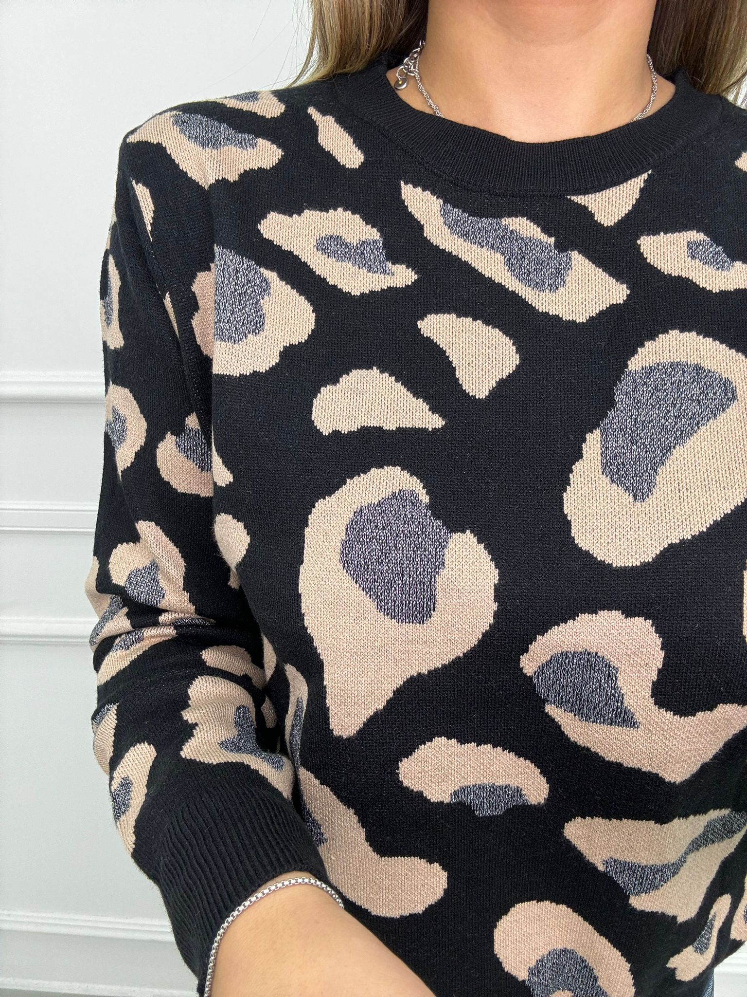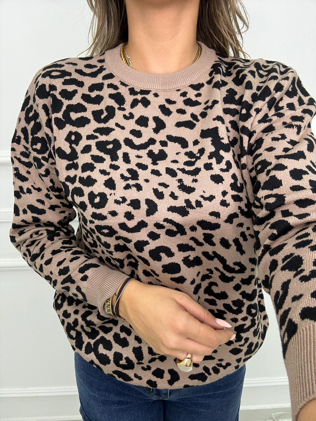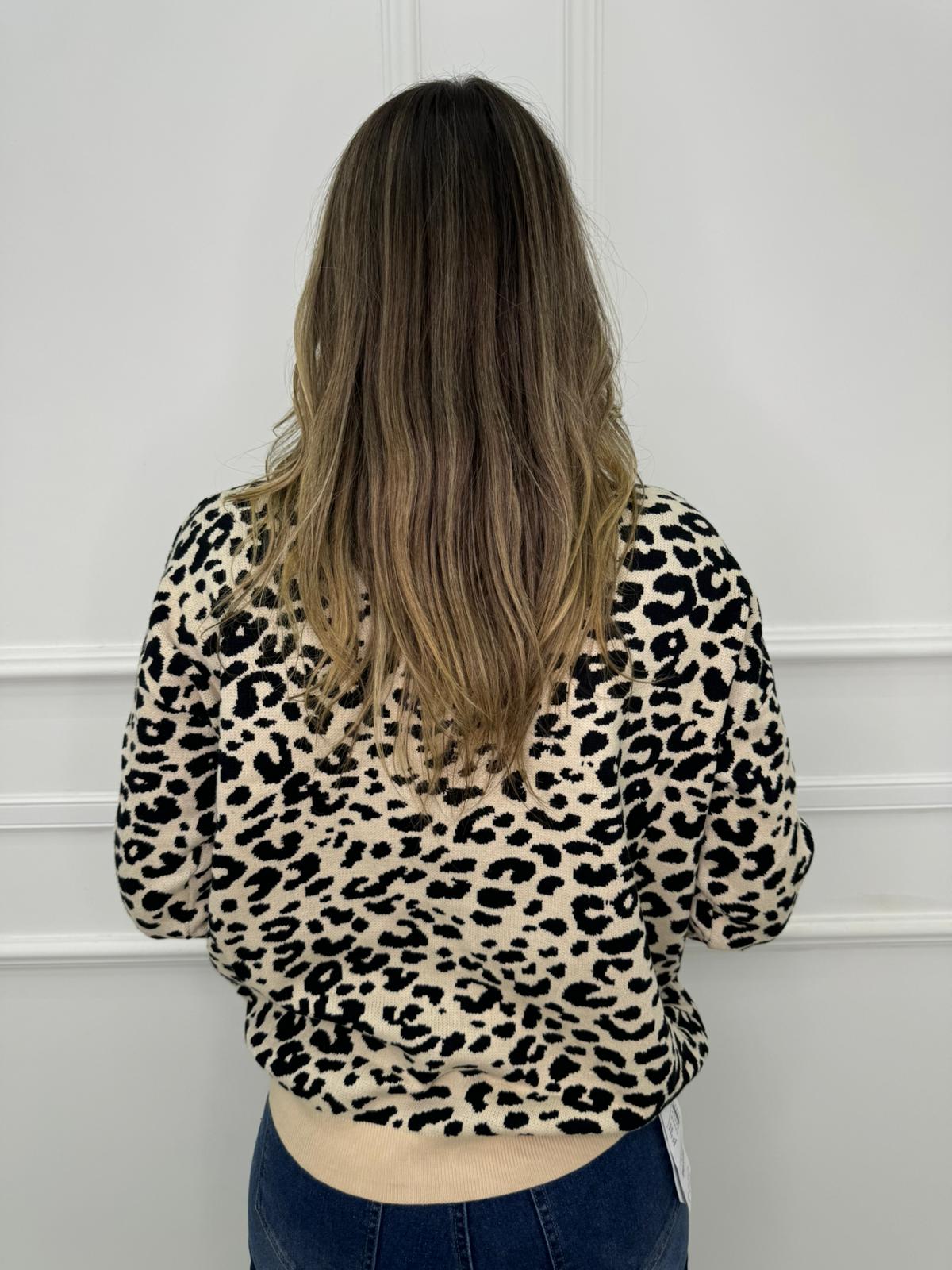 Maglione fantasia animalier giro collo
