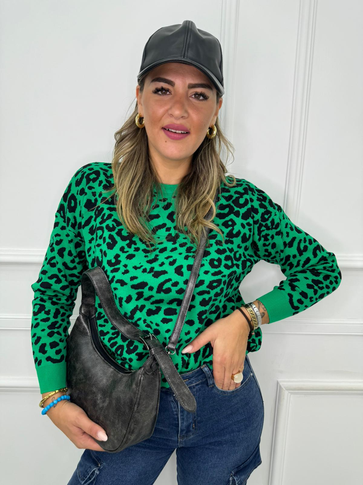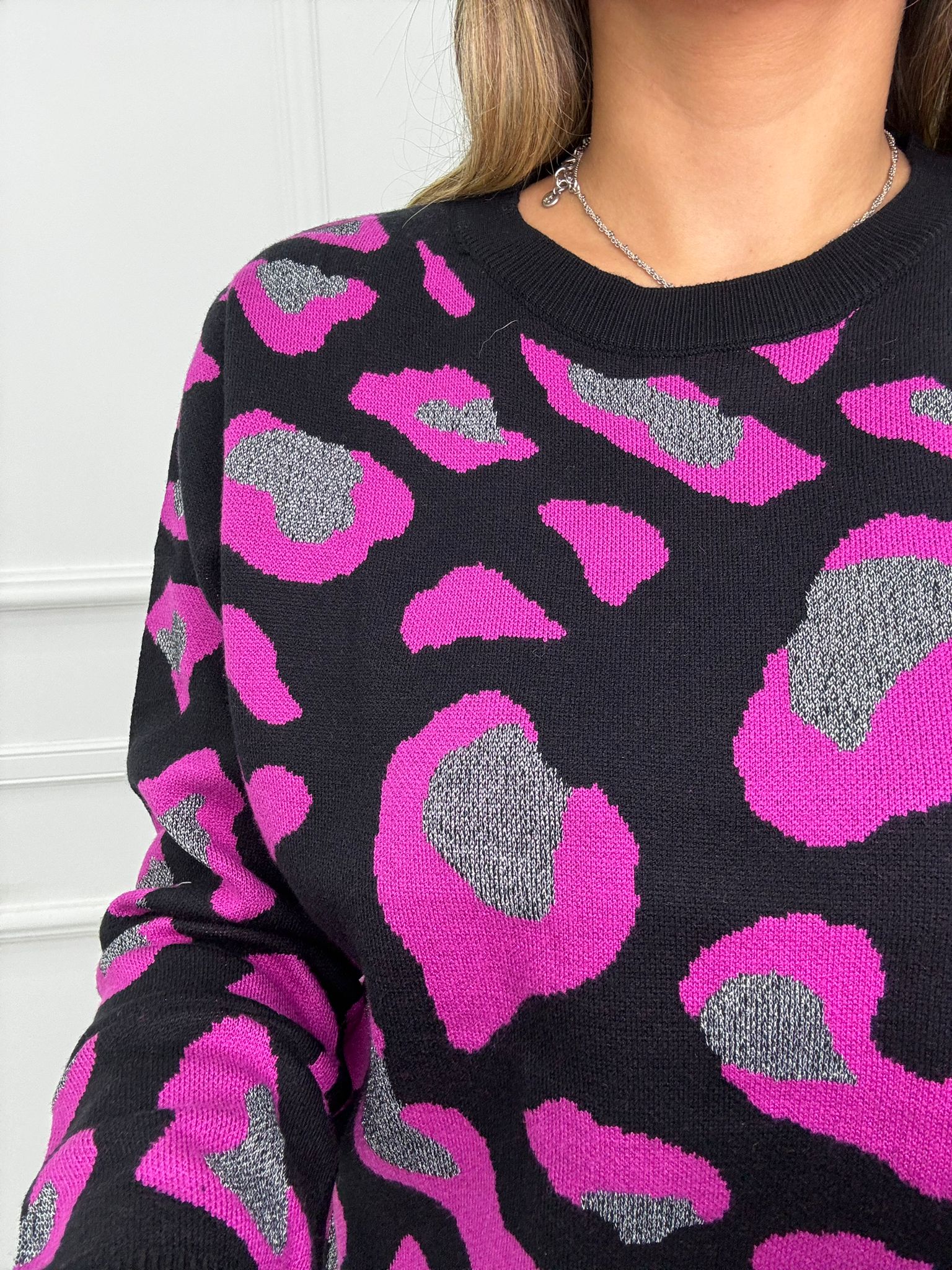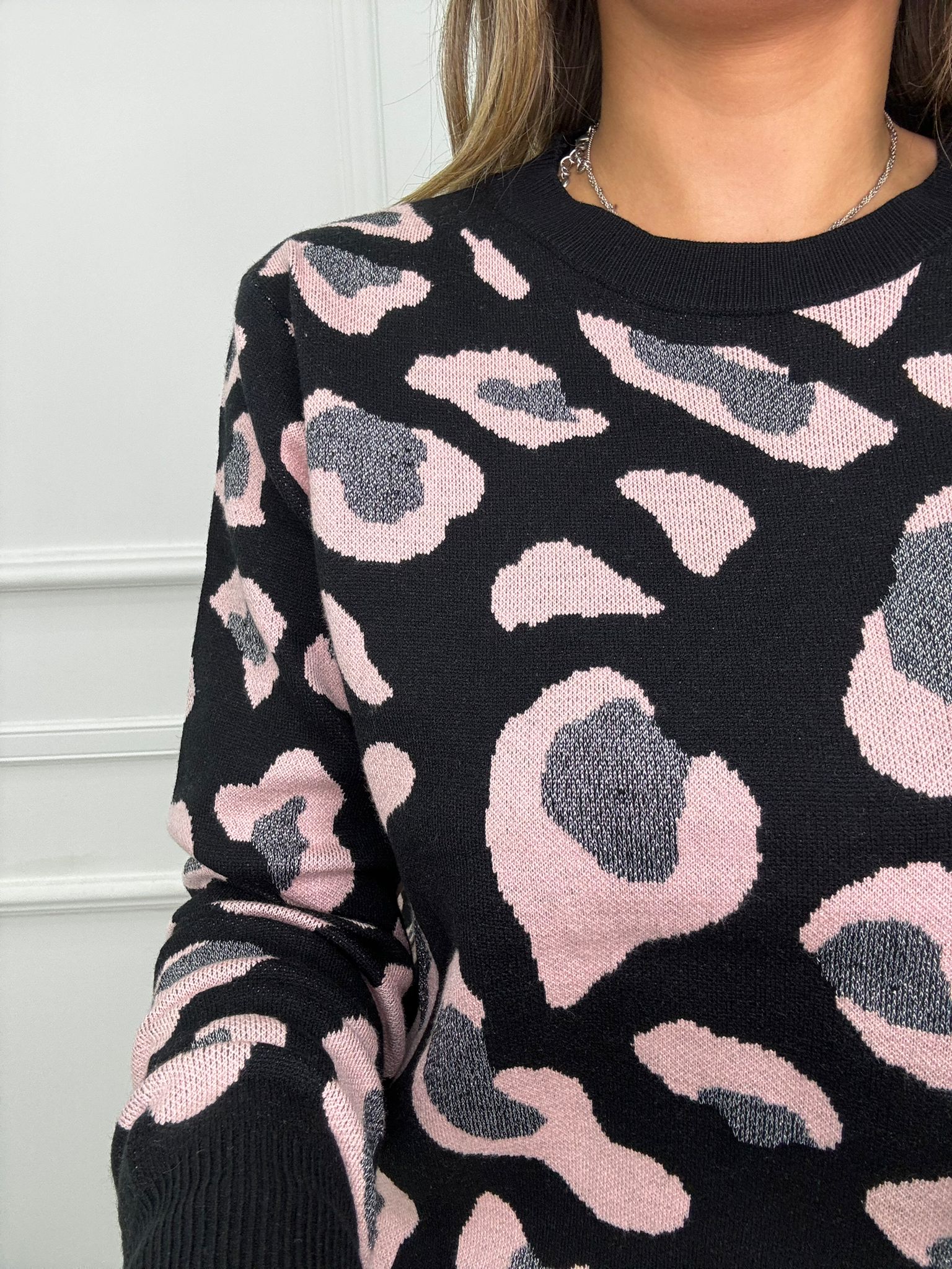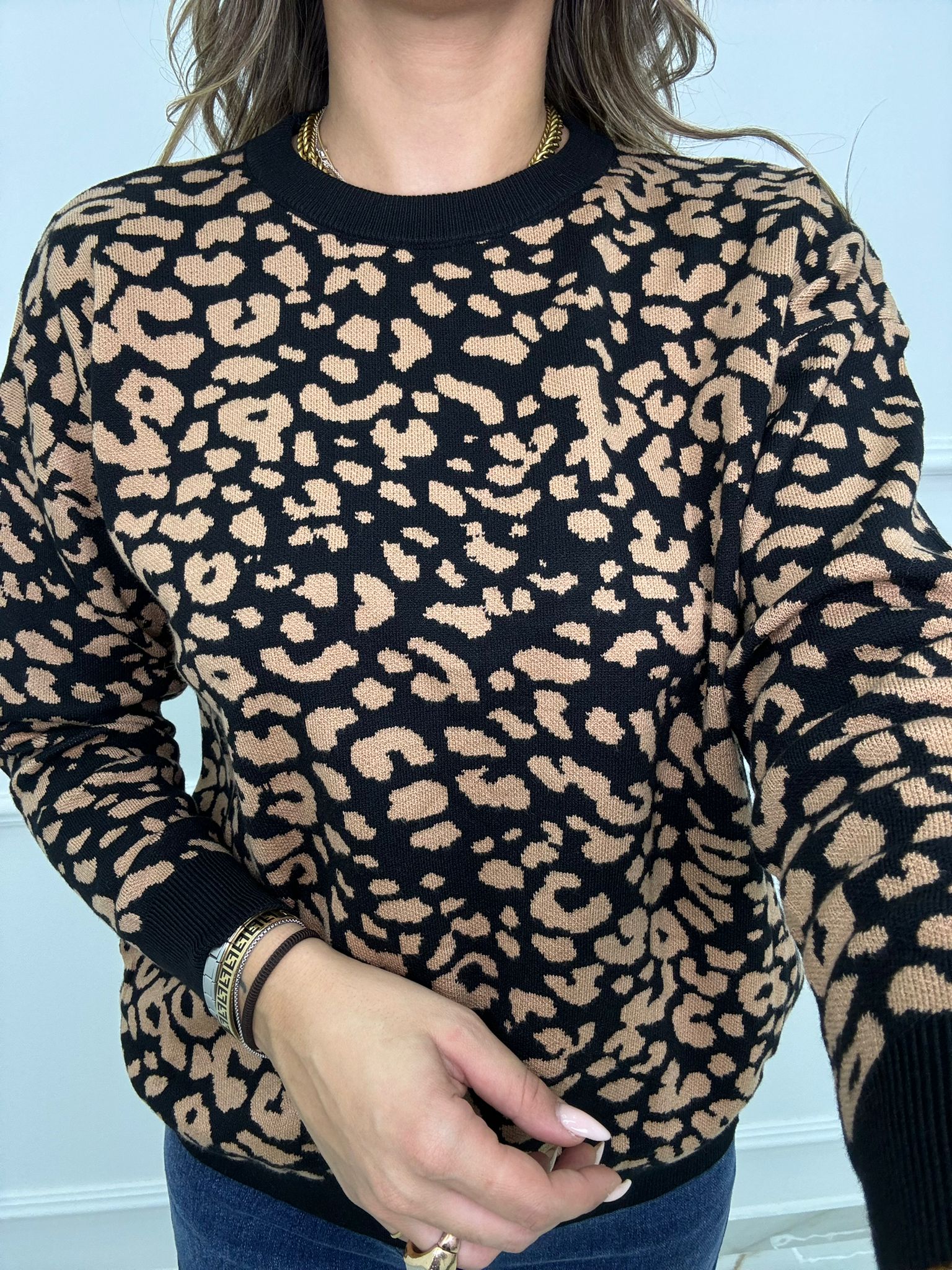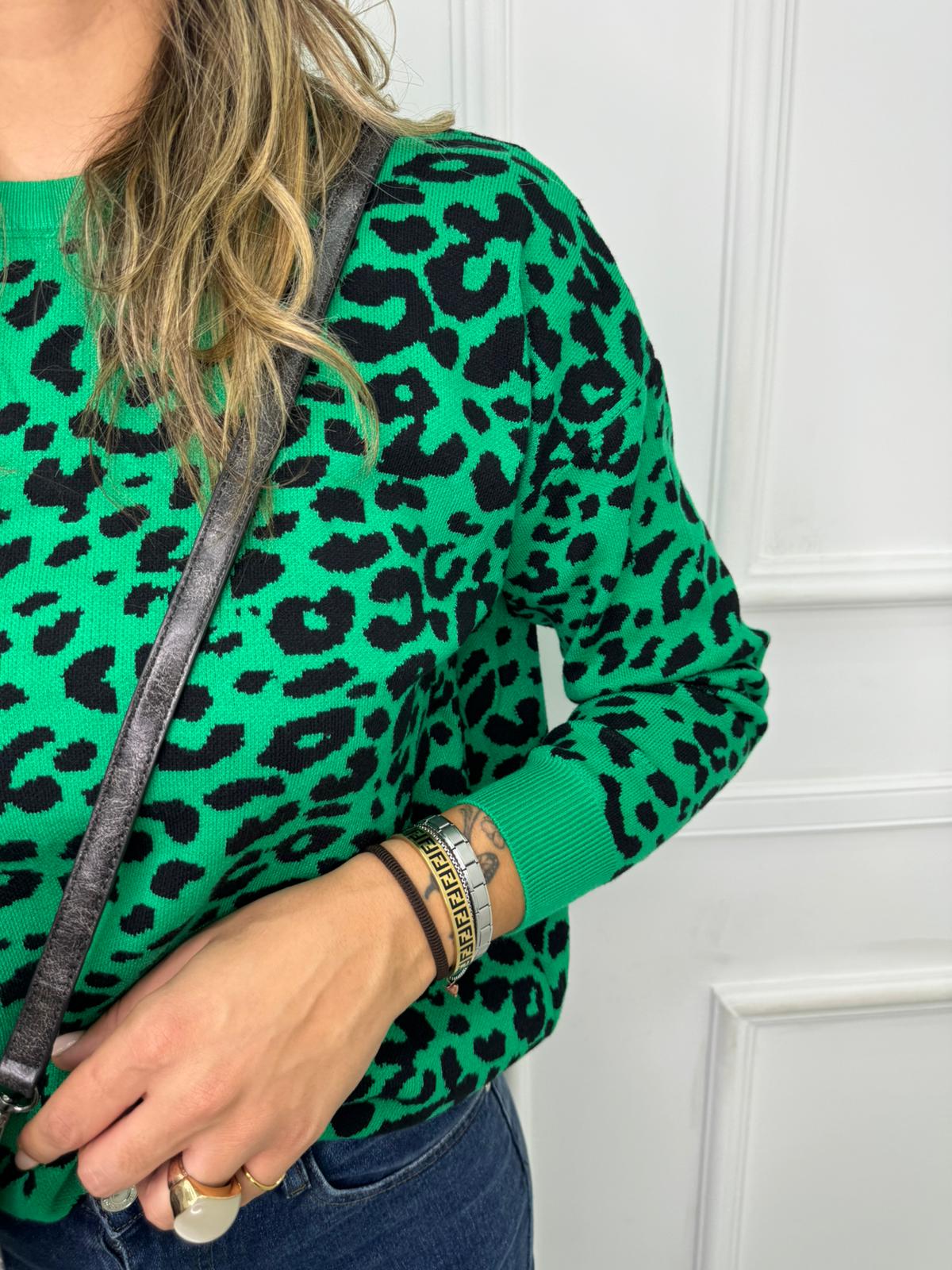 Maglione fantasia animalier giro collo