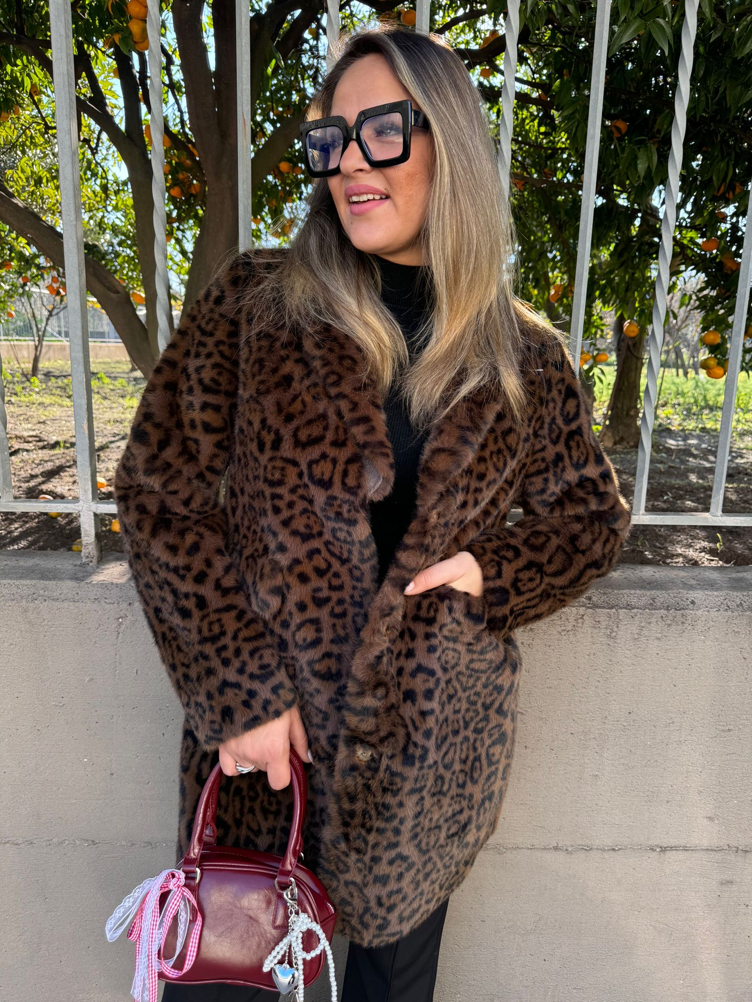 Pelliccia over animalier con tasche
