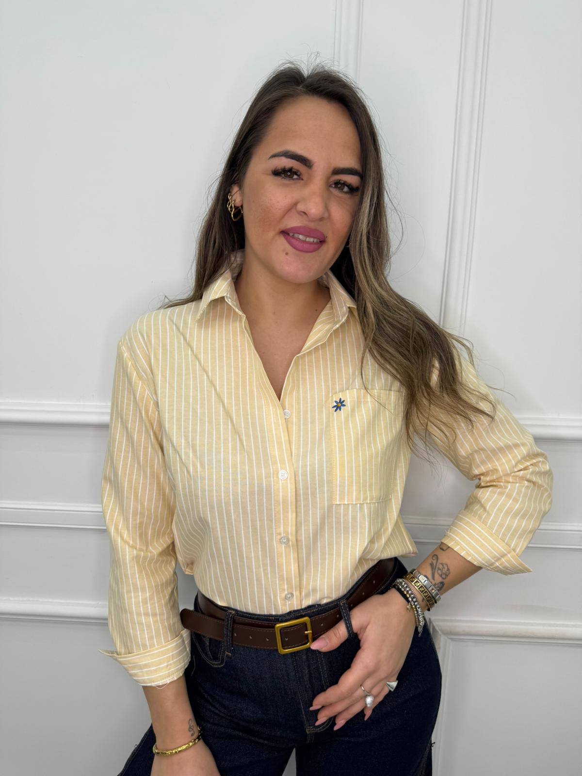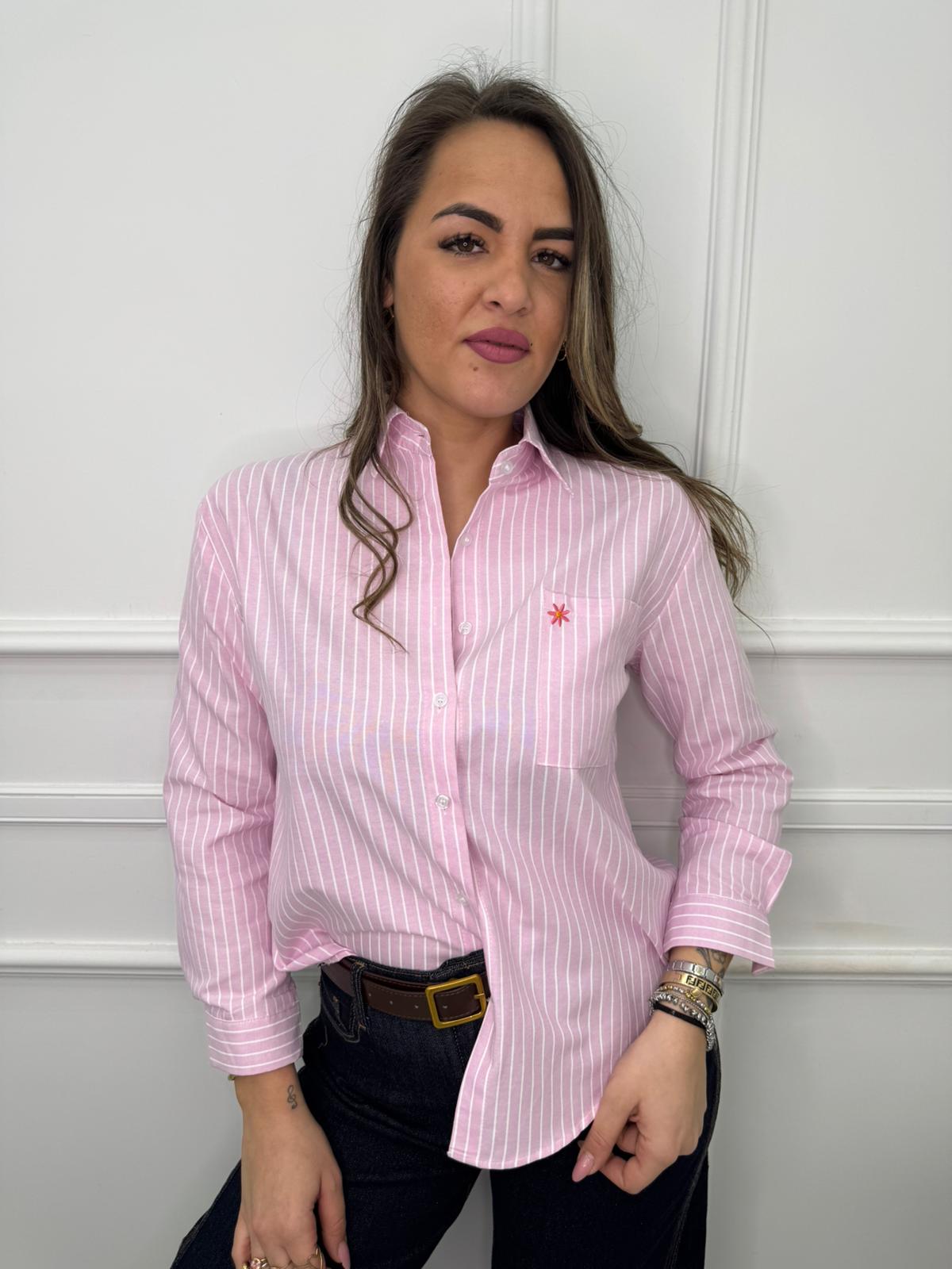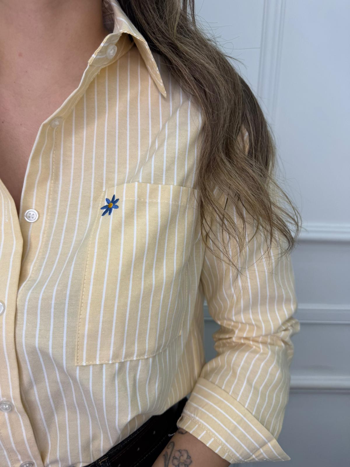 Camicia a righe con taschino e fiore