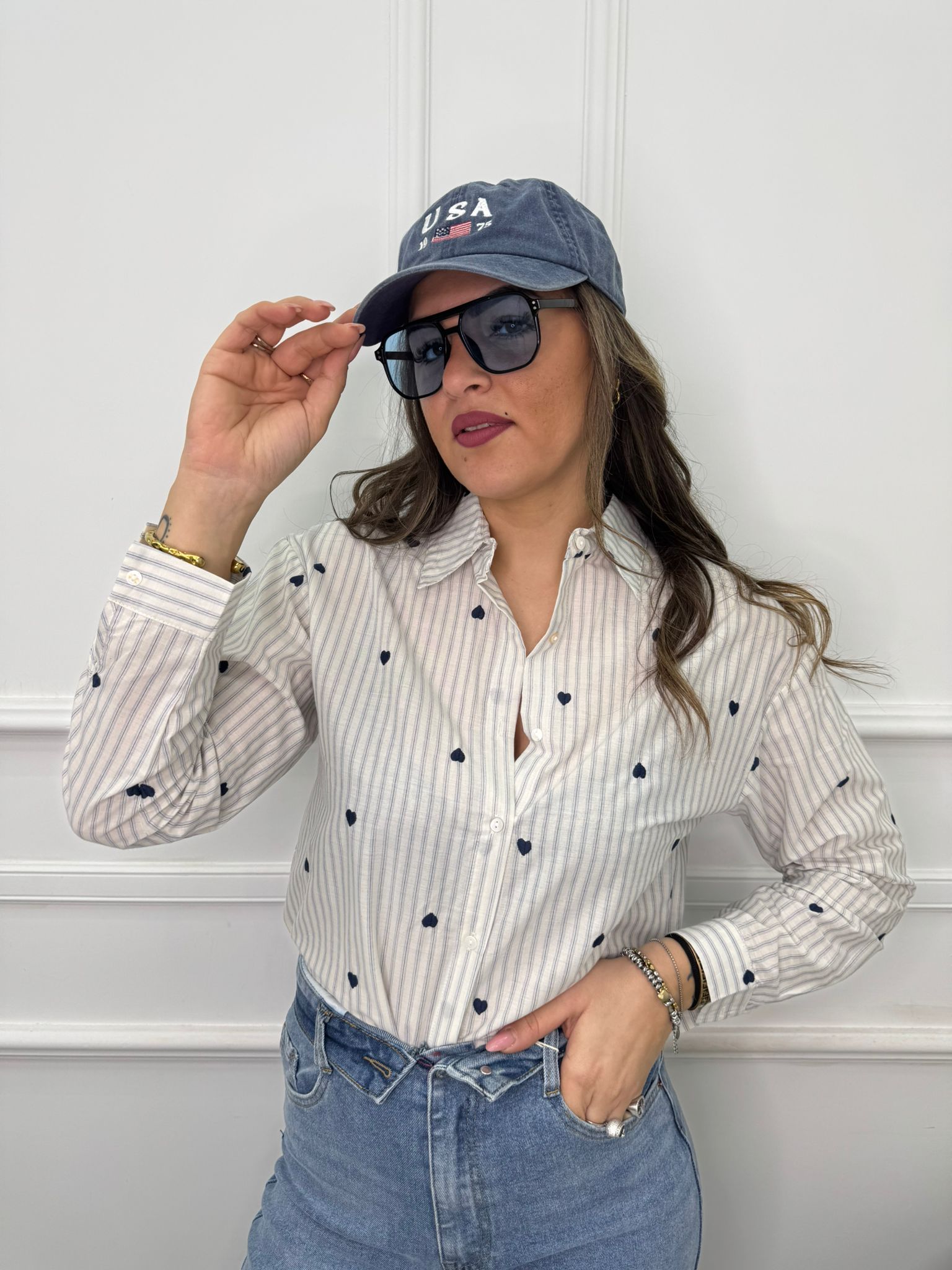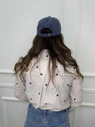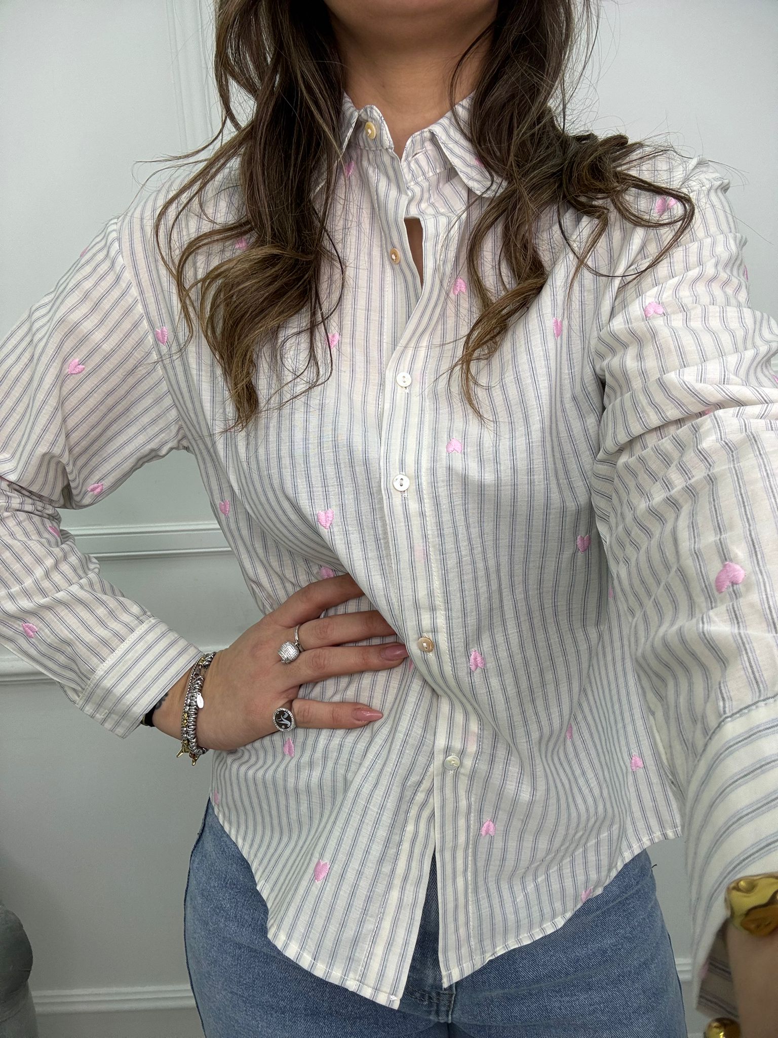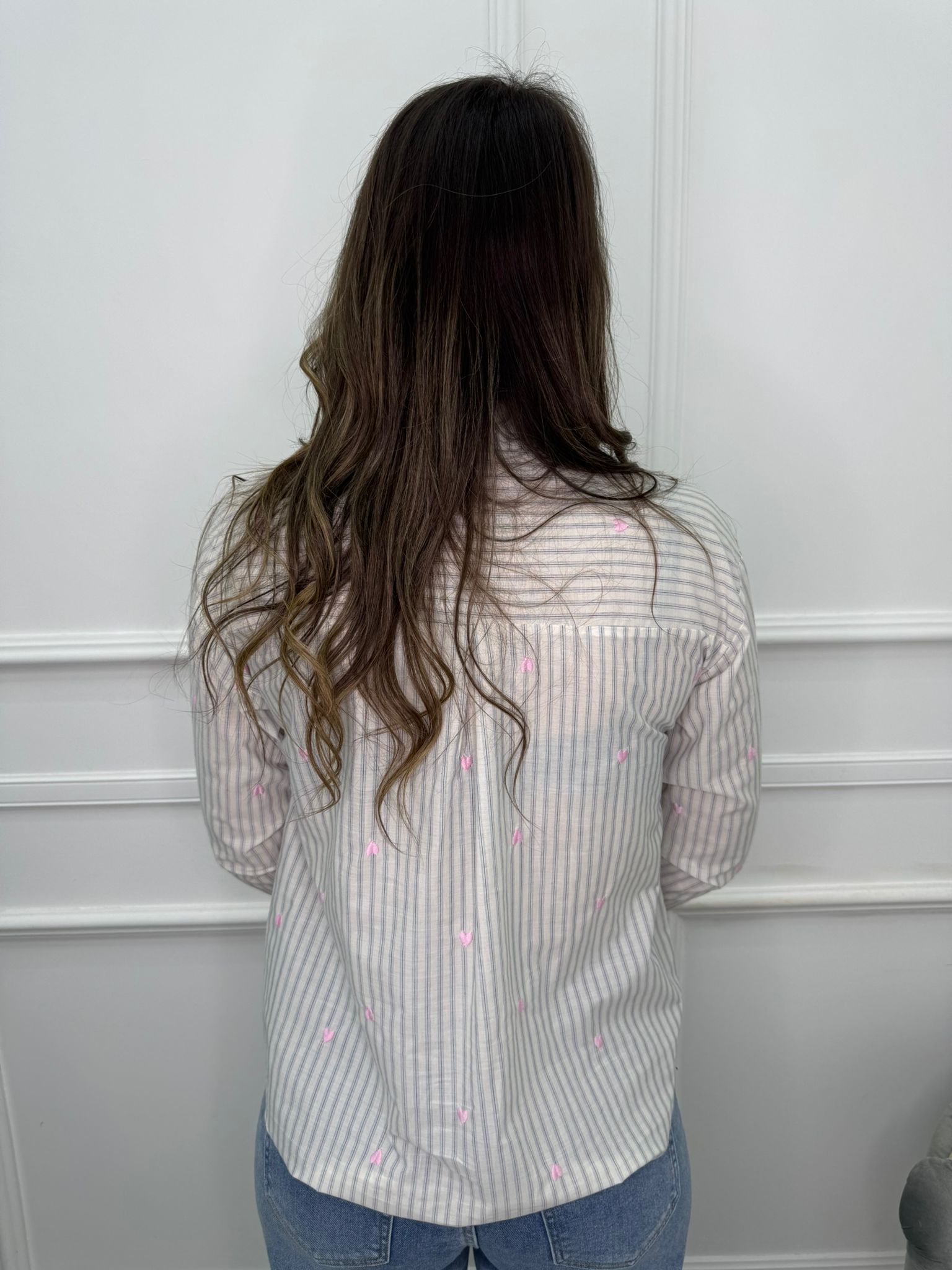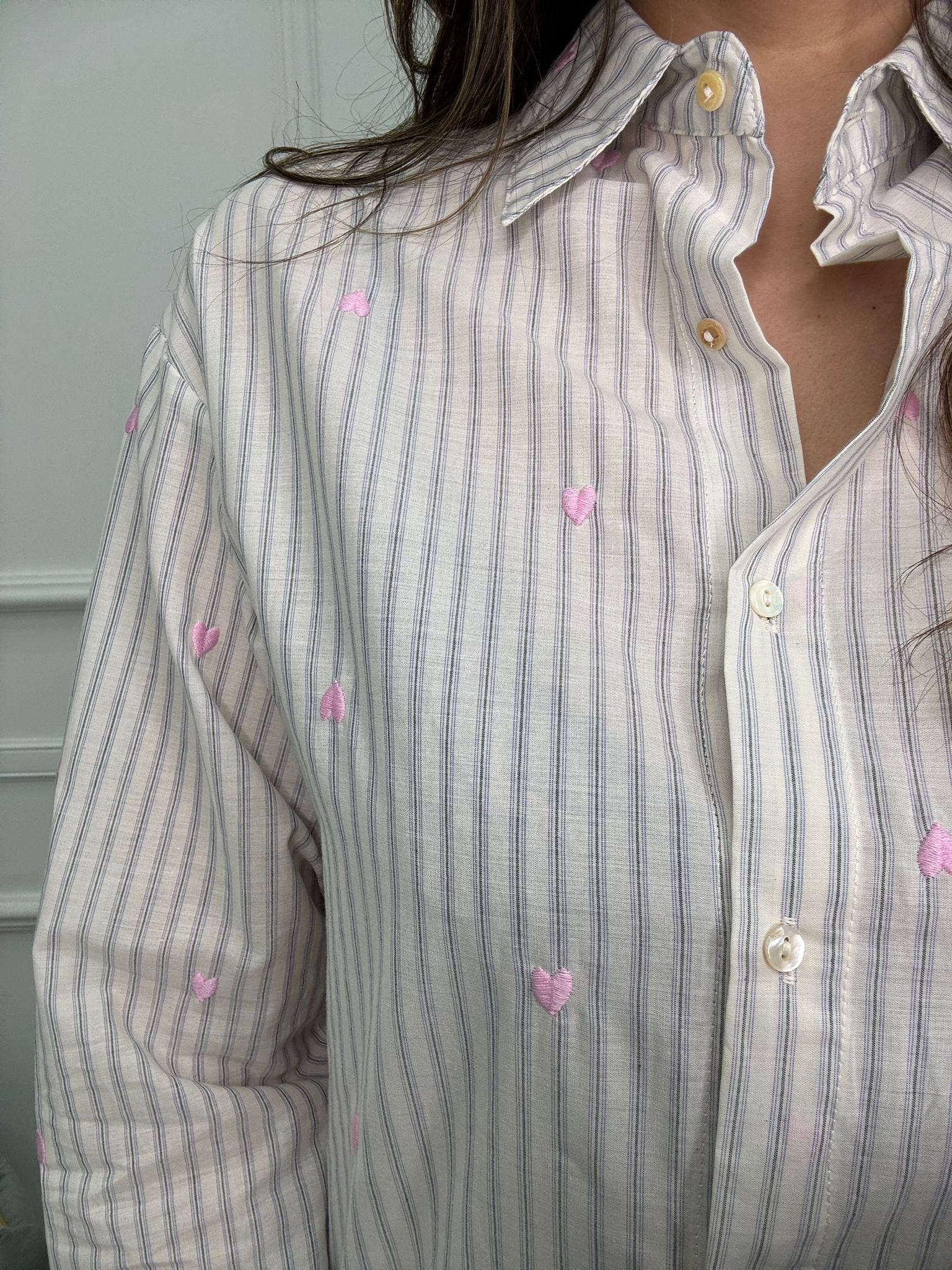 Camicia a righe con cuori ricamati