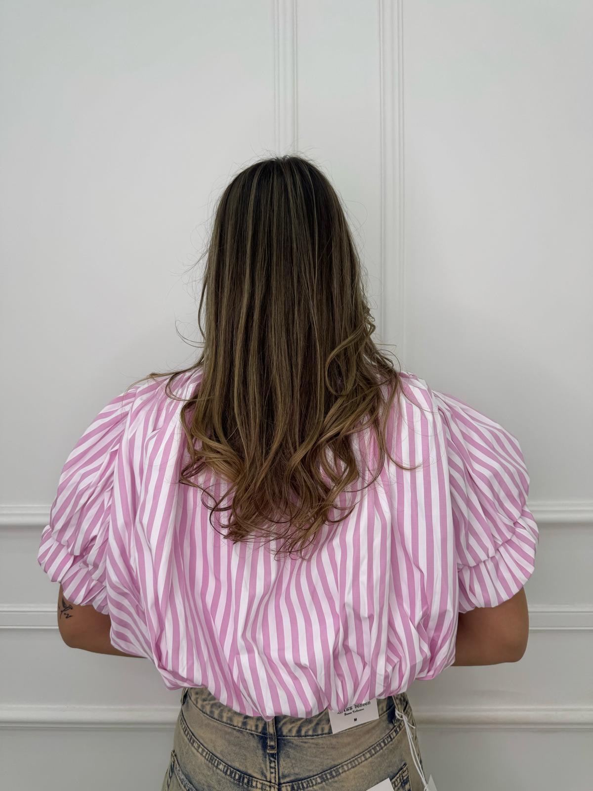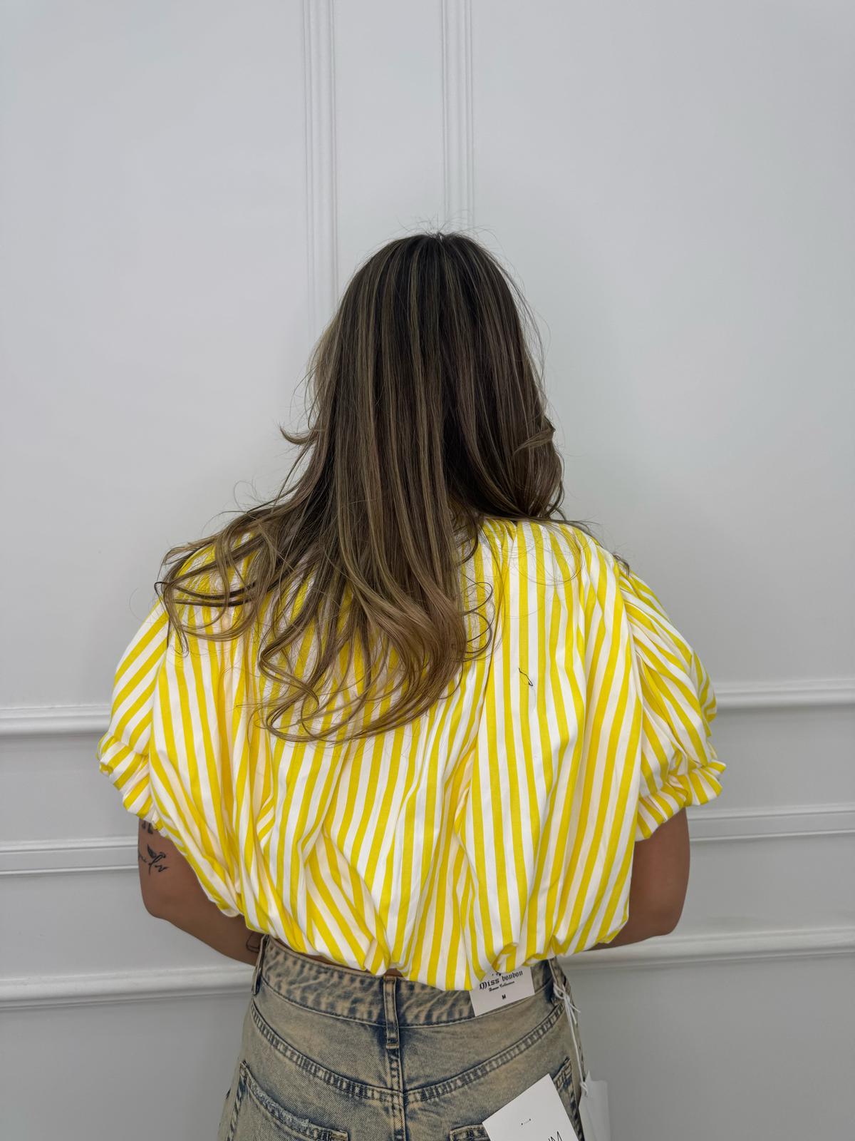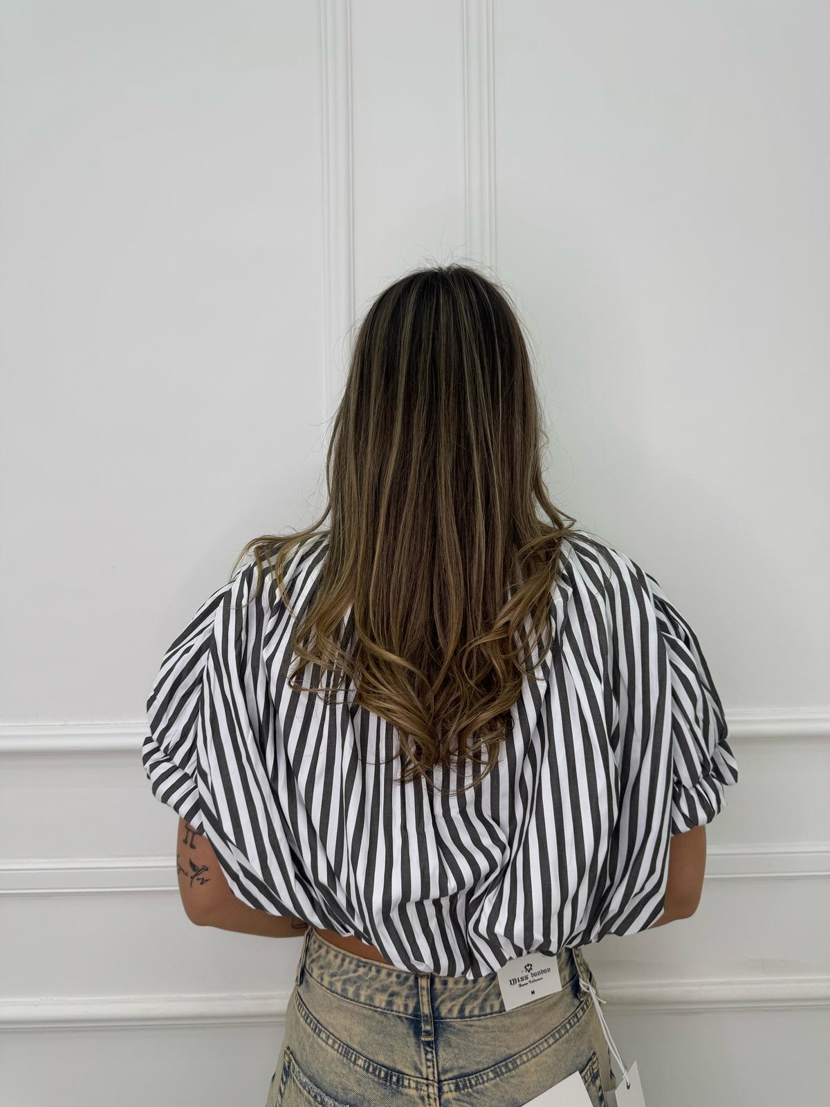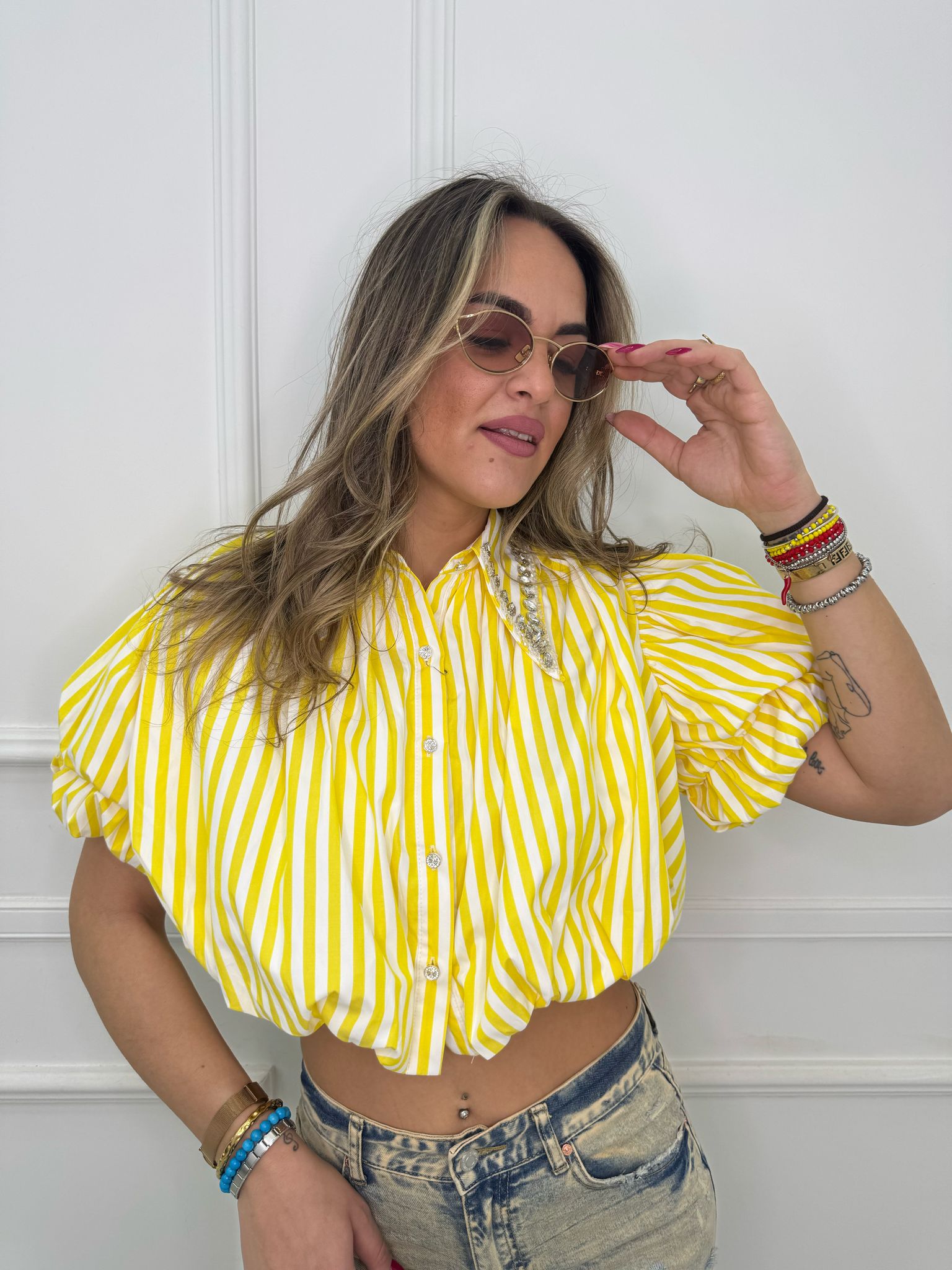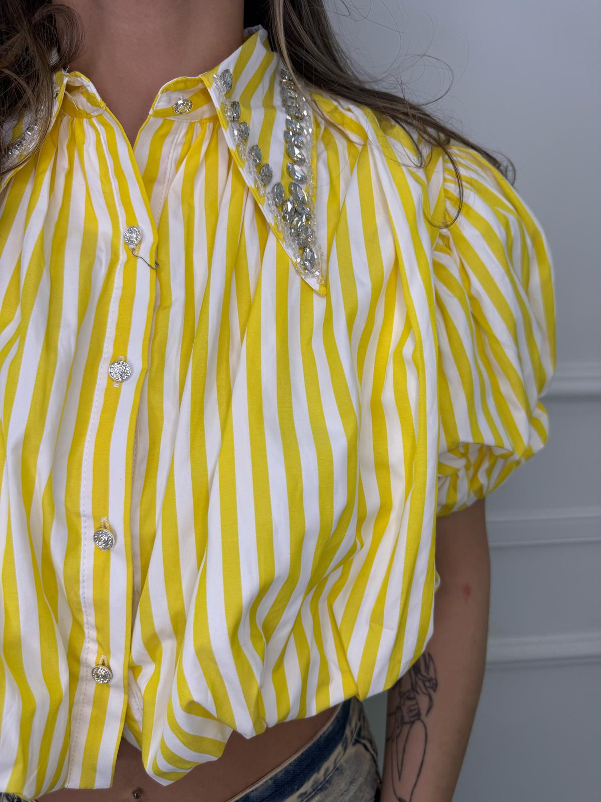 Camicia crop con maniche a sbuffo e swarvoski