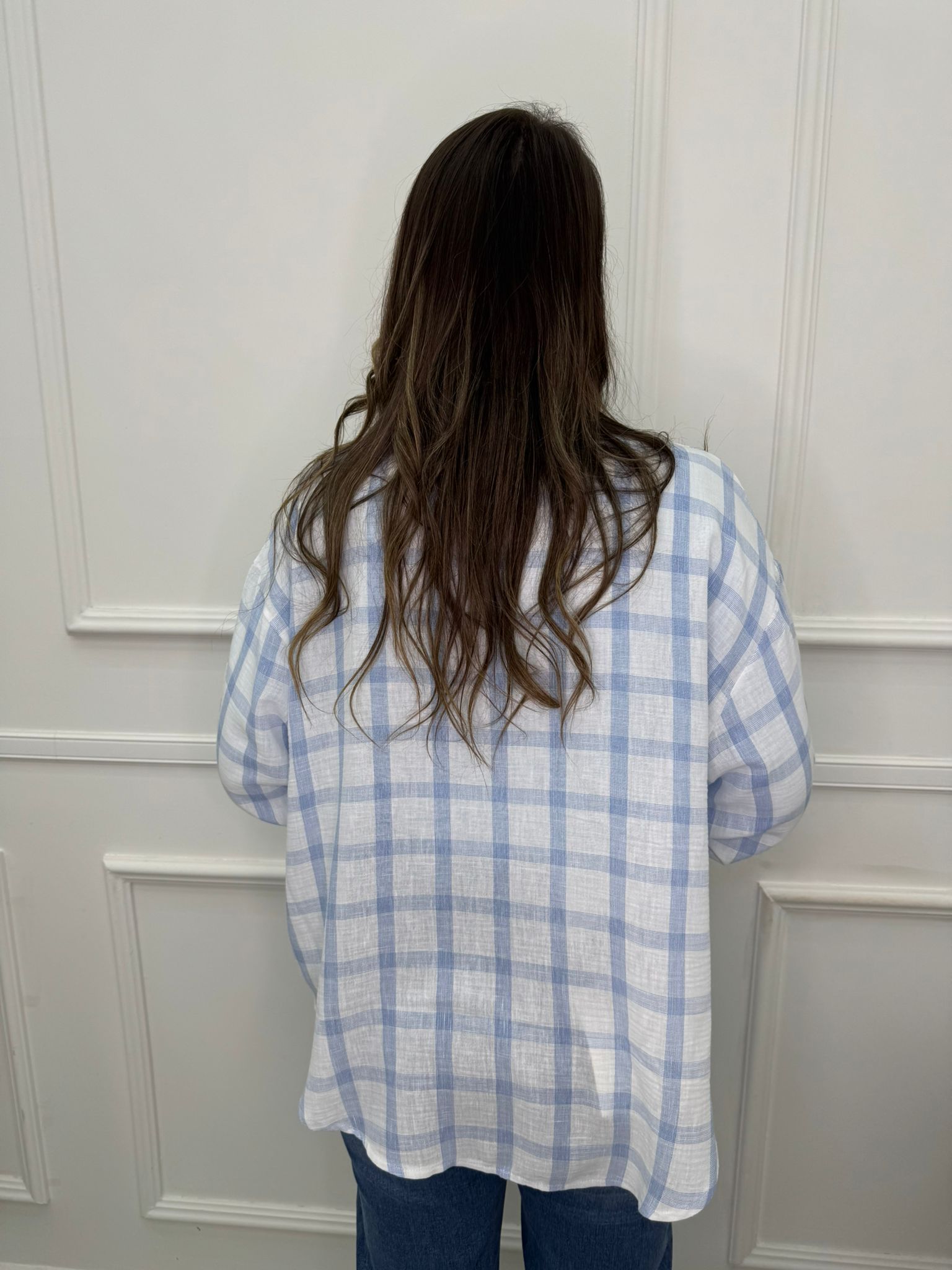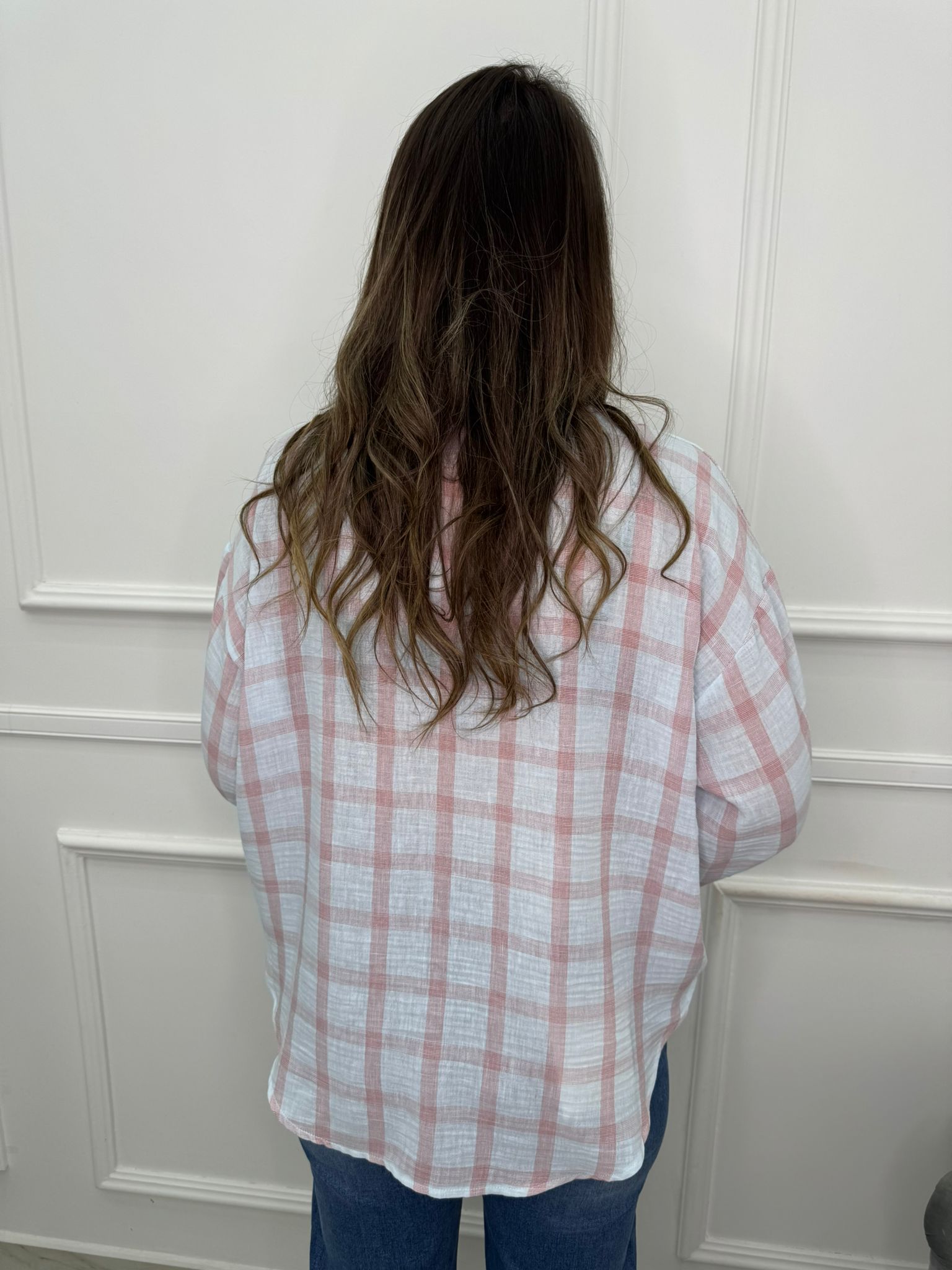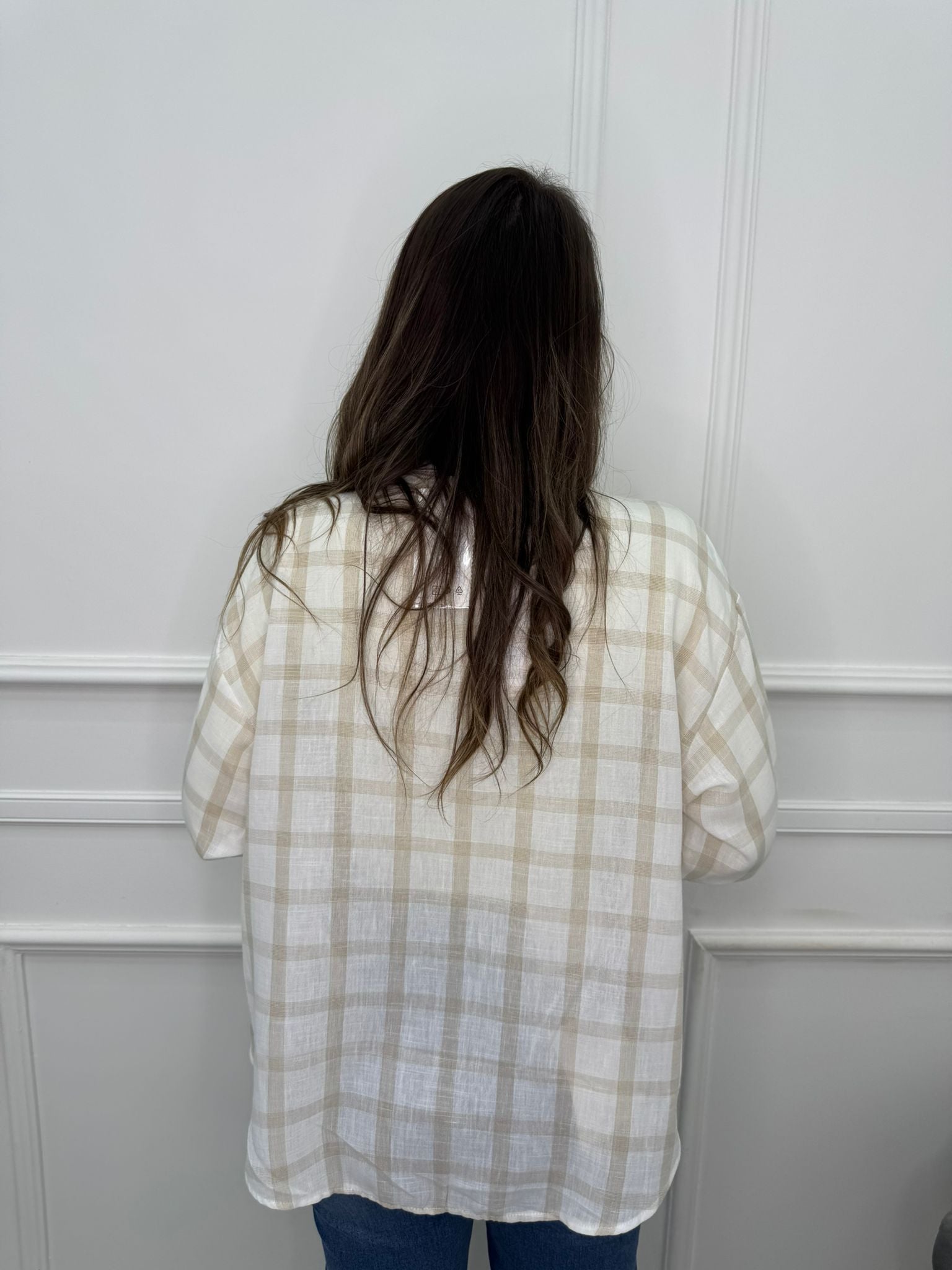 Camicia effetto lino a quadroni