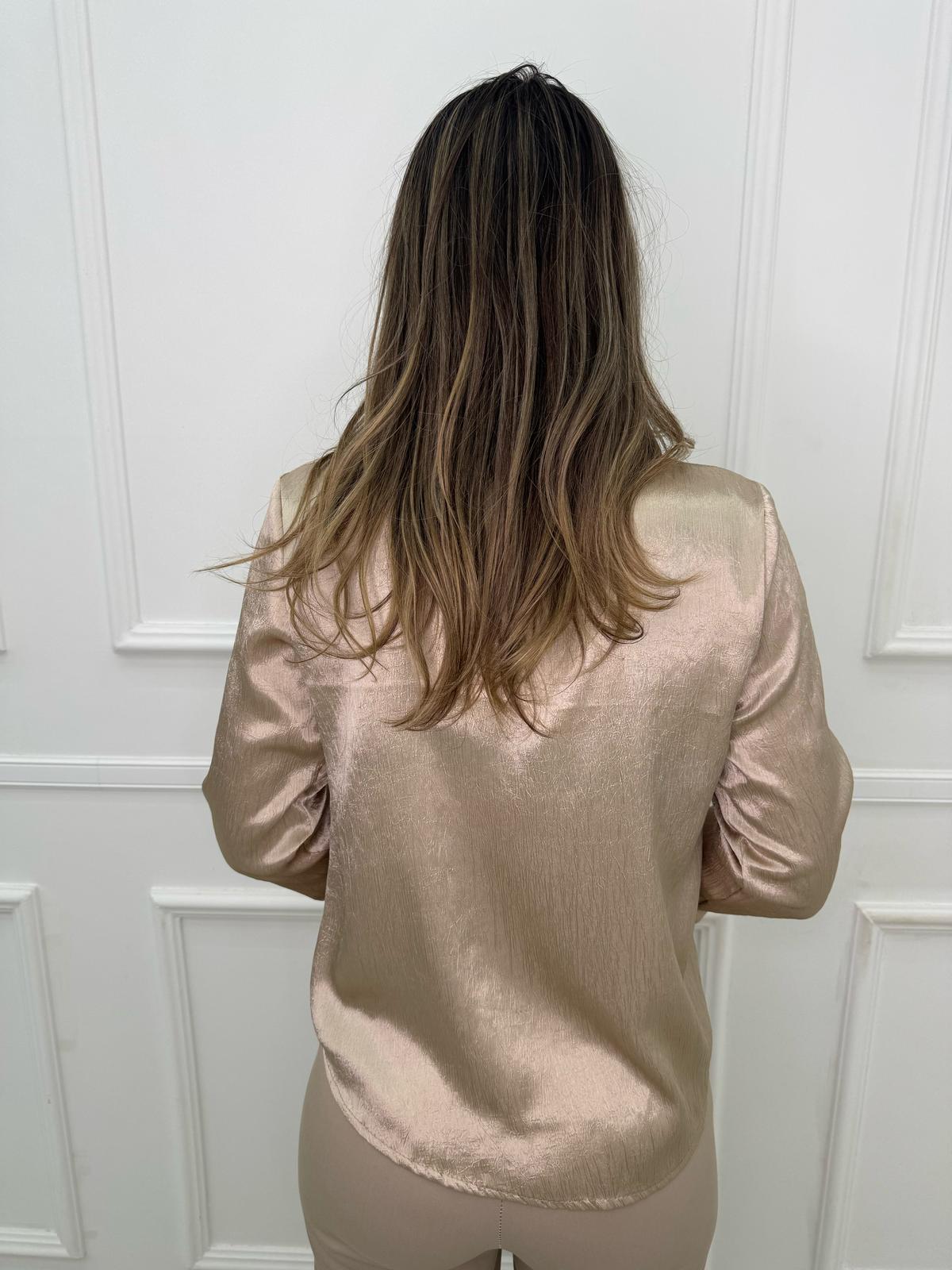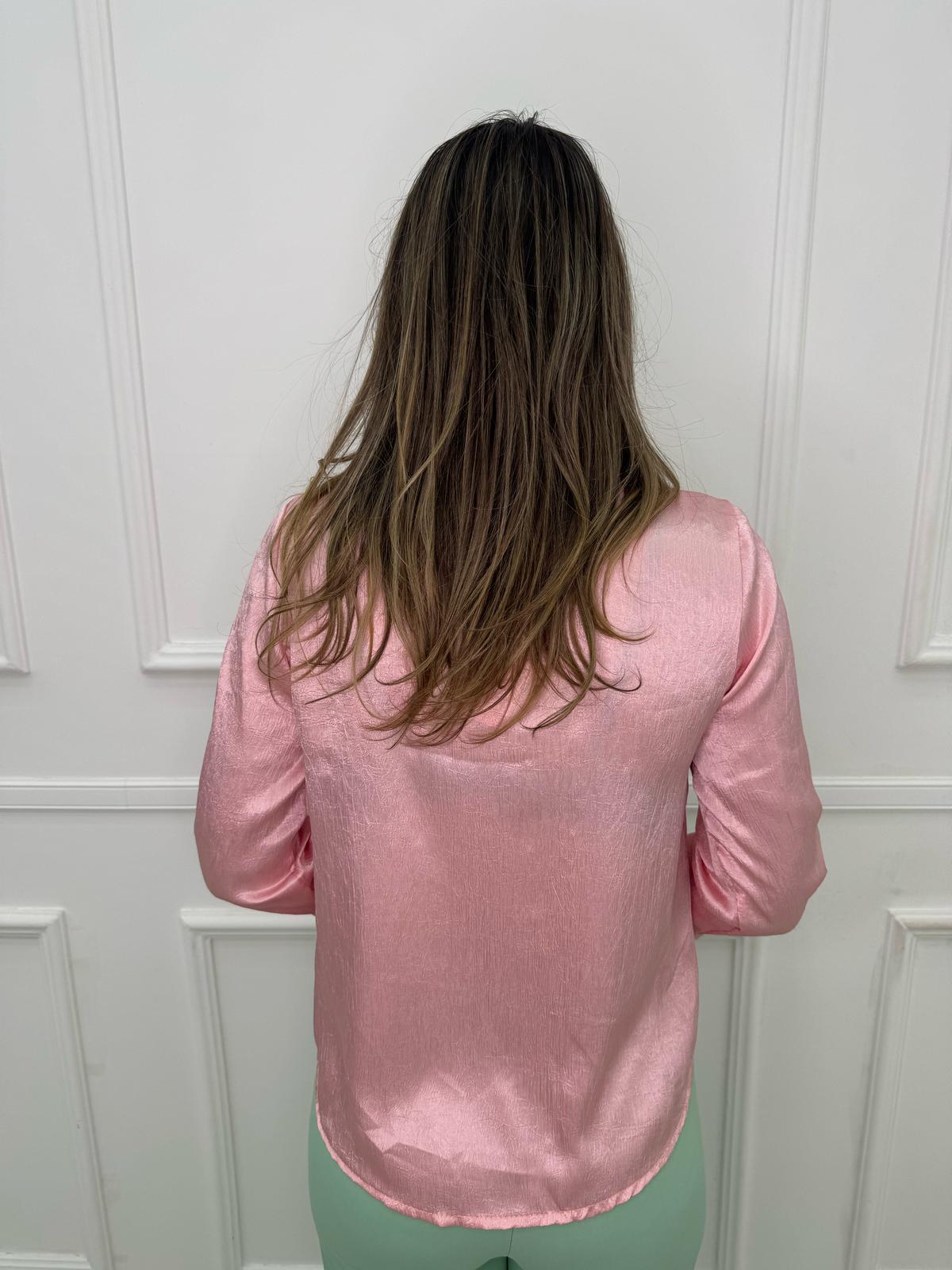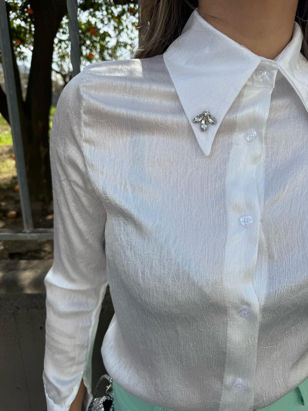 Camicia satinata con swarovski al colletto