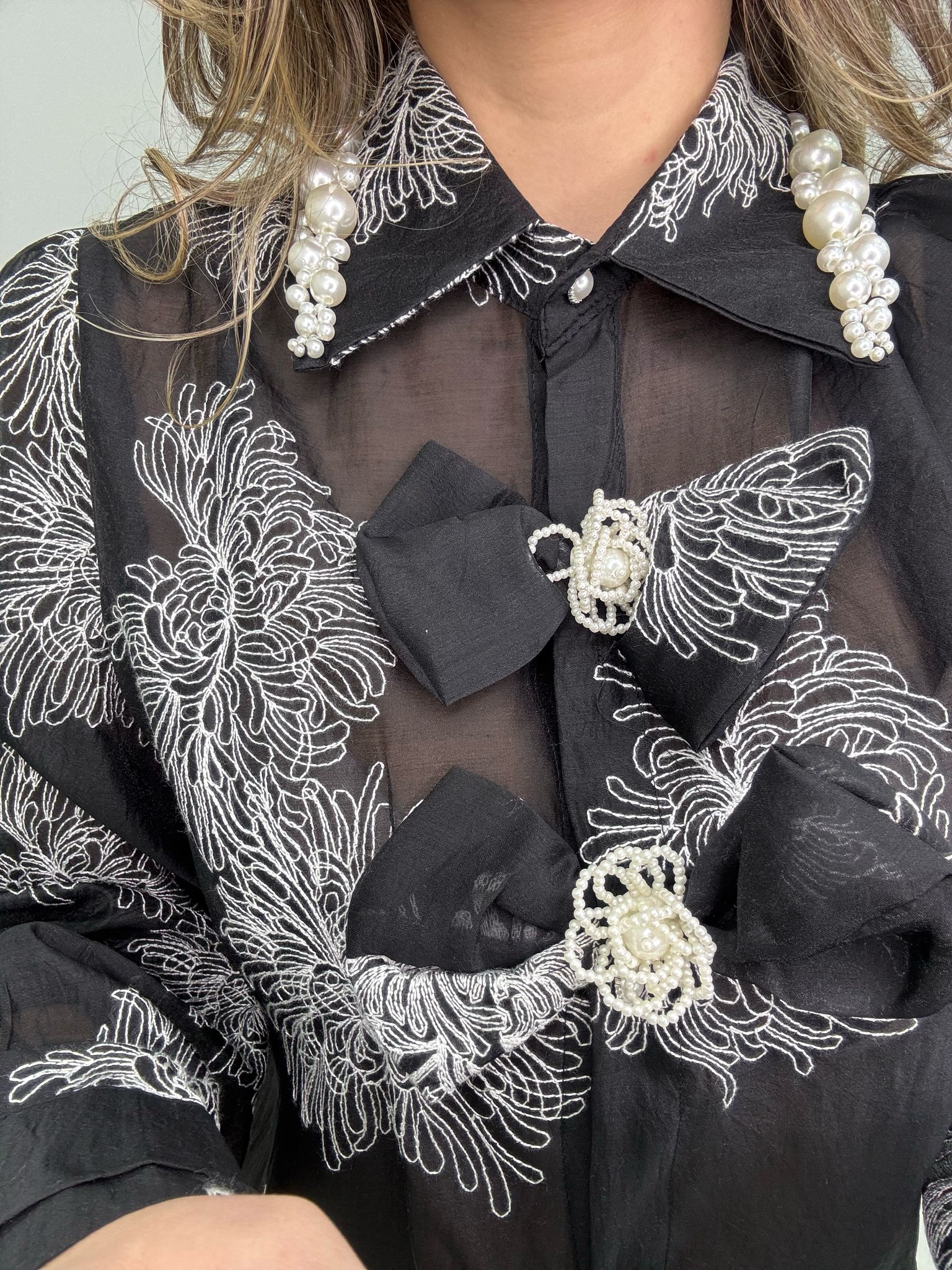 Camicia velata con applicazioni e fiocchi