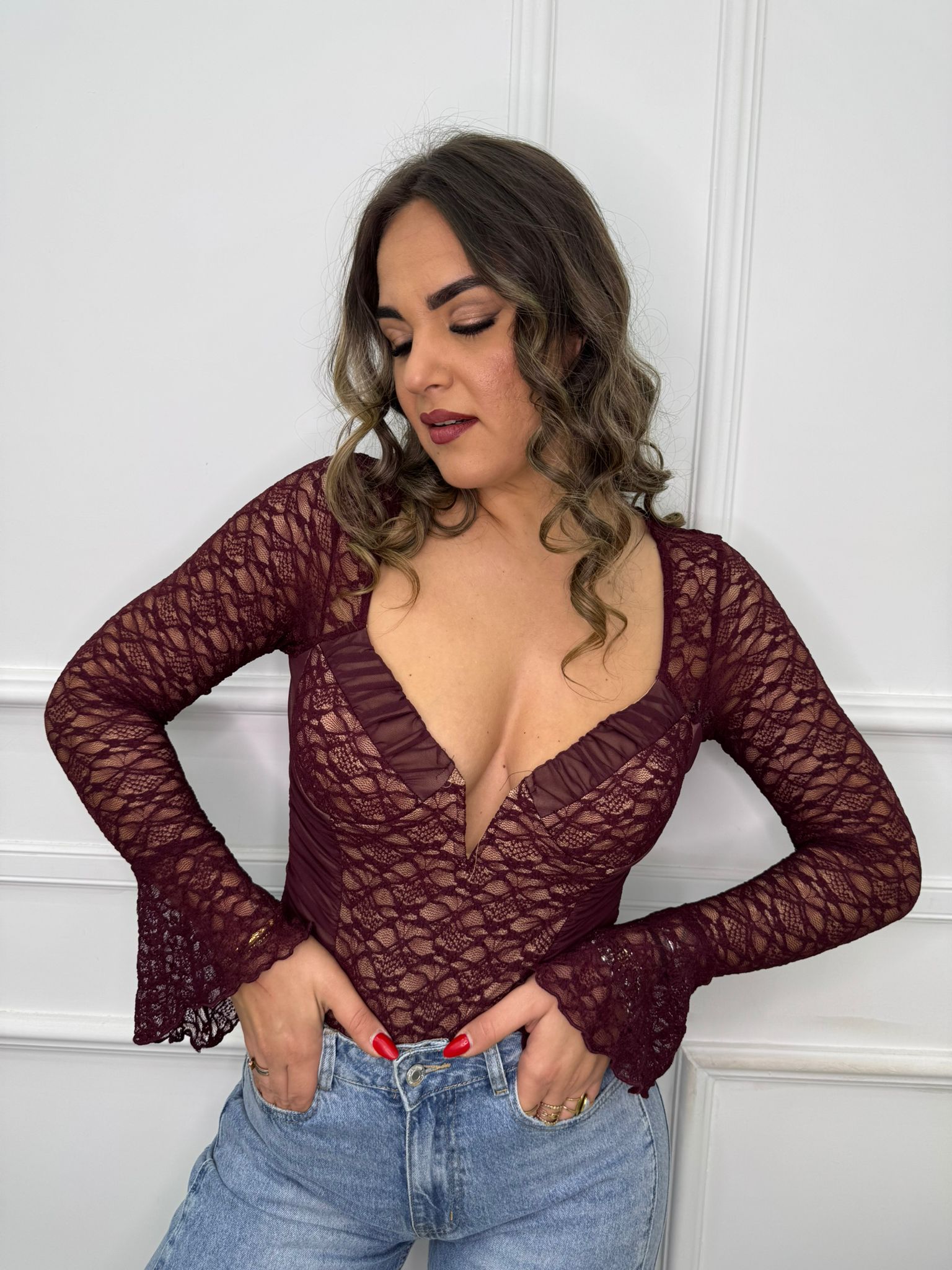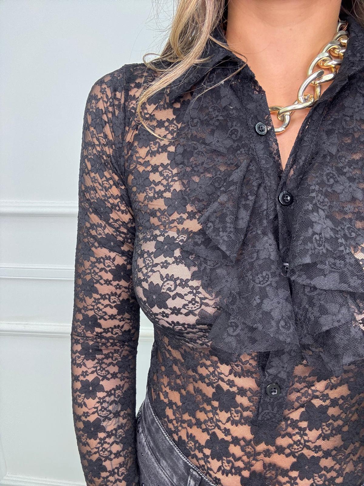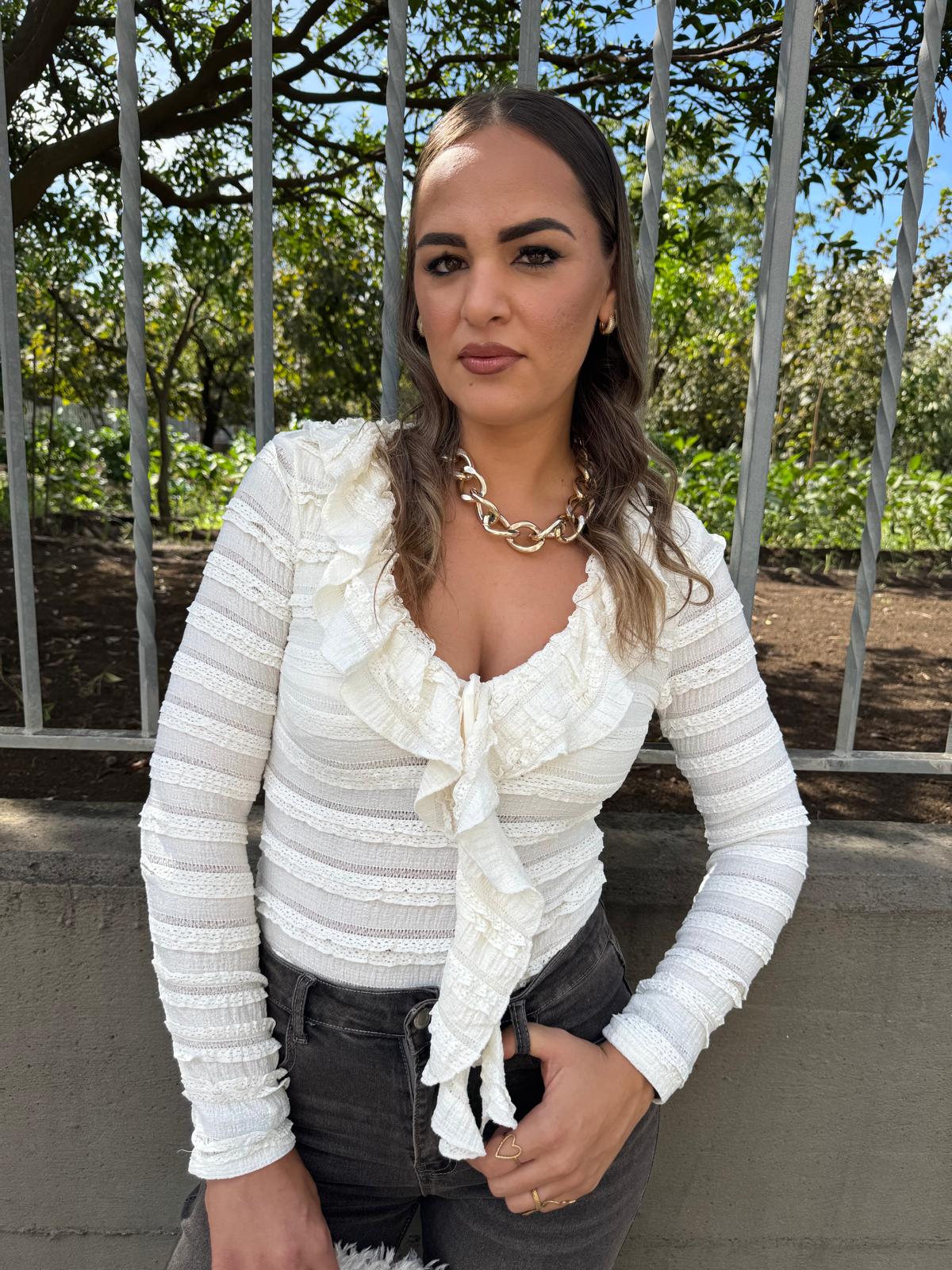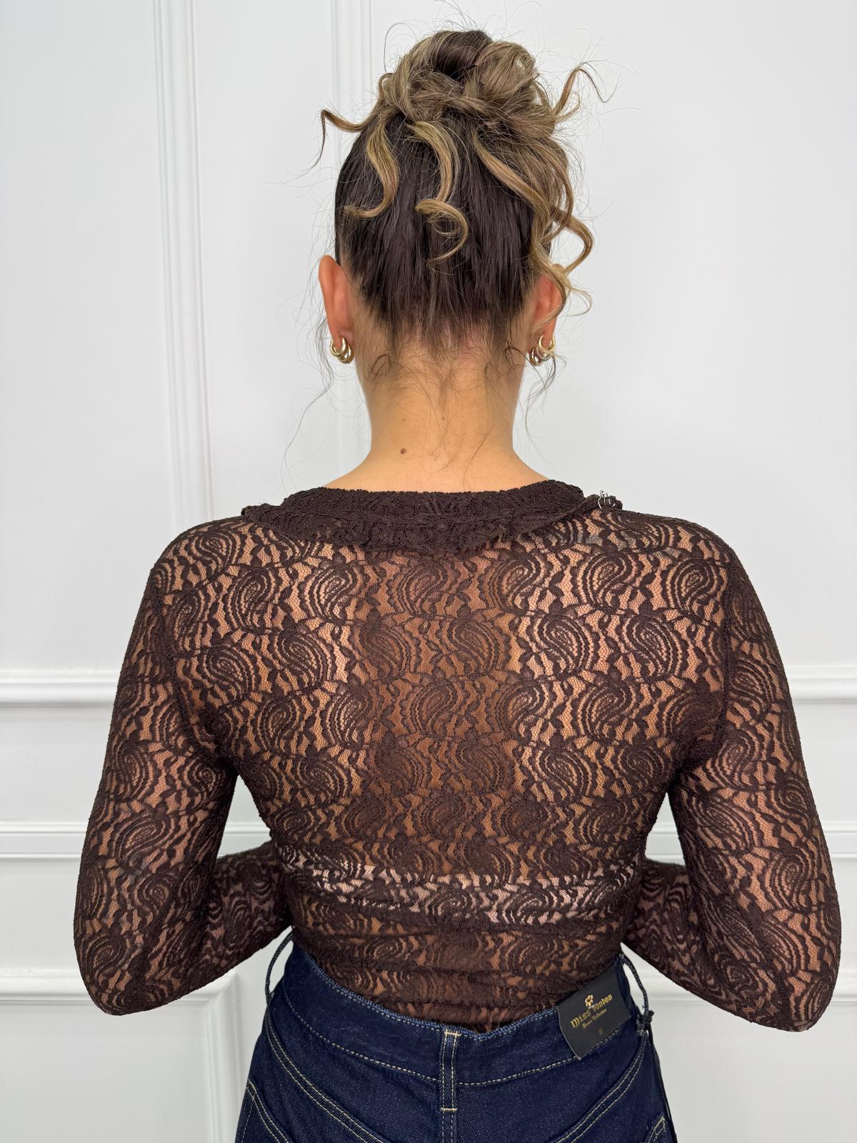 Body in pizzo con manica a campana