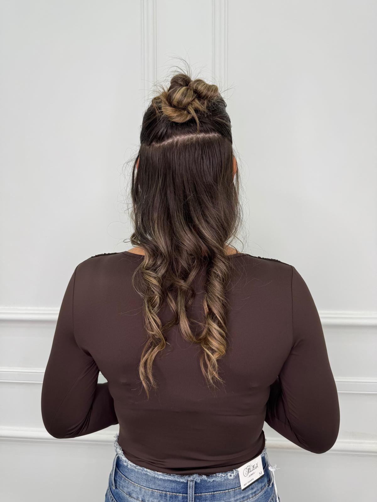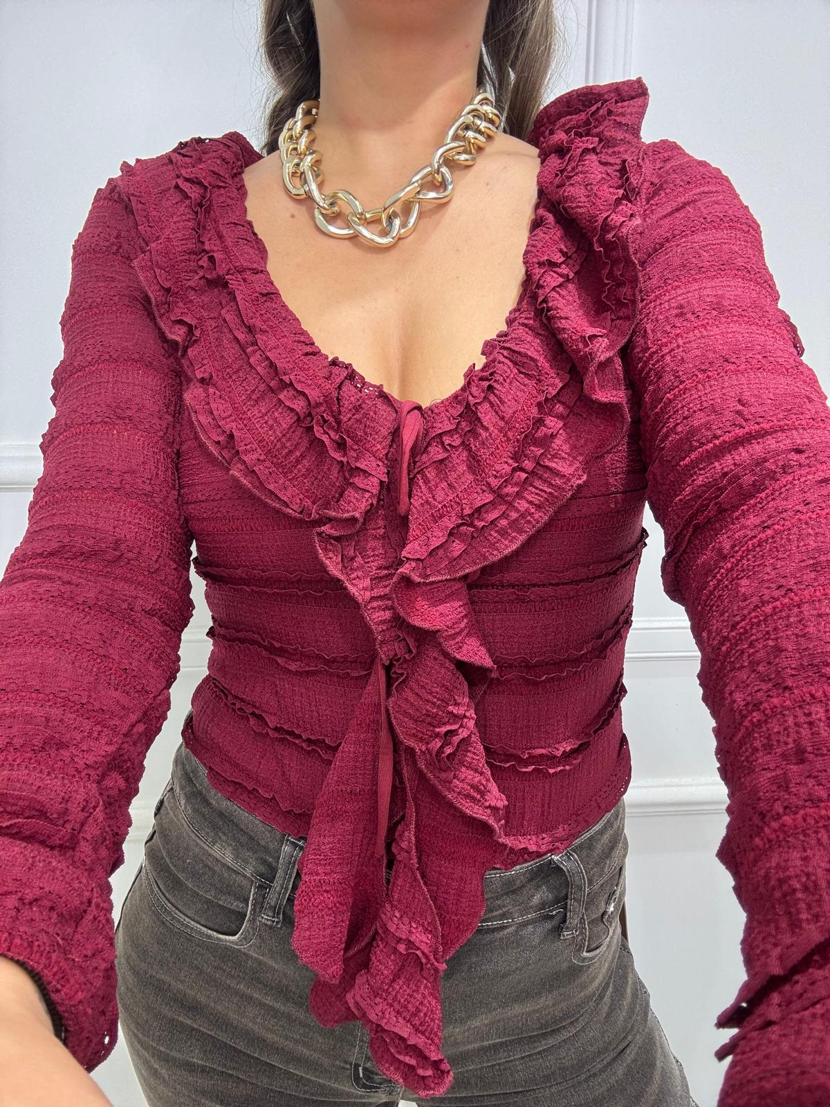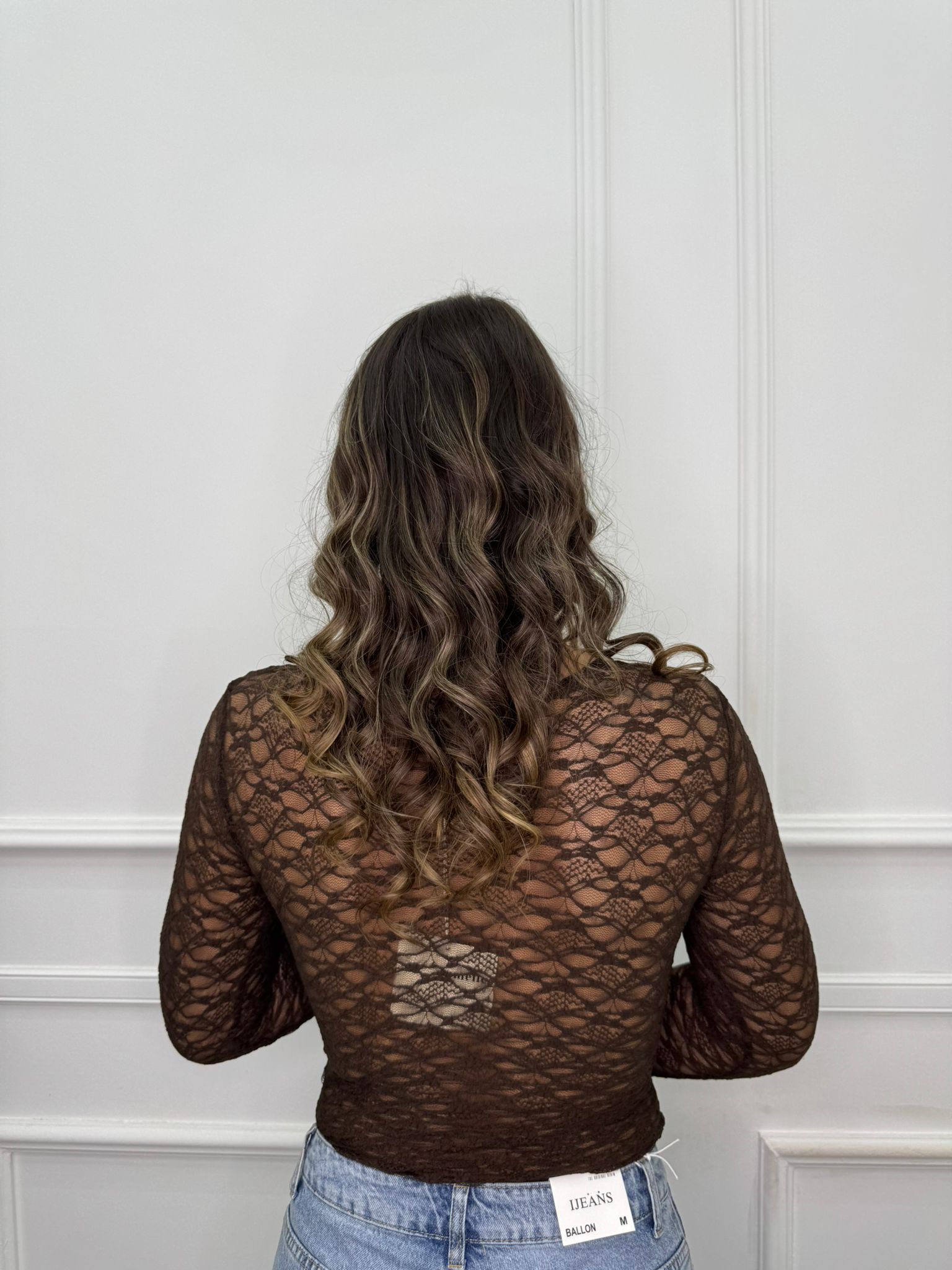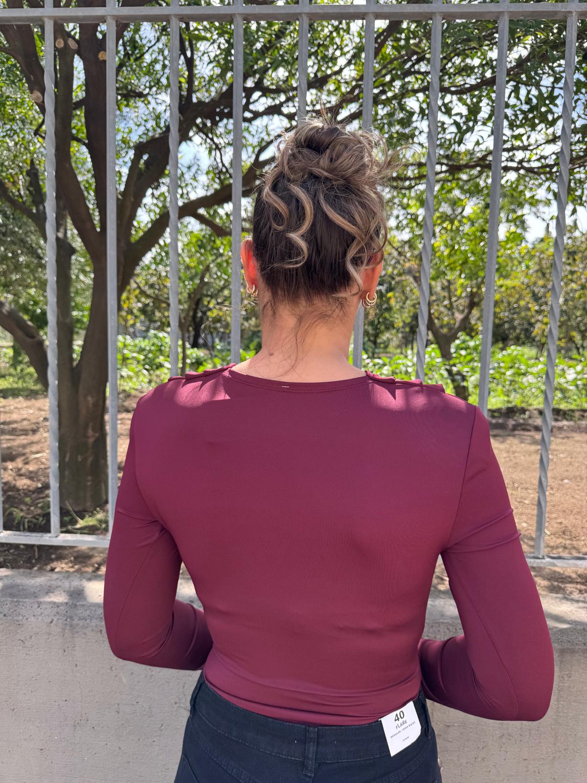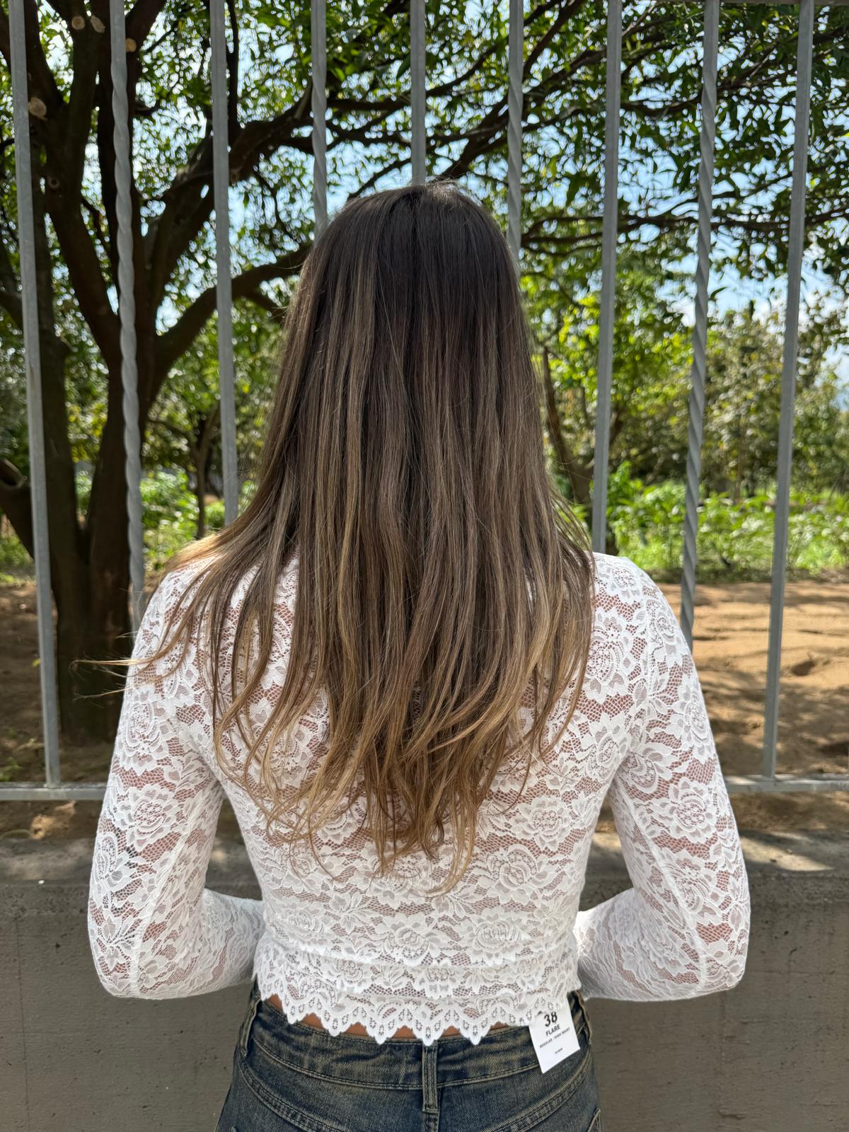 Body in pizzo con manica a campana