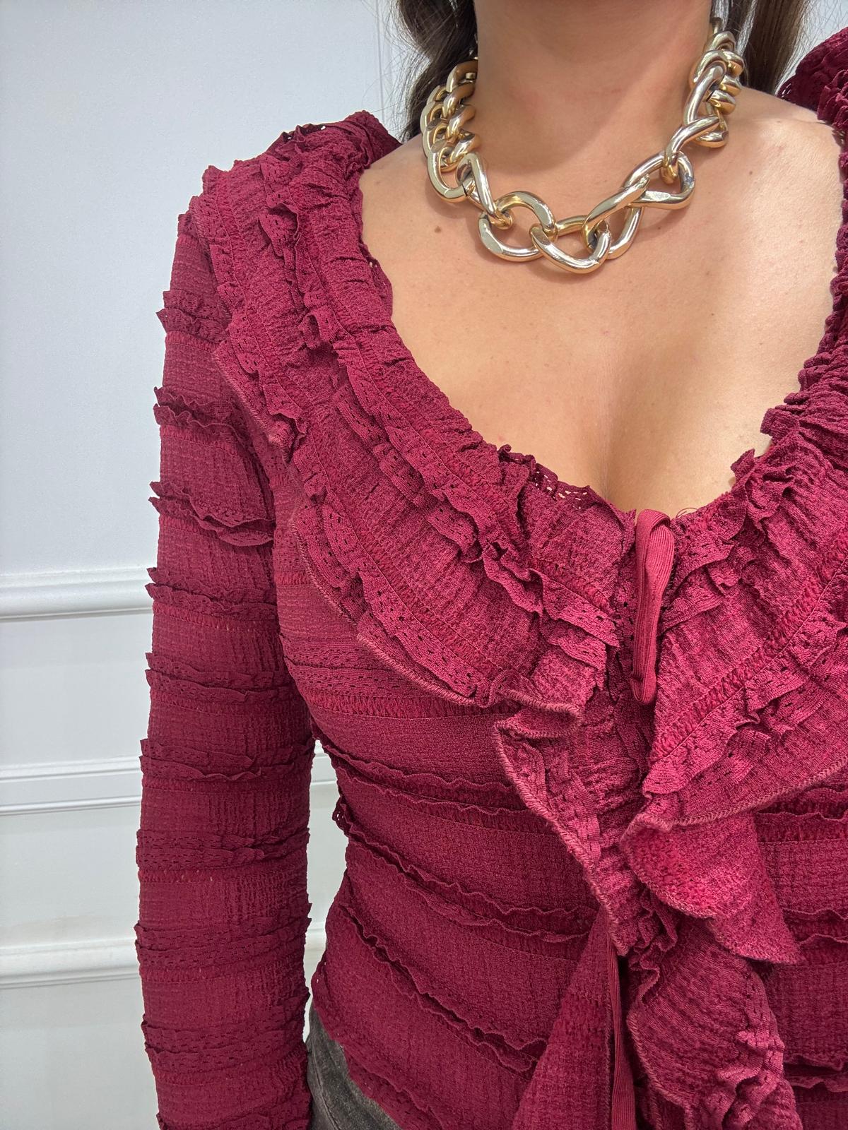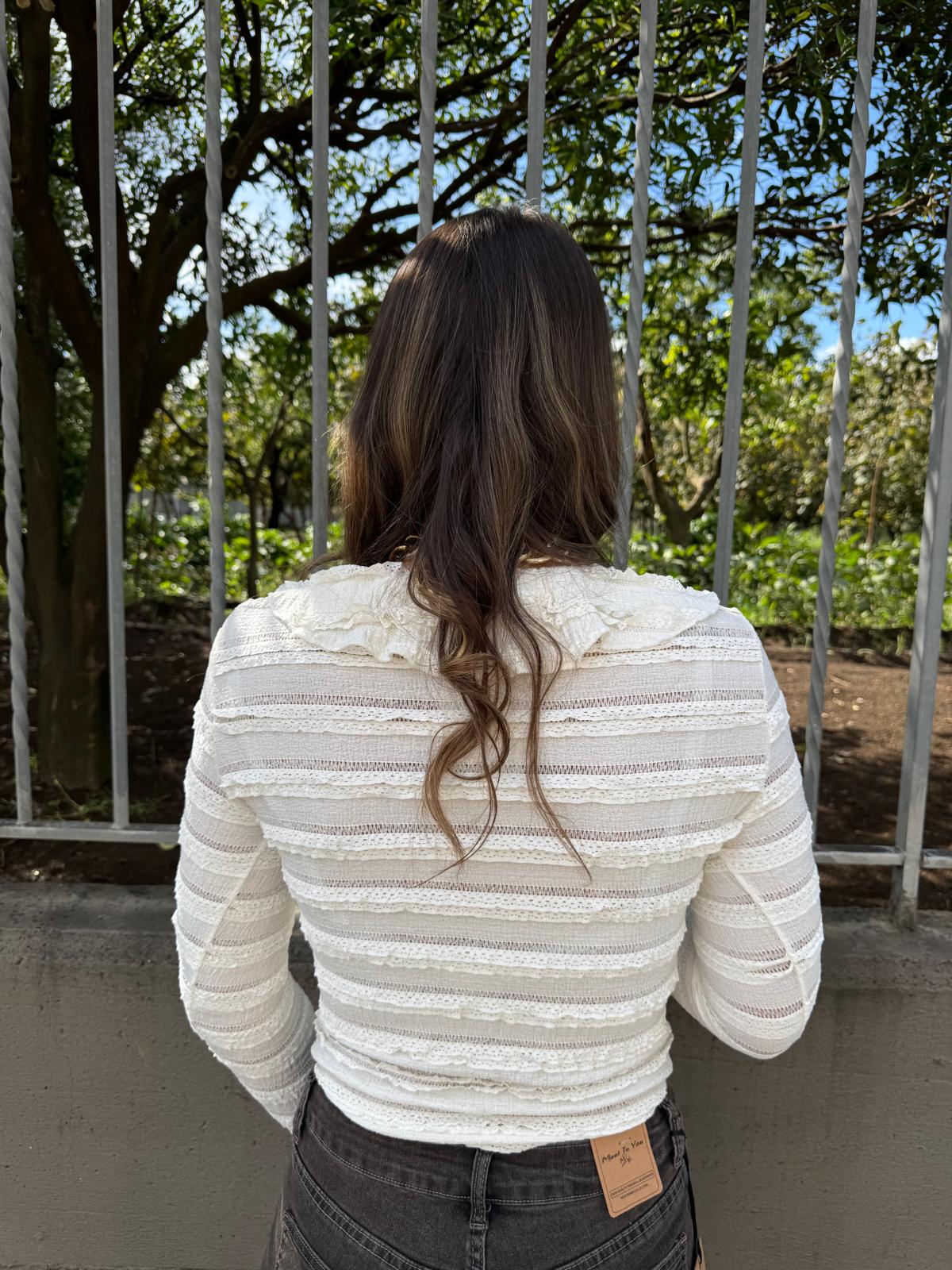 Maglia crop in pizzo con maniche a campana