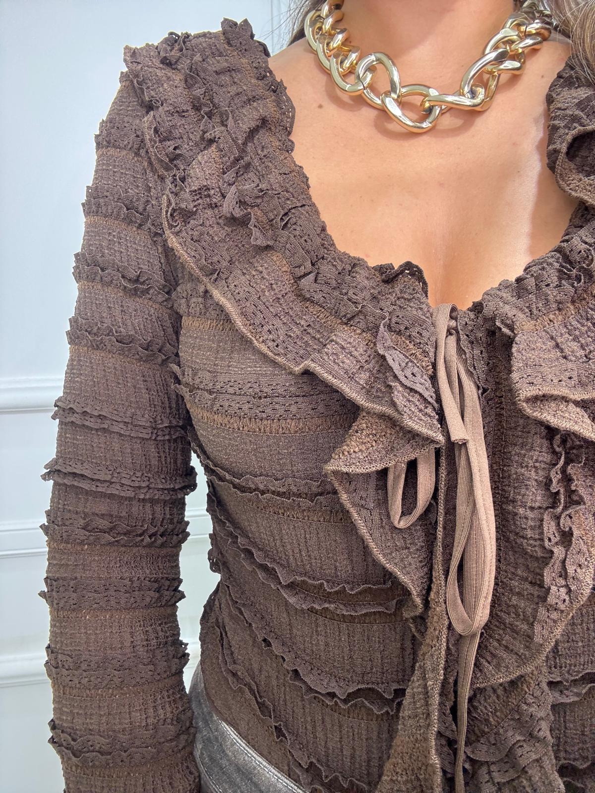 Maglia velata con brillantini e apertura