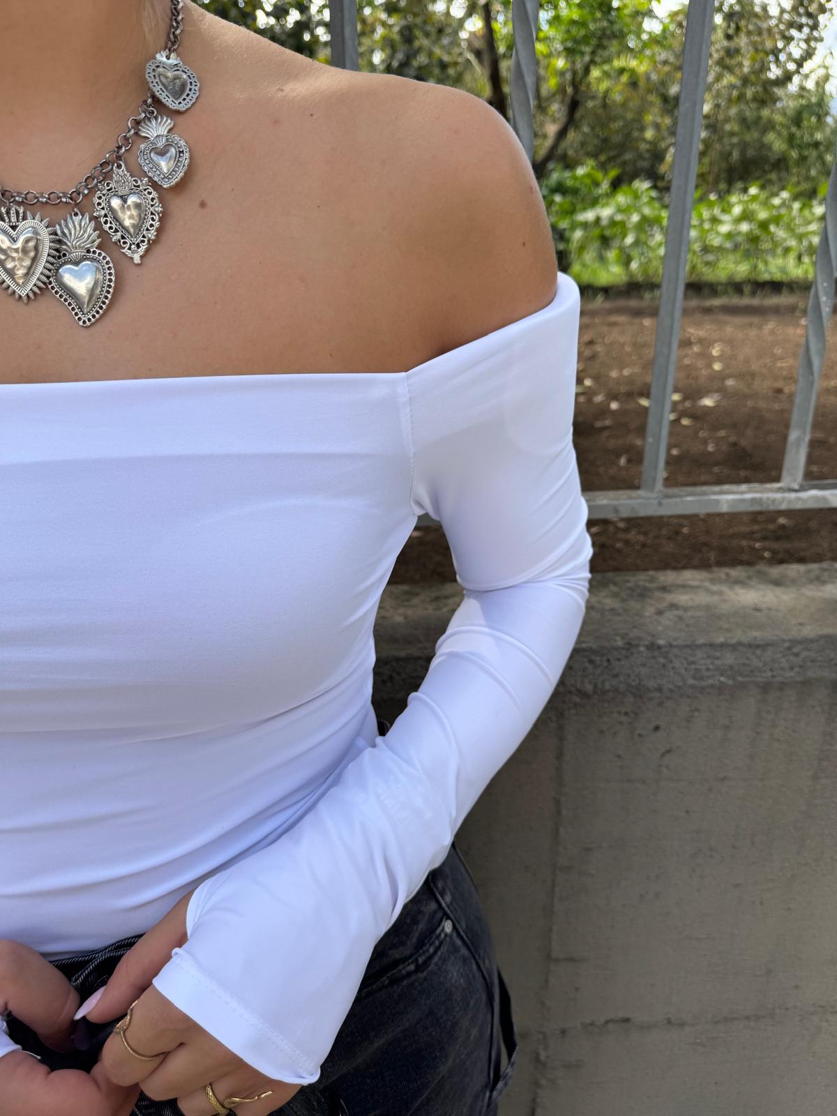 Body in lycra con scollo a barca e spalline