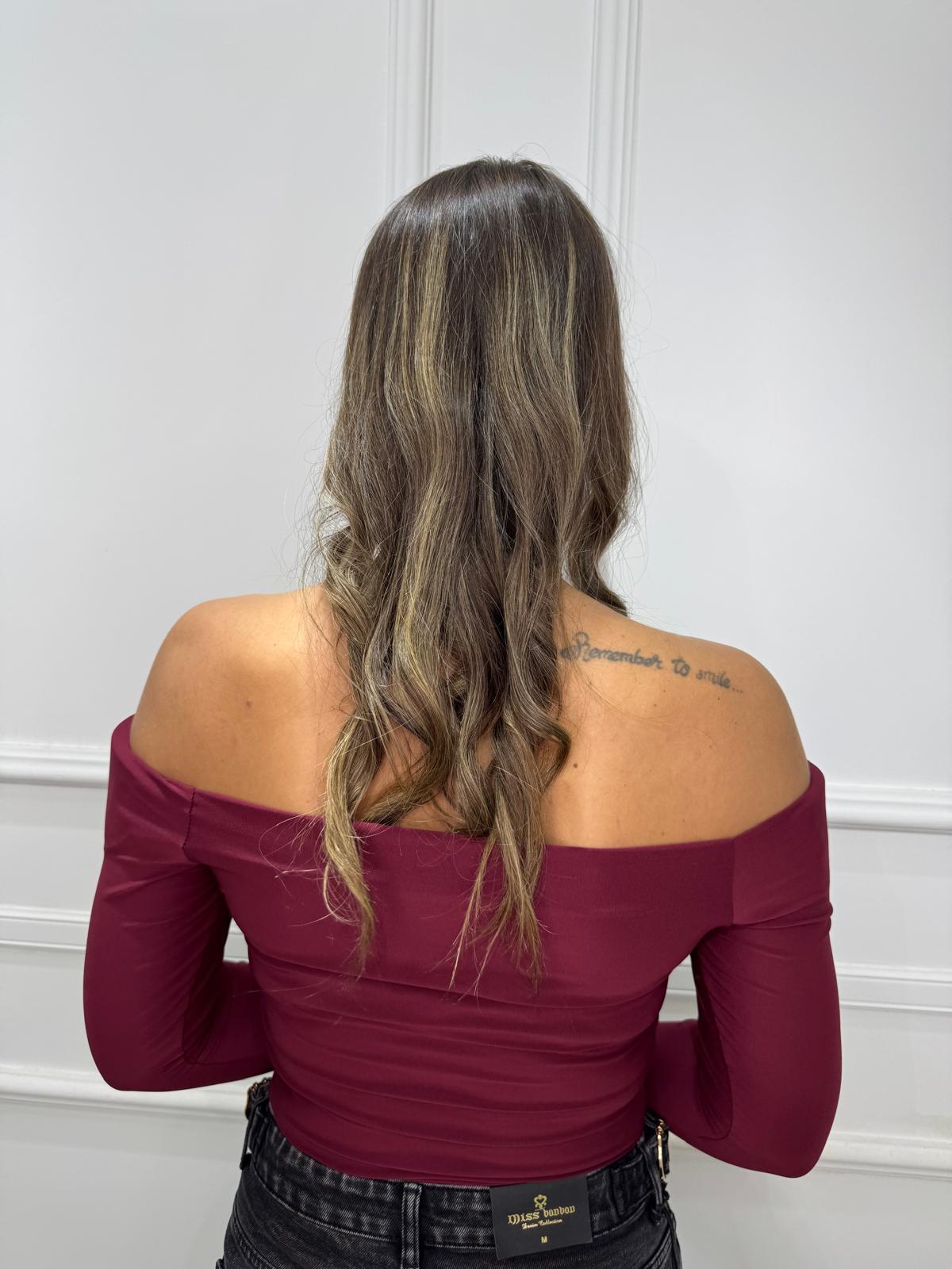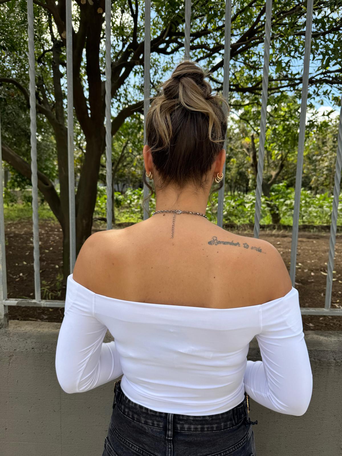 Maglia a body in cotone con scollo a barchetta