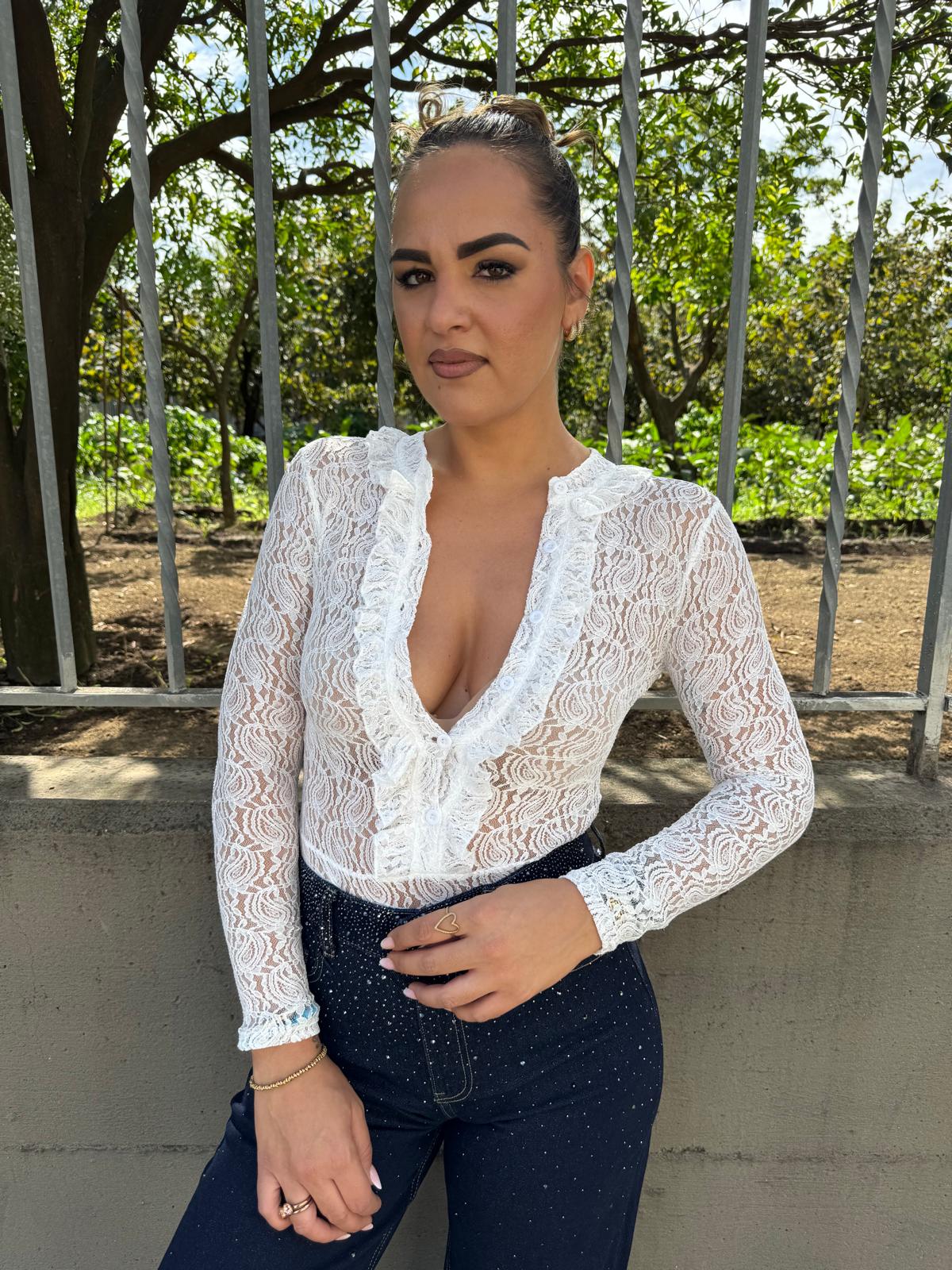 Body in pizzo con bottoni