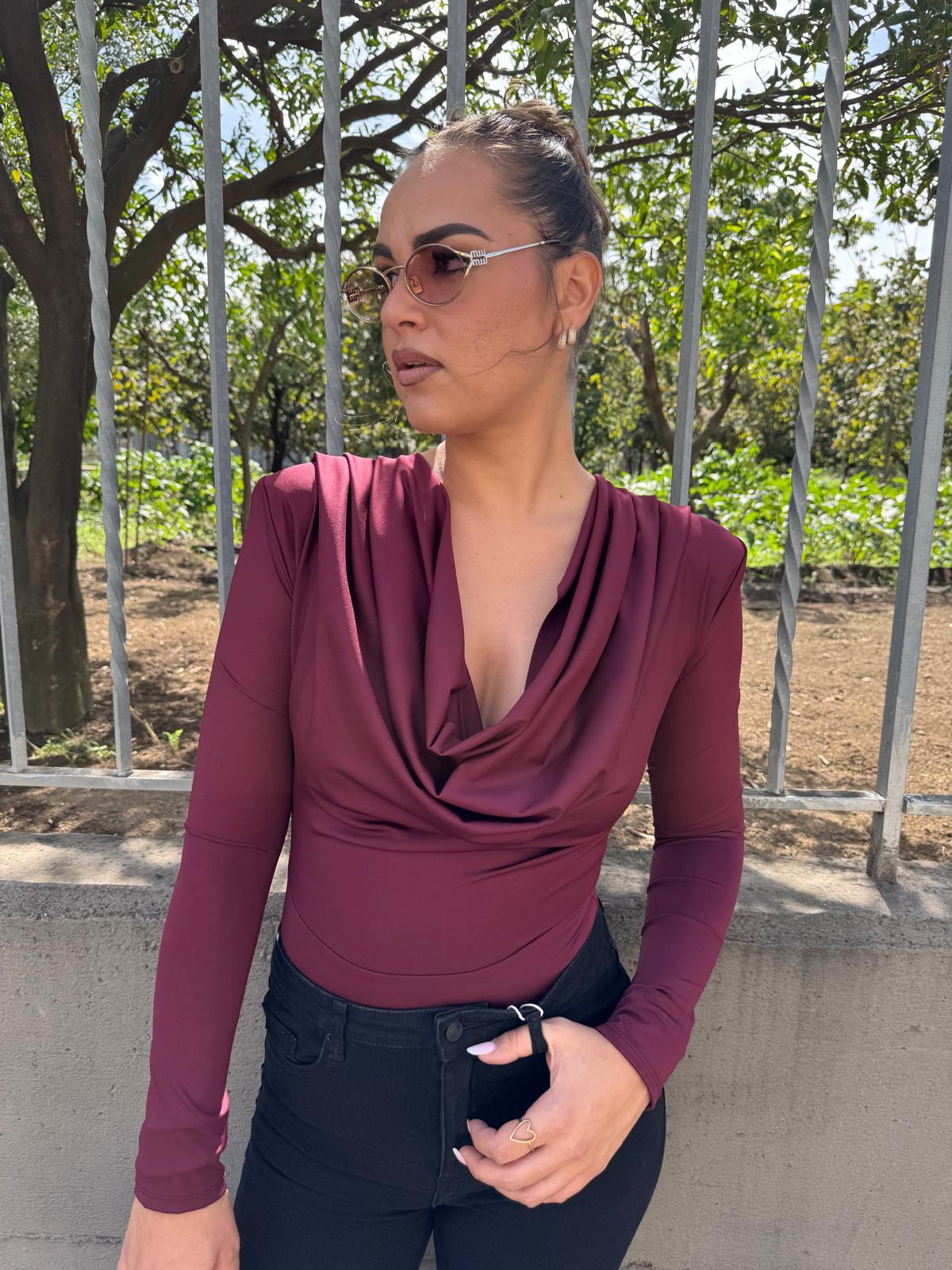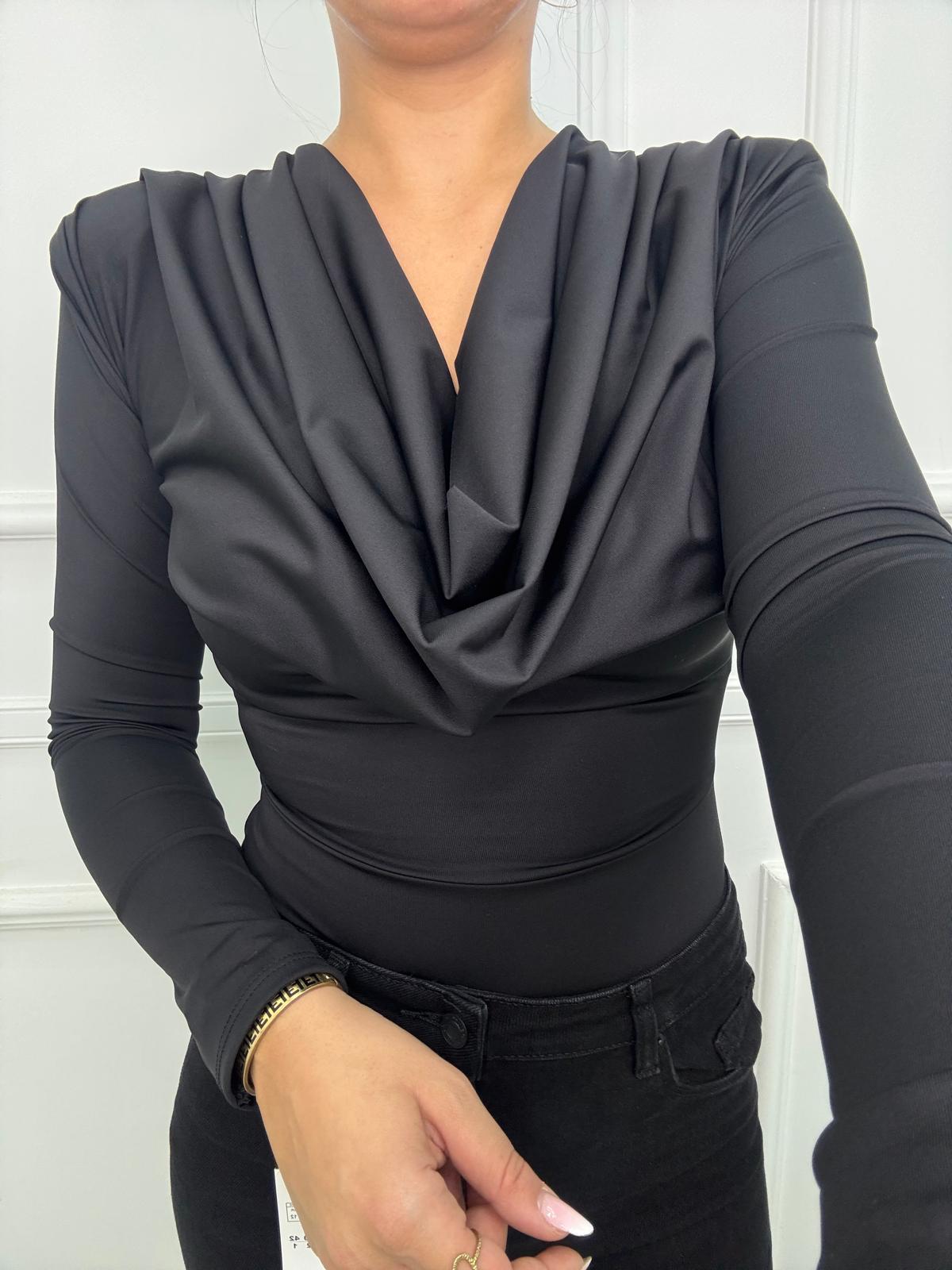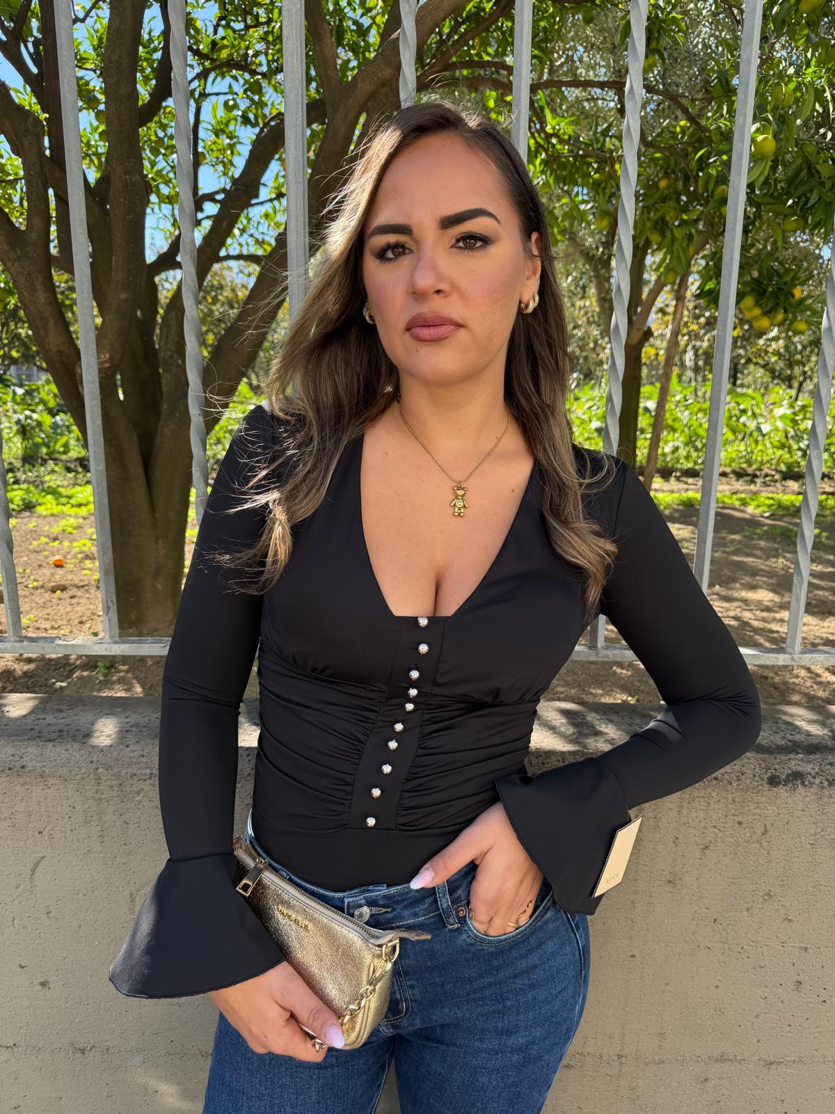 Body drappegiato con bottoni oro