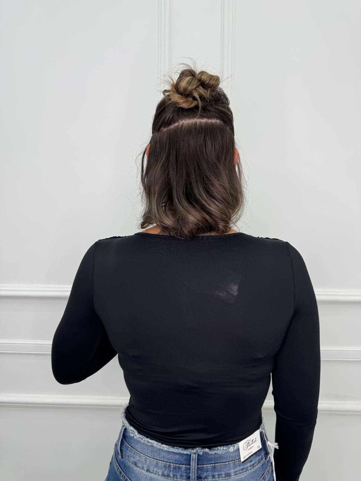 Body scollo a V velato con brillantini