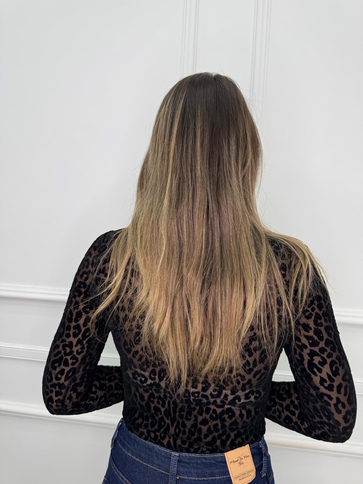Body animalier con inserti velati e in velluto