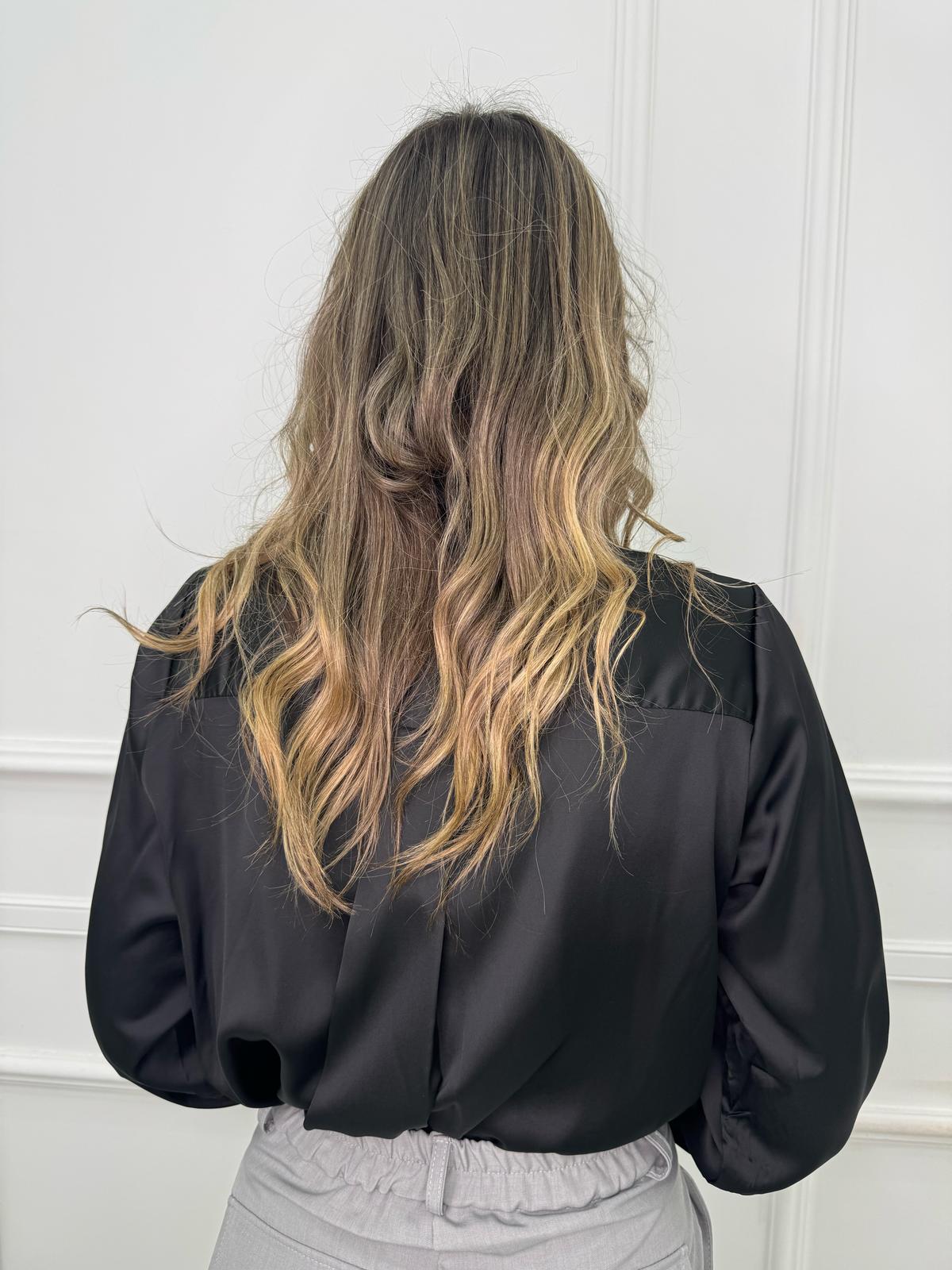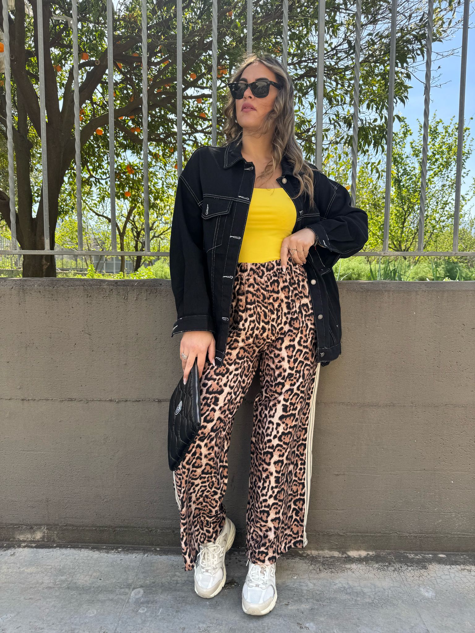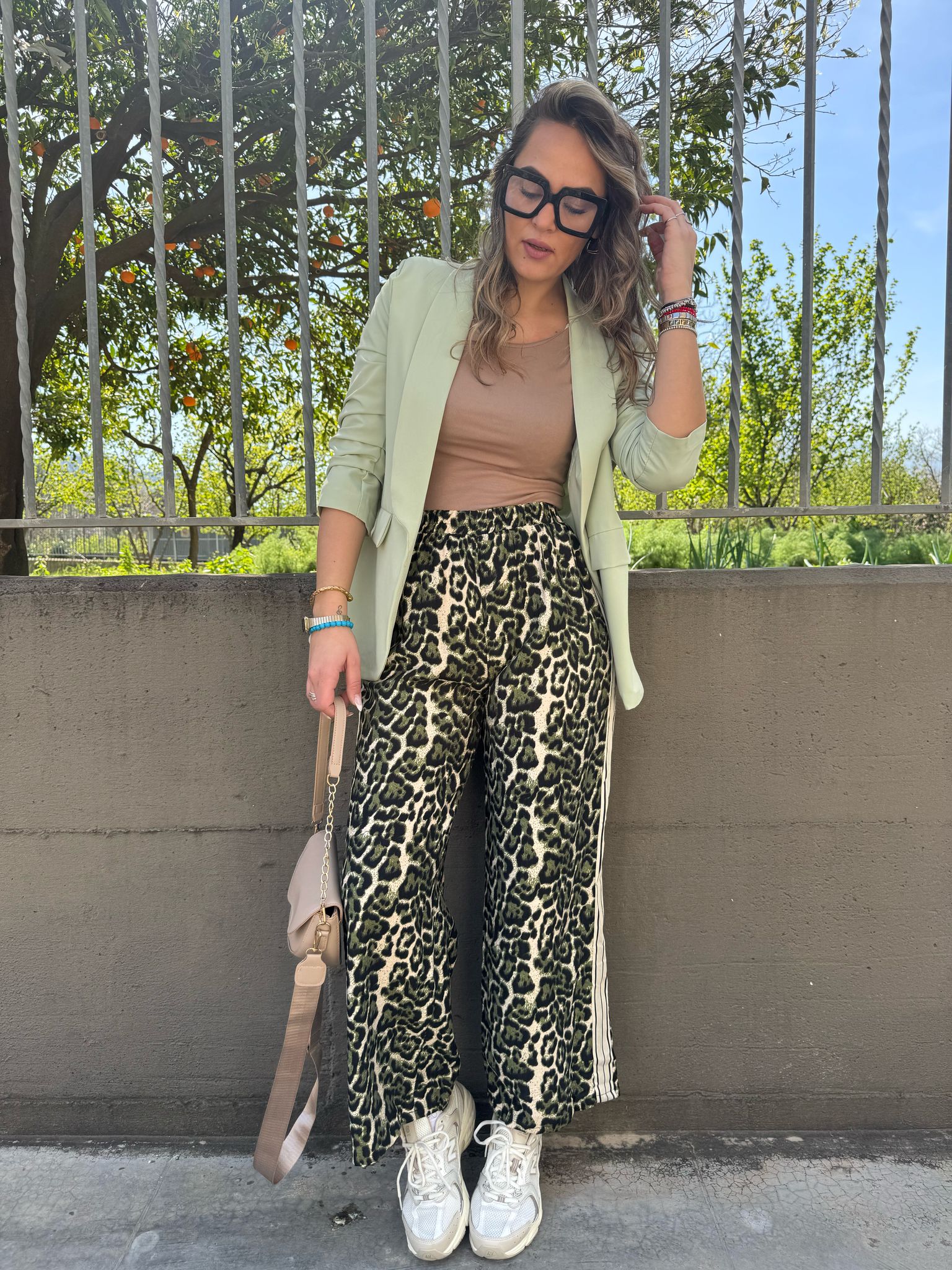 Coordinato 2 pezzi effetto lino con pantalone palazzo e top crop