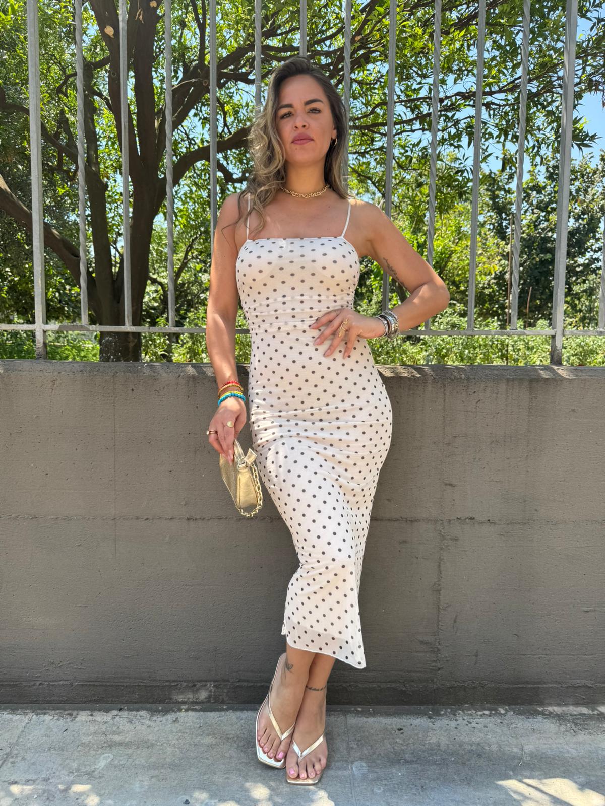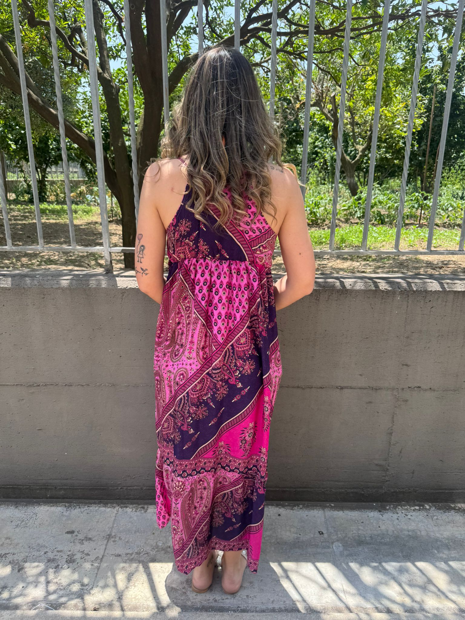 Vestito fantasia pois con spacco e laccetti alle spalle