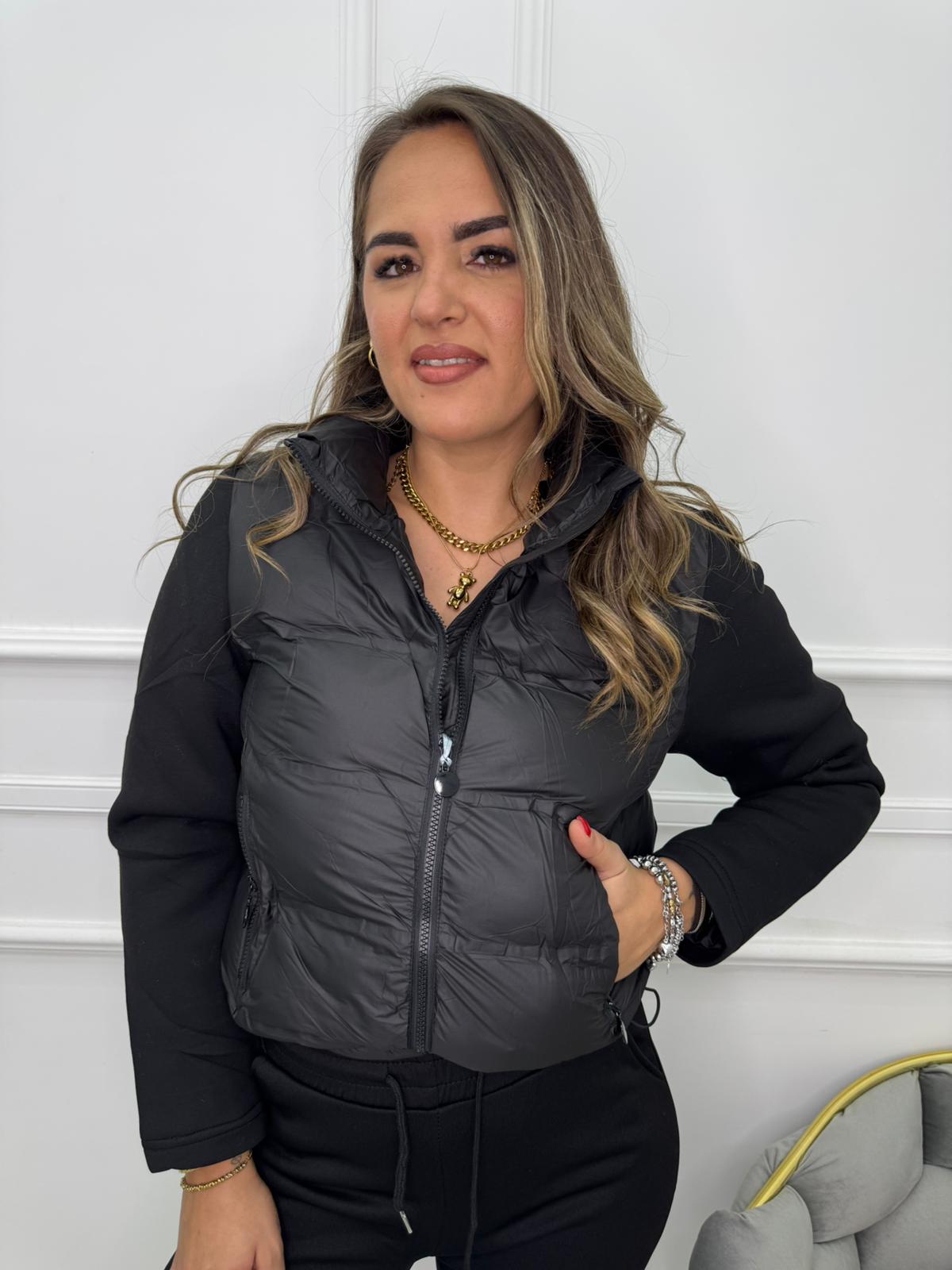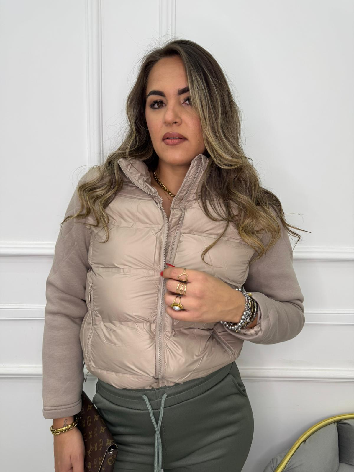 Giubbino tinta unita con maniche in tessuto