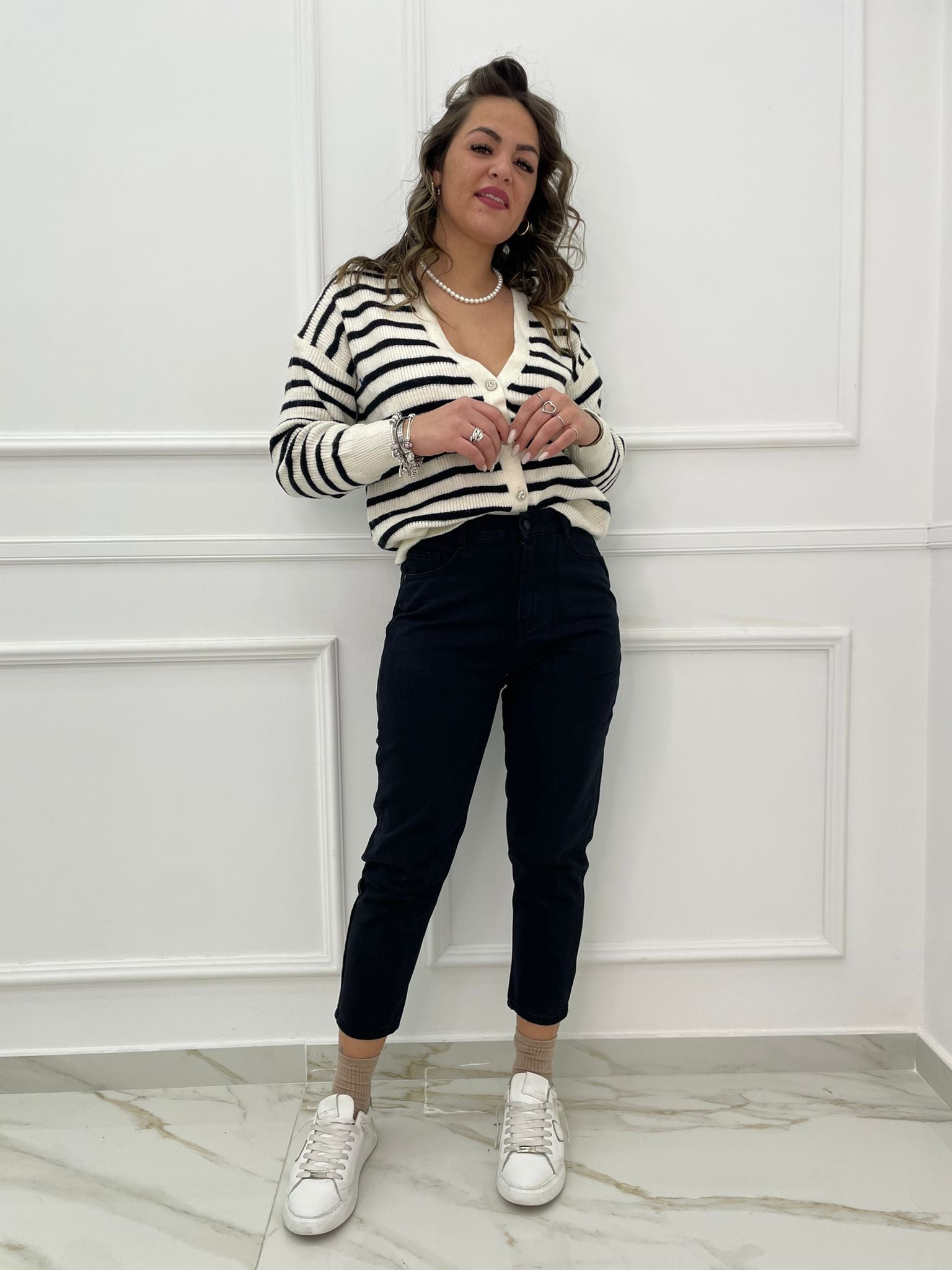 - Veste leggermente stretto. La modella ha indossato una taglia in più rispetto a quella che indossa abitualmente