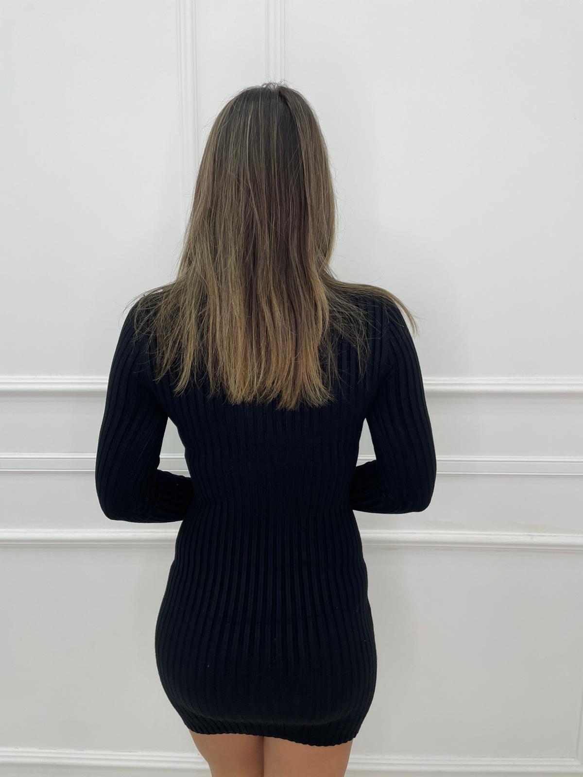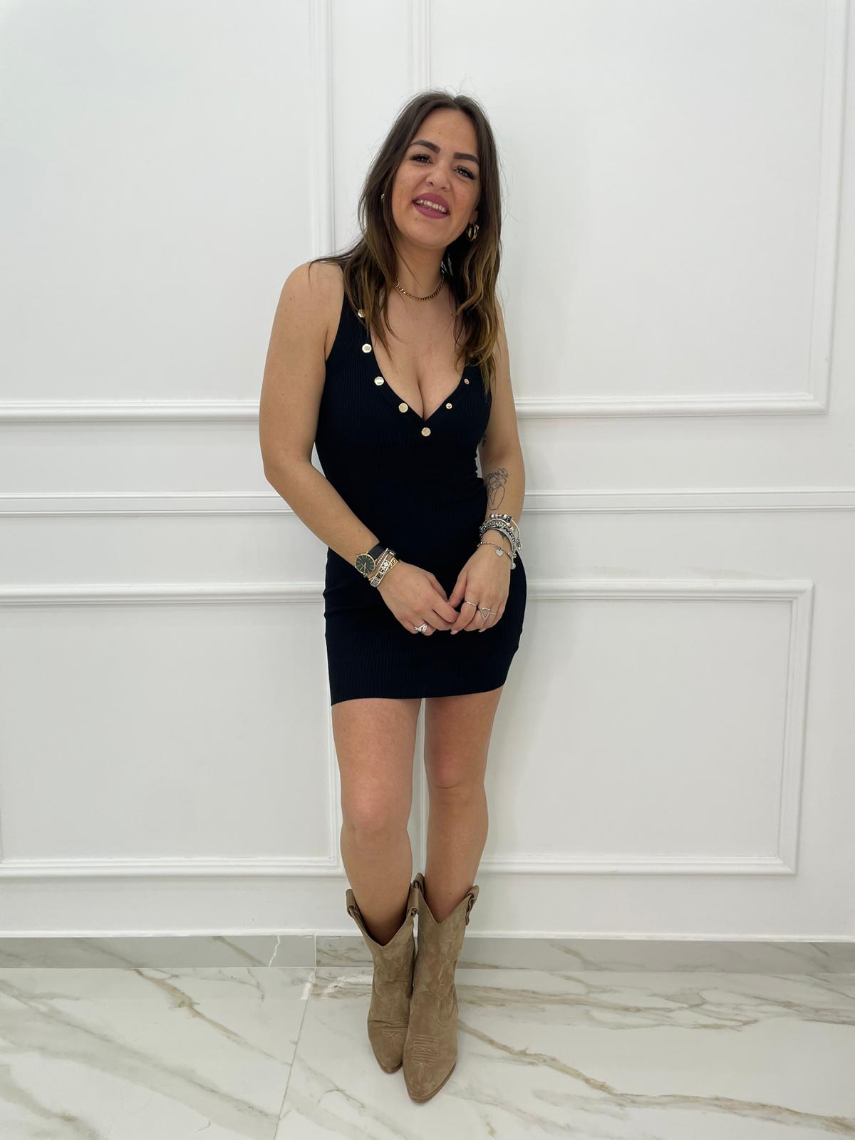 Vestitino in filo scollo a V con bottoni oro