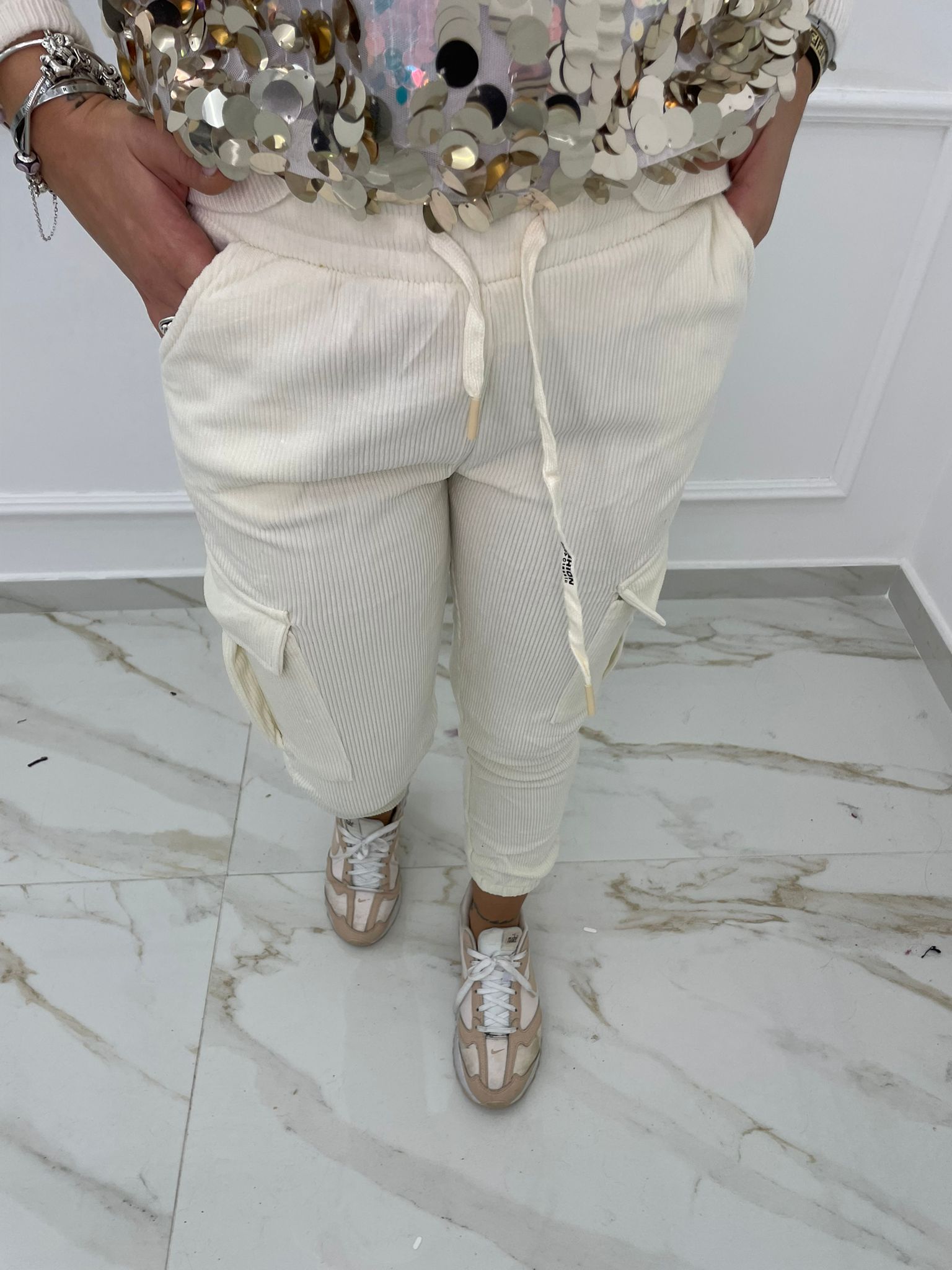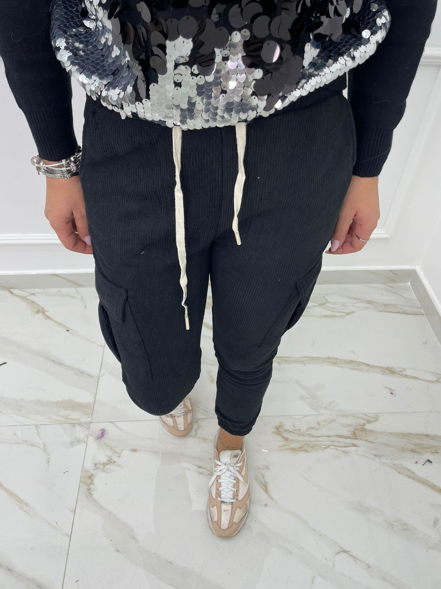 Pantalone in velluto modello cargo