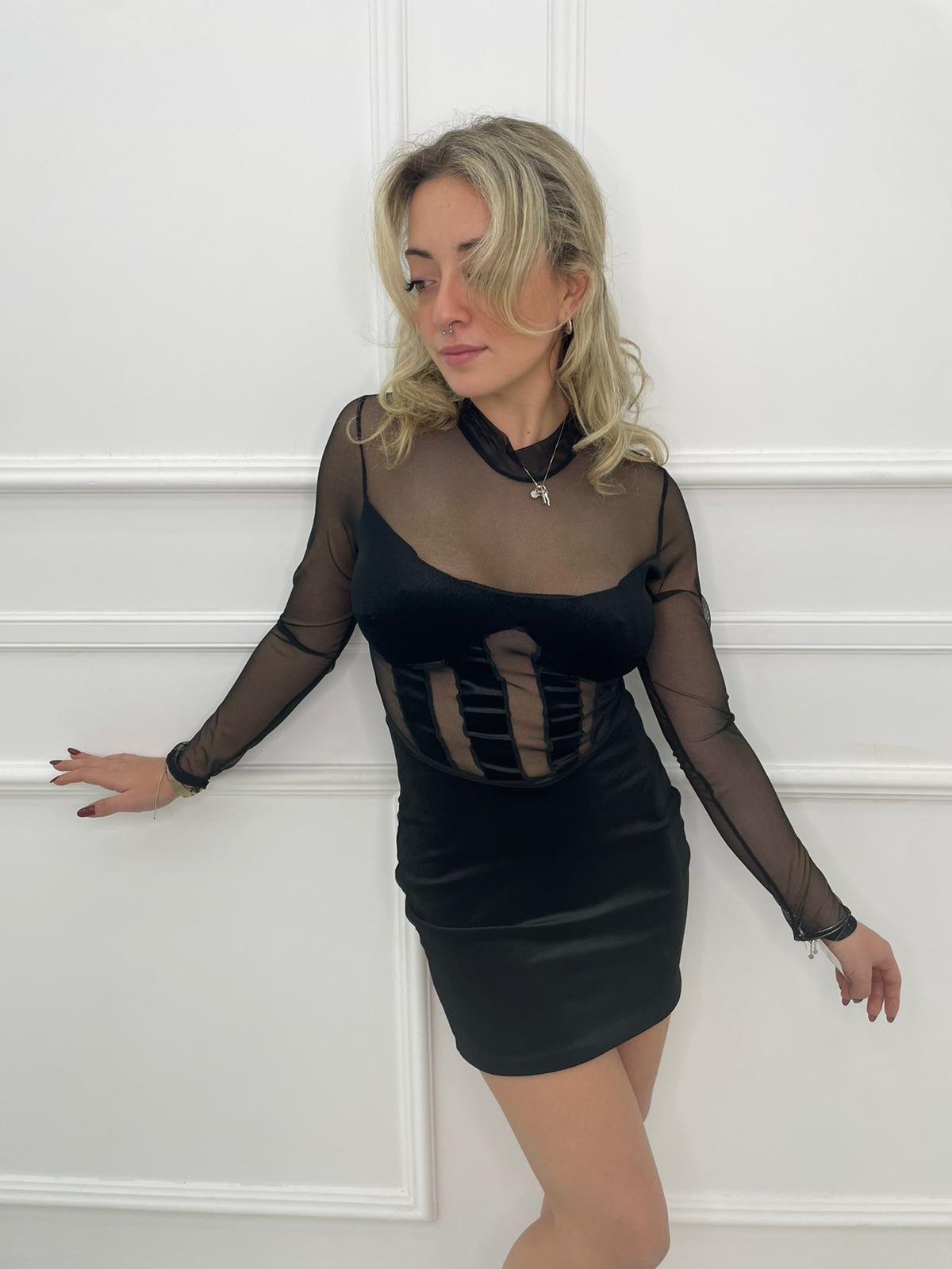 Vestitino velato con inserti in velluto