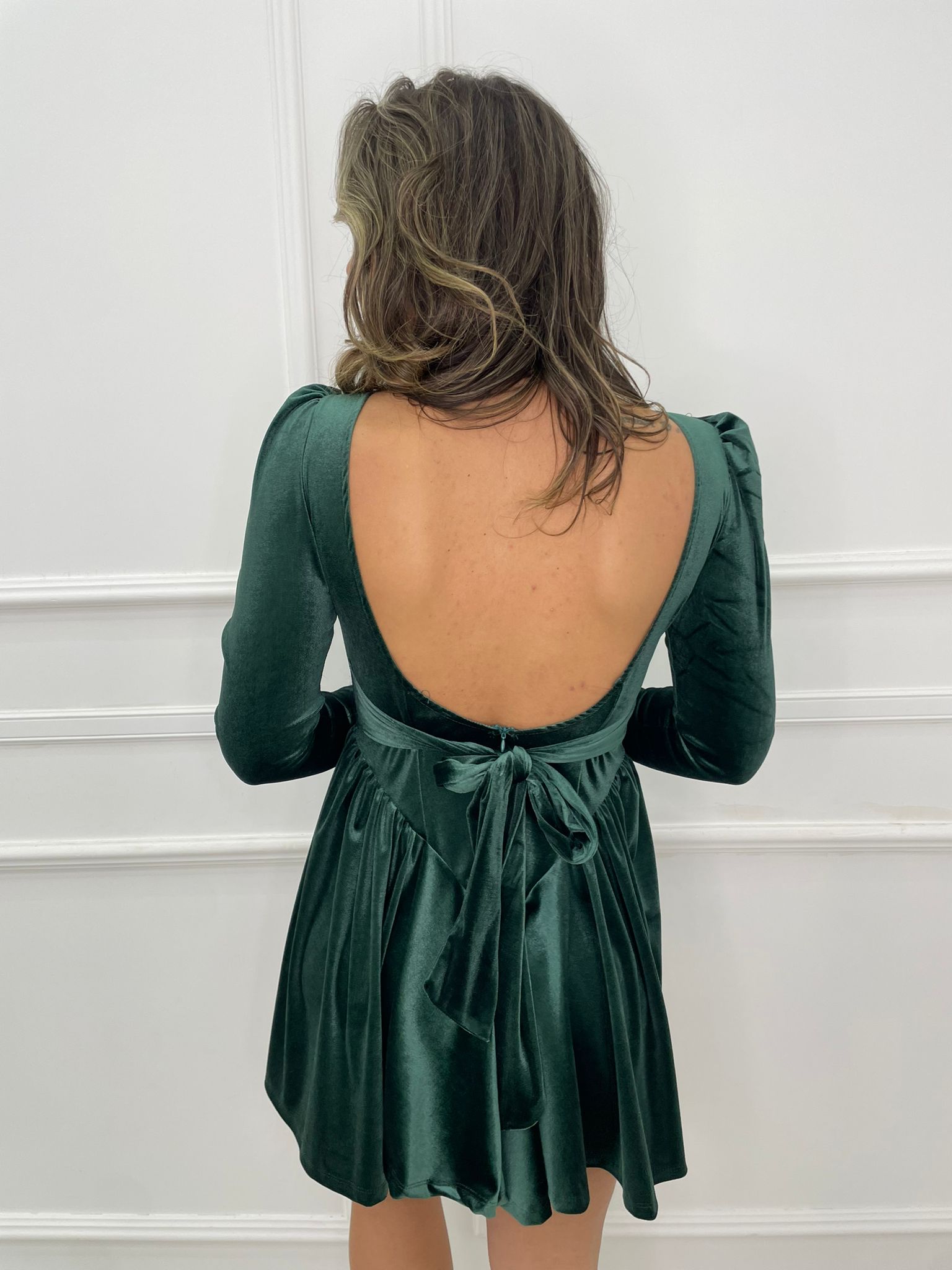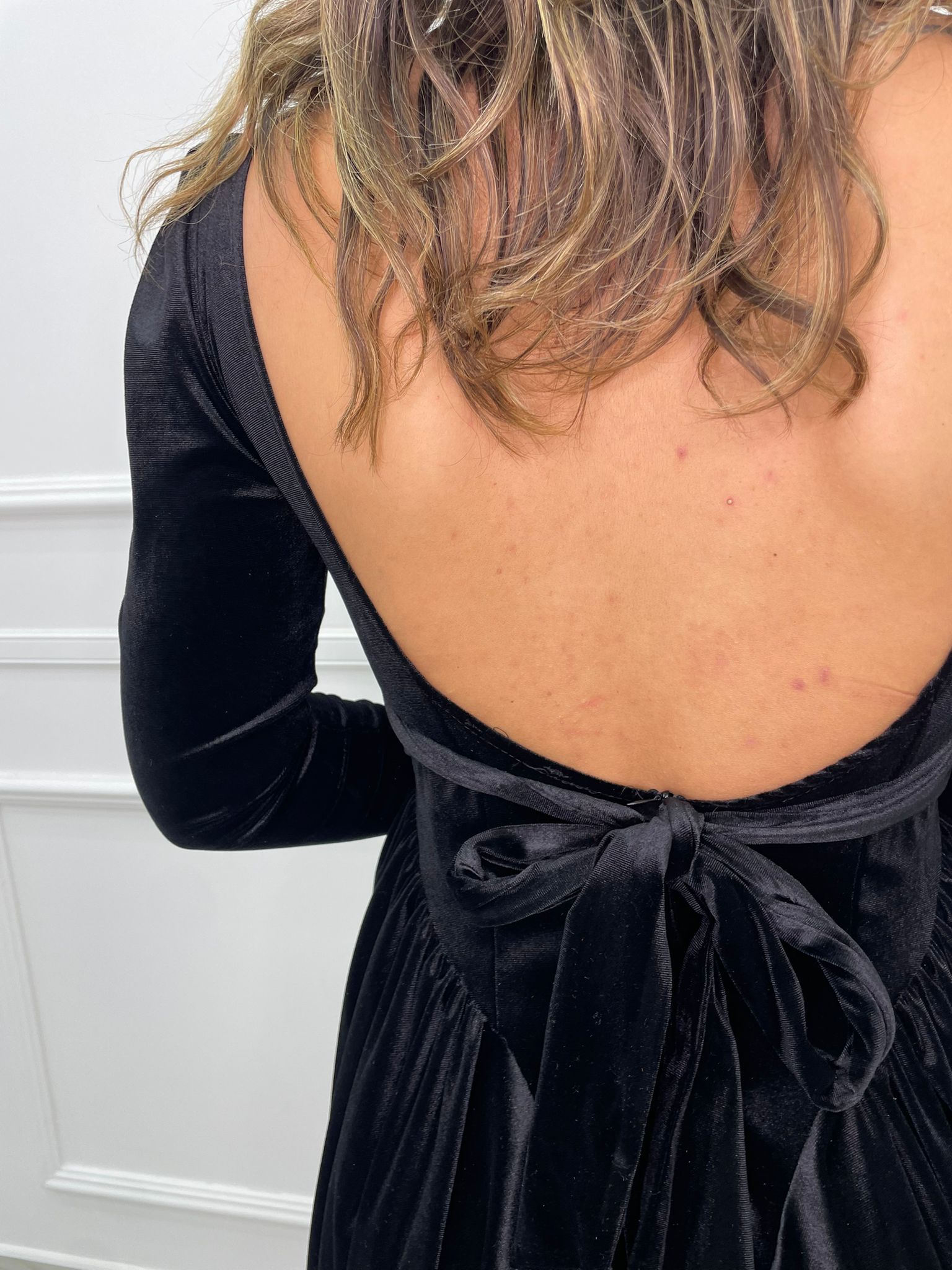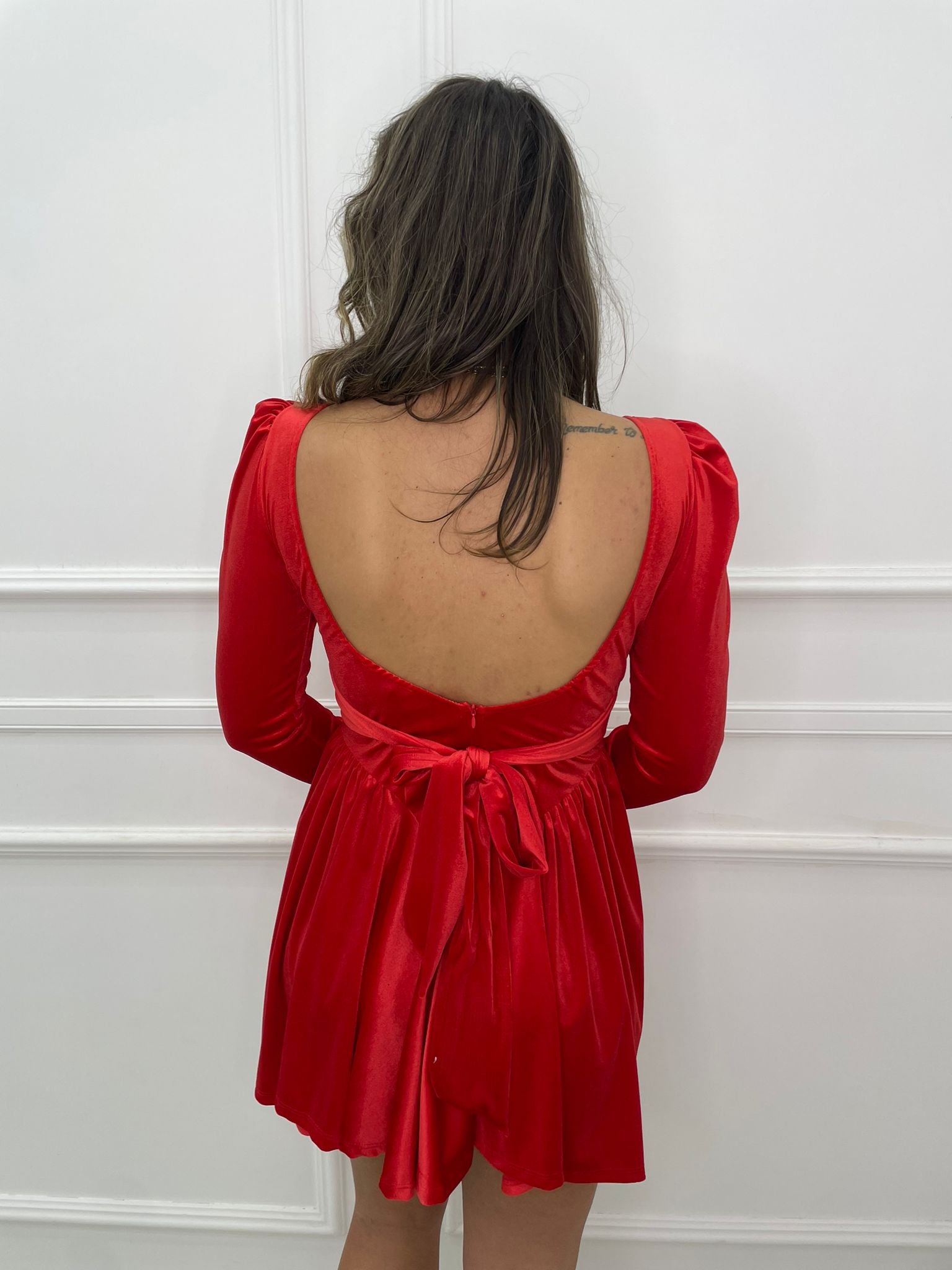 Vestitino in velluto scampanato con fiocco in vita