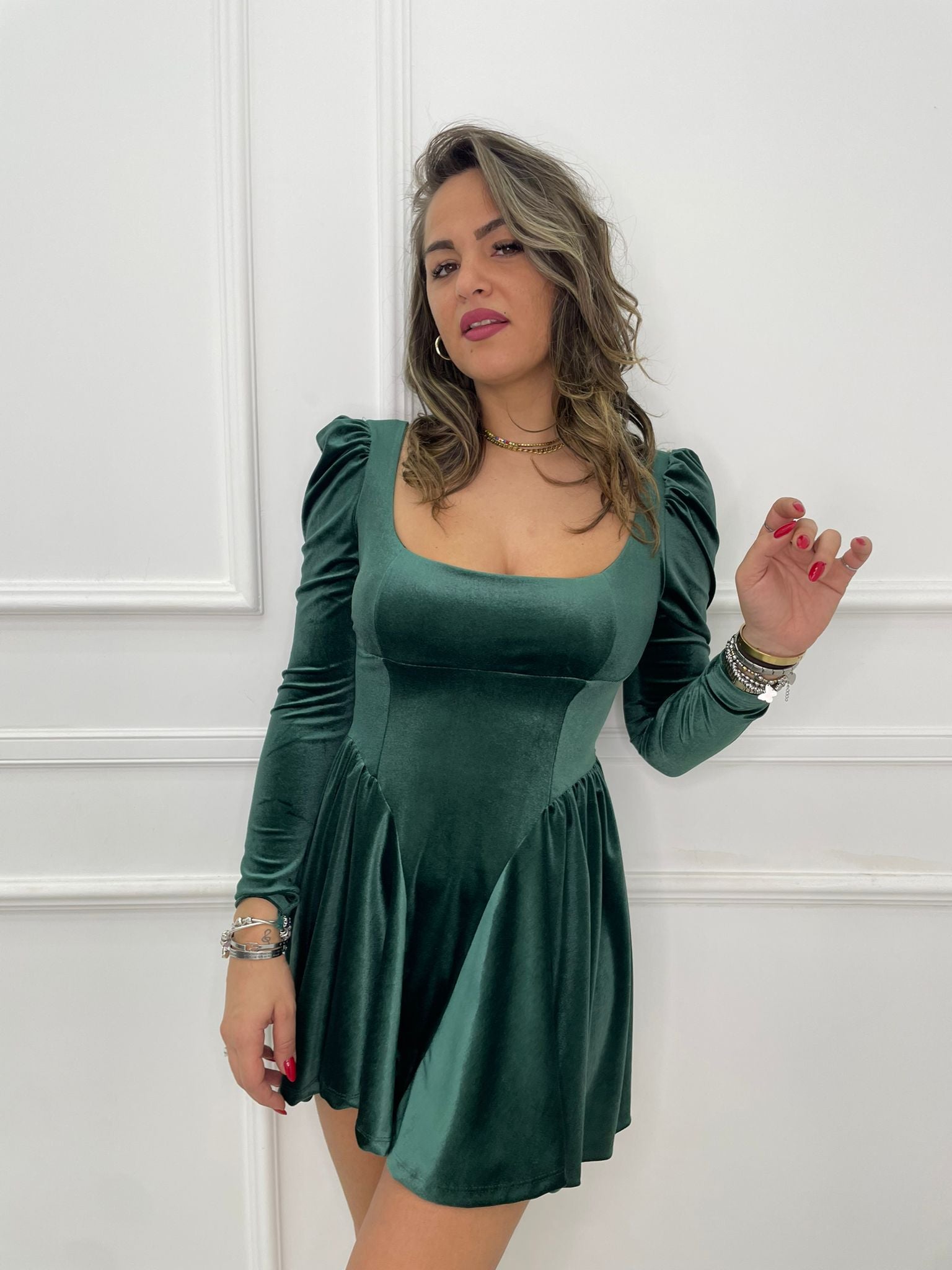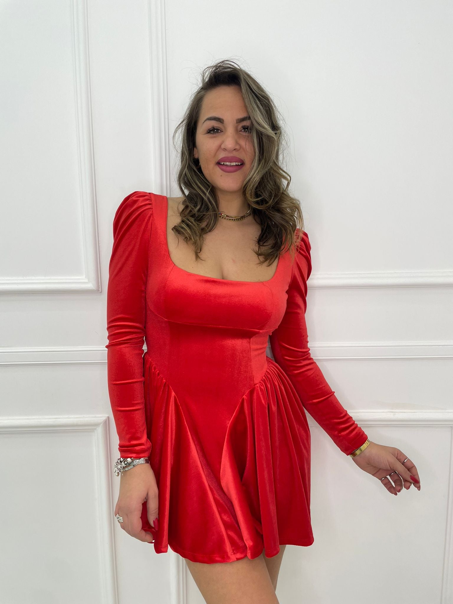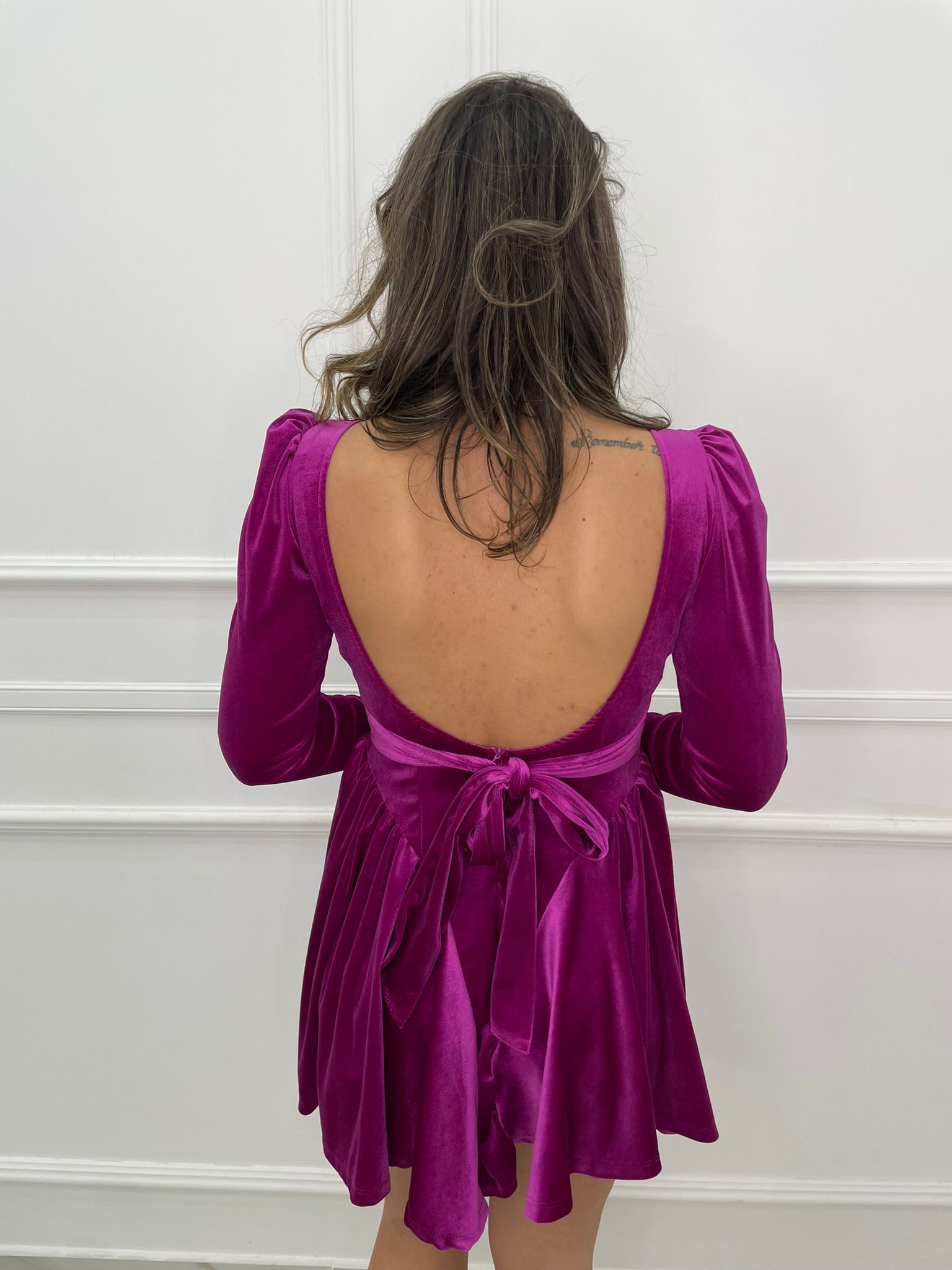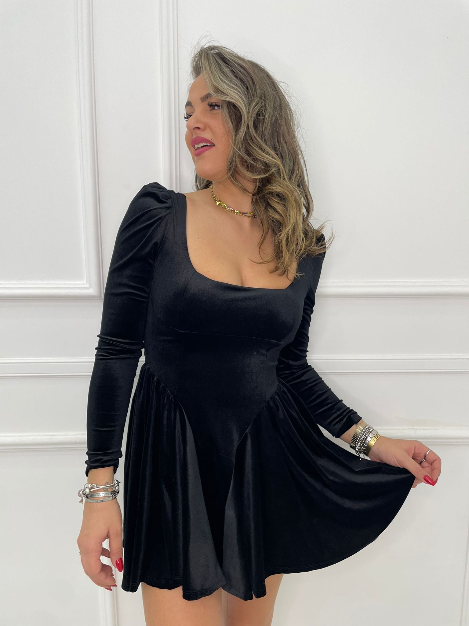 Vestitino in velluto scampanato con fiocco in vita