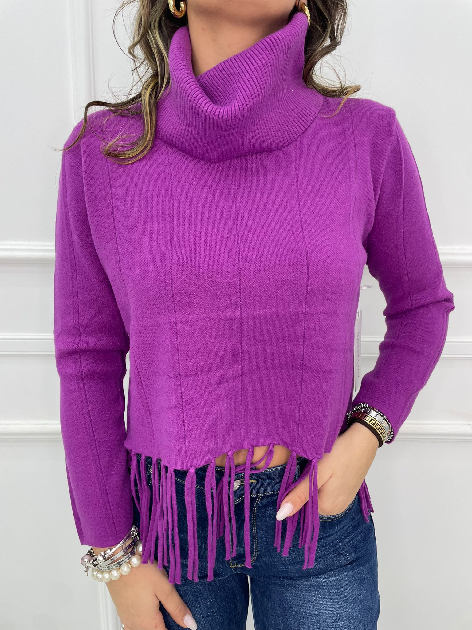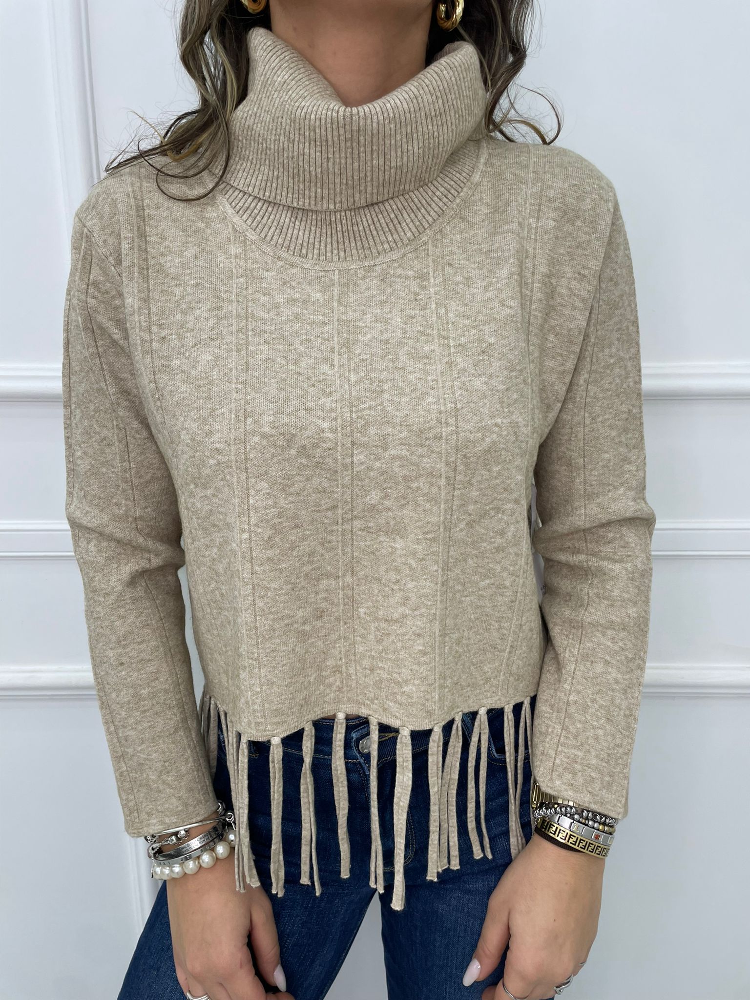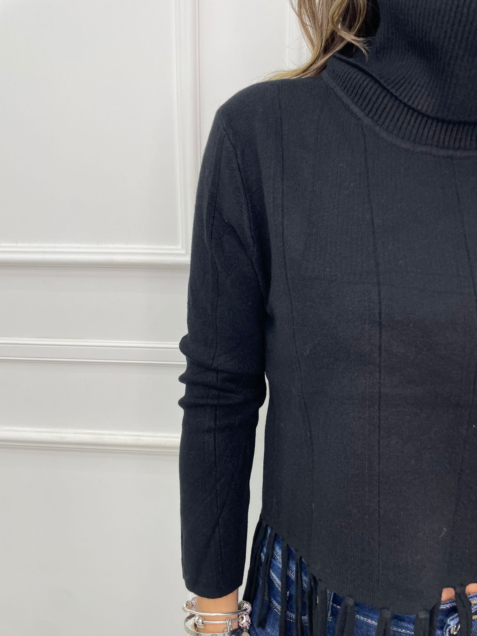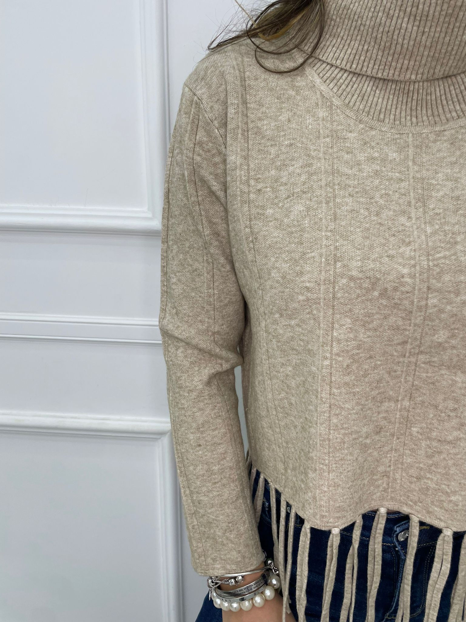 Maglione collo alto con frange sotto