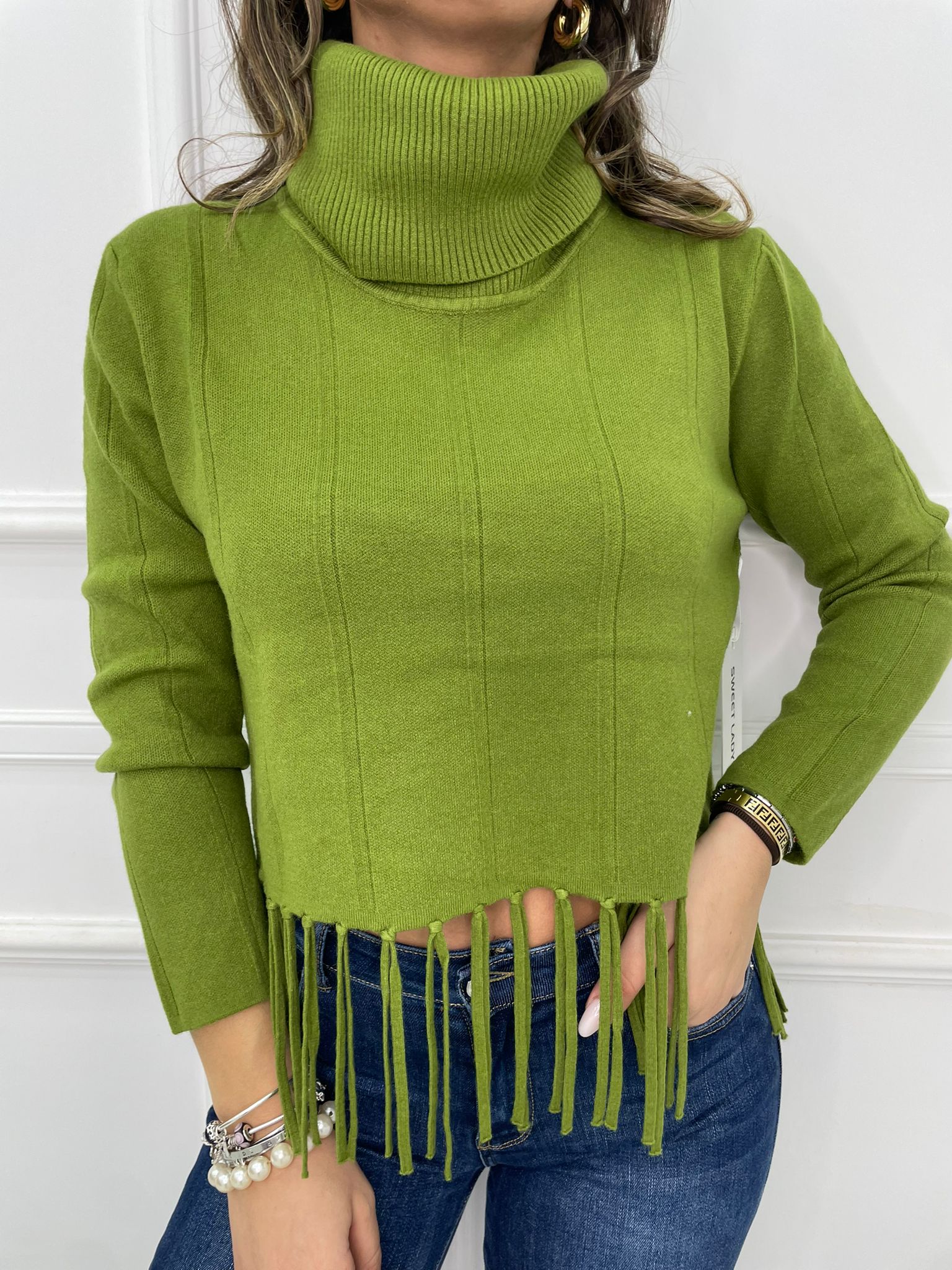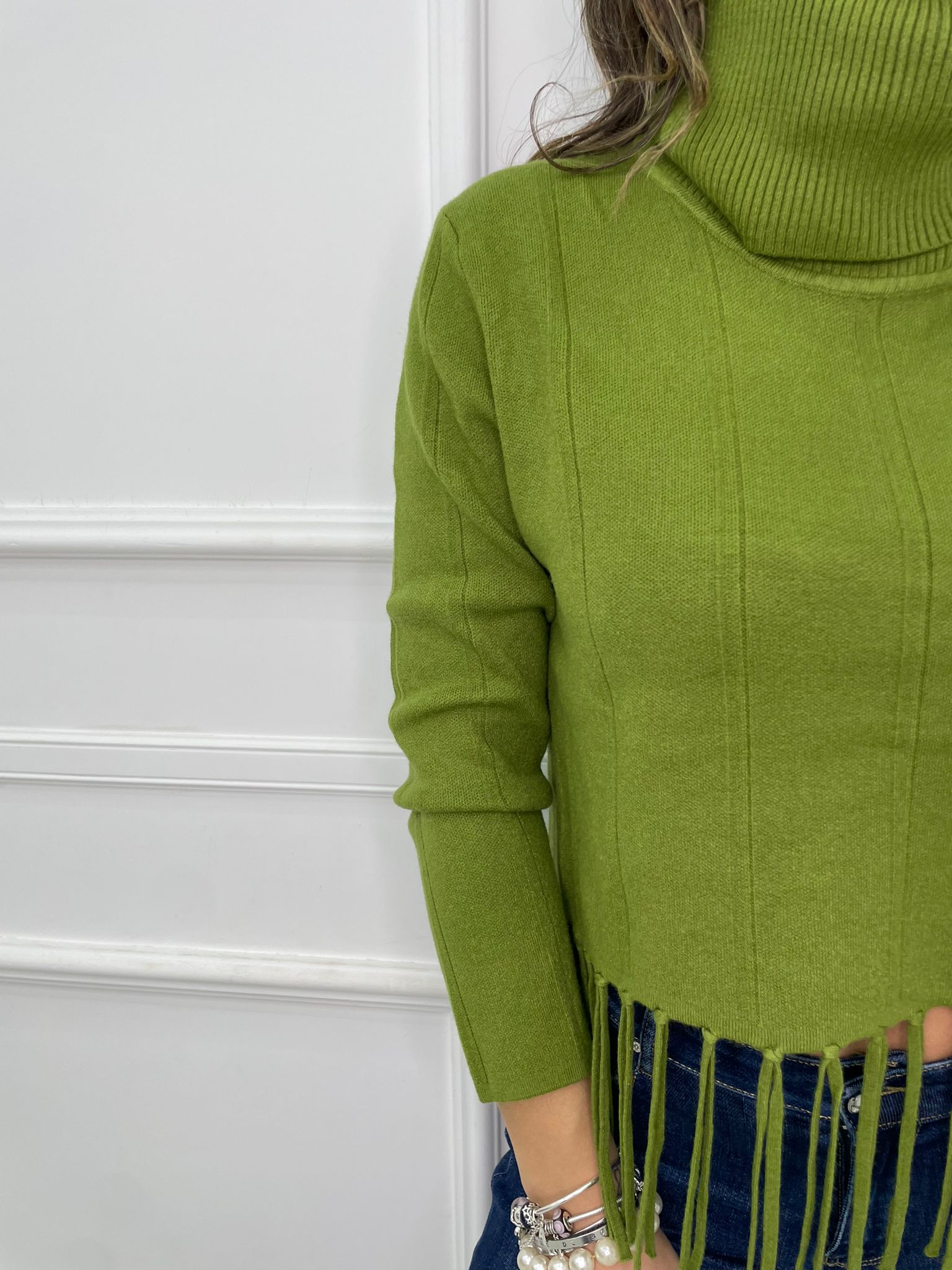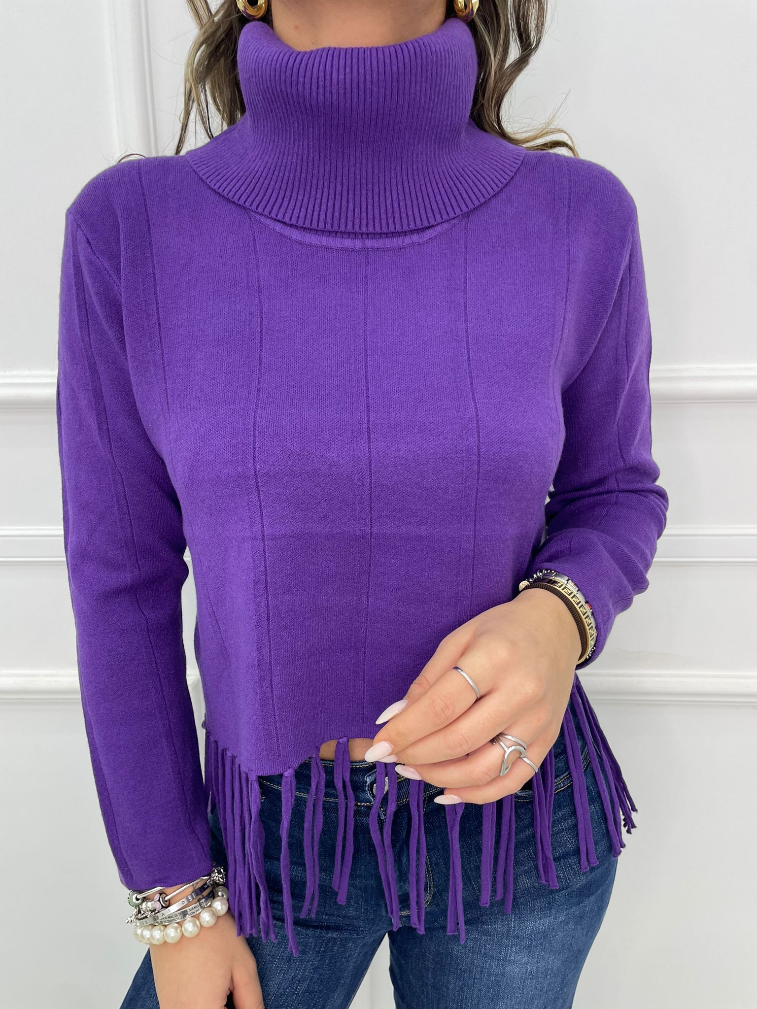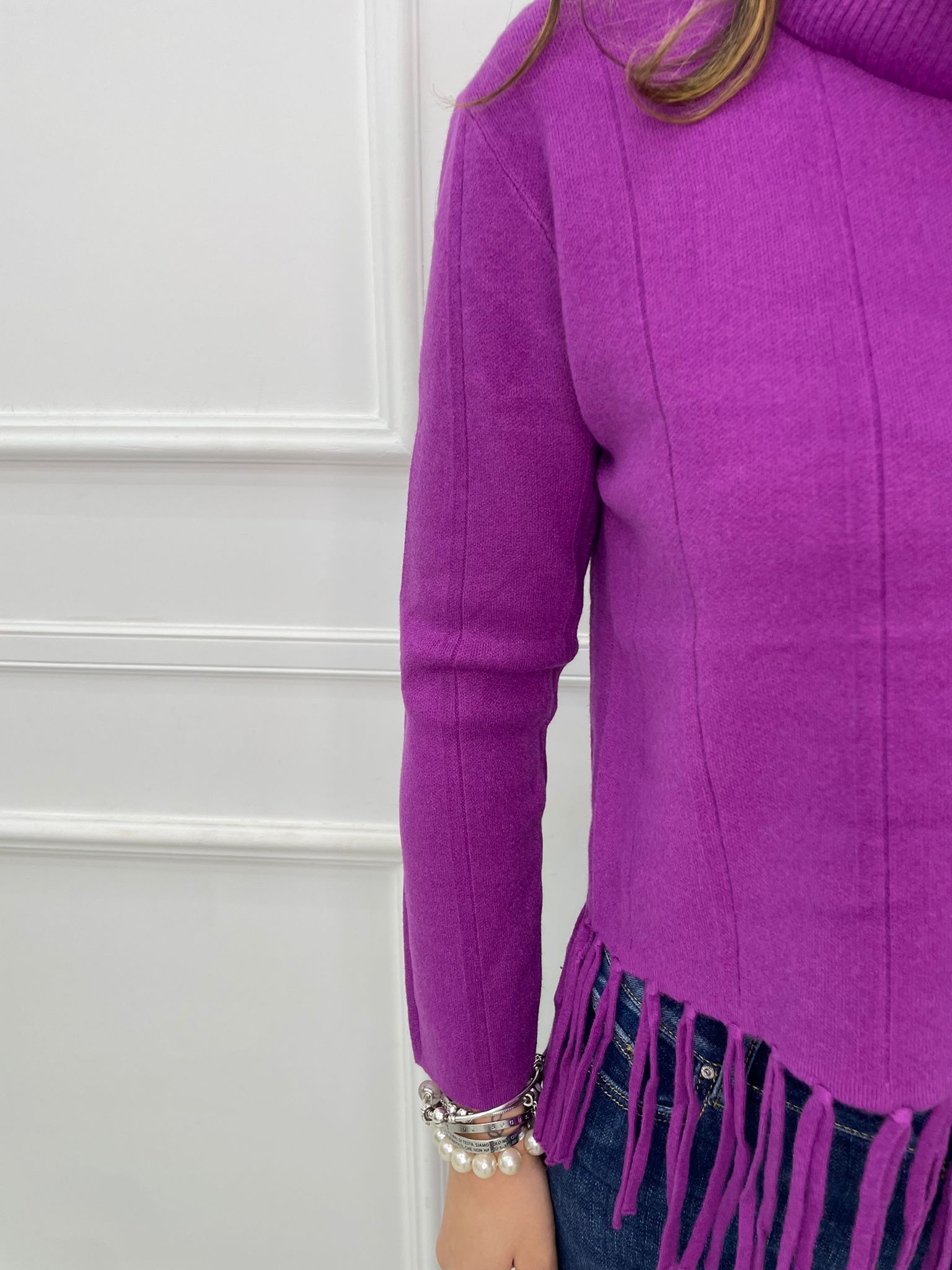 Maglione collo alto con frange sotto