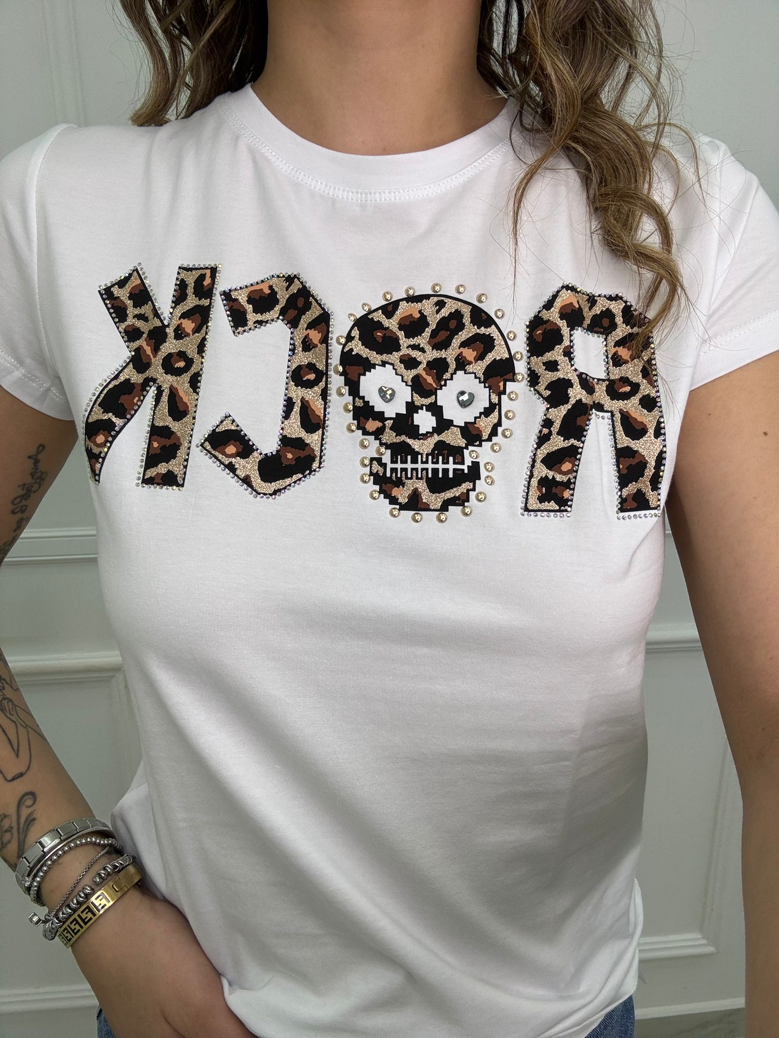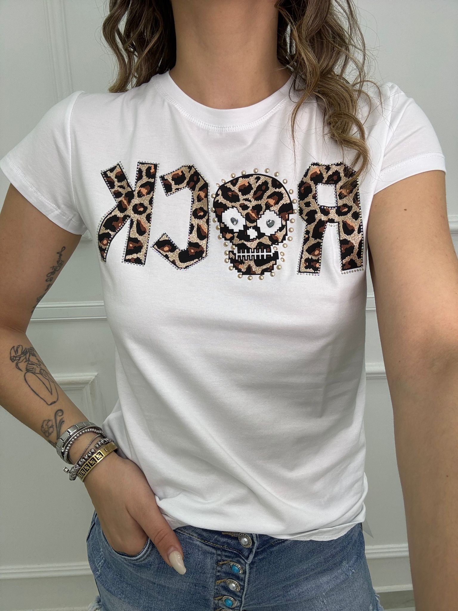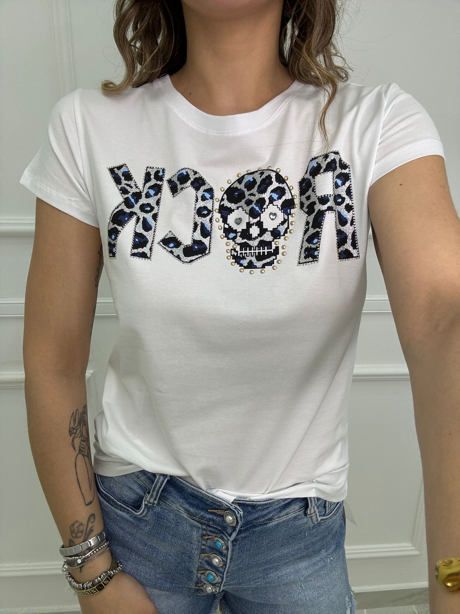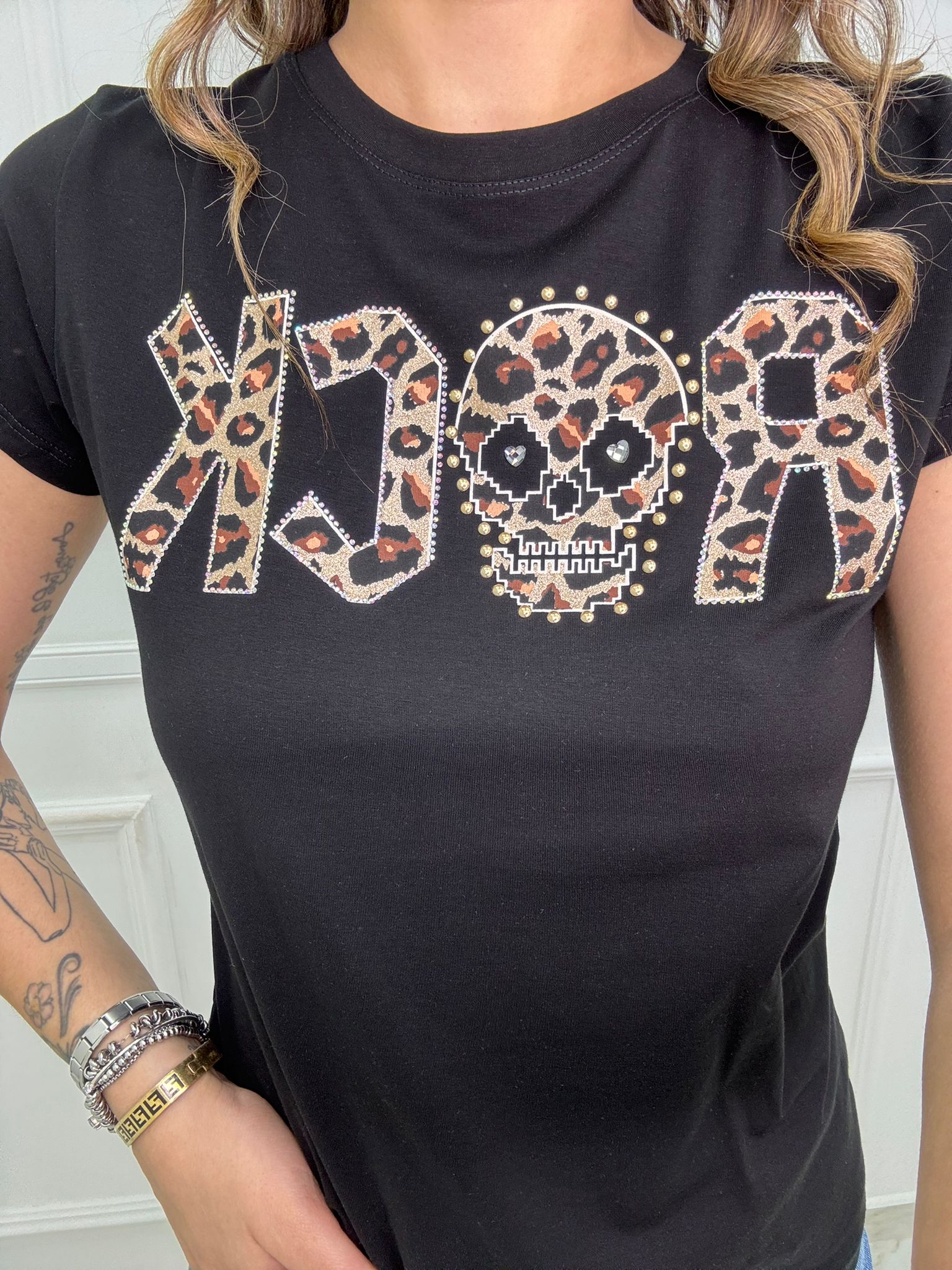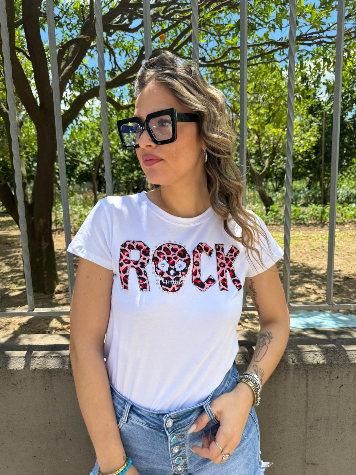 T-shirt con scritta Rock