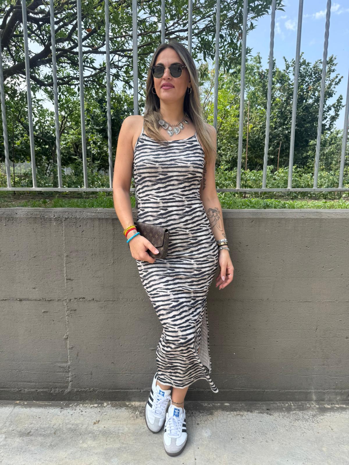 Vestito a costine fantasia striata