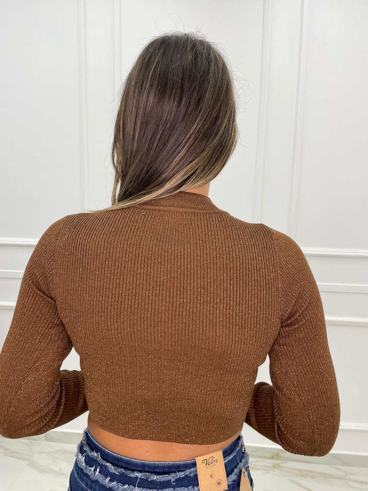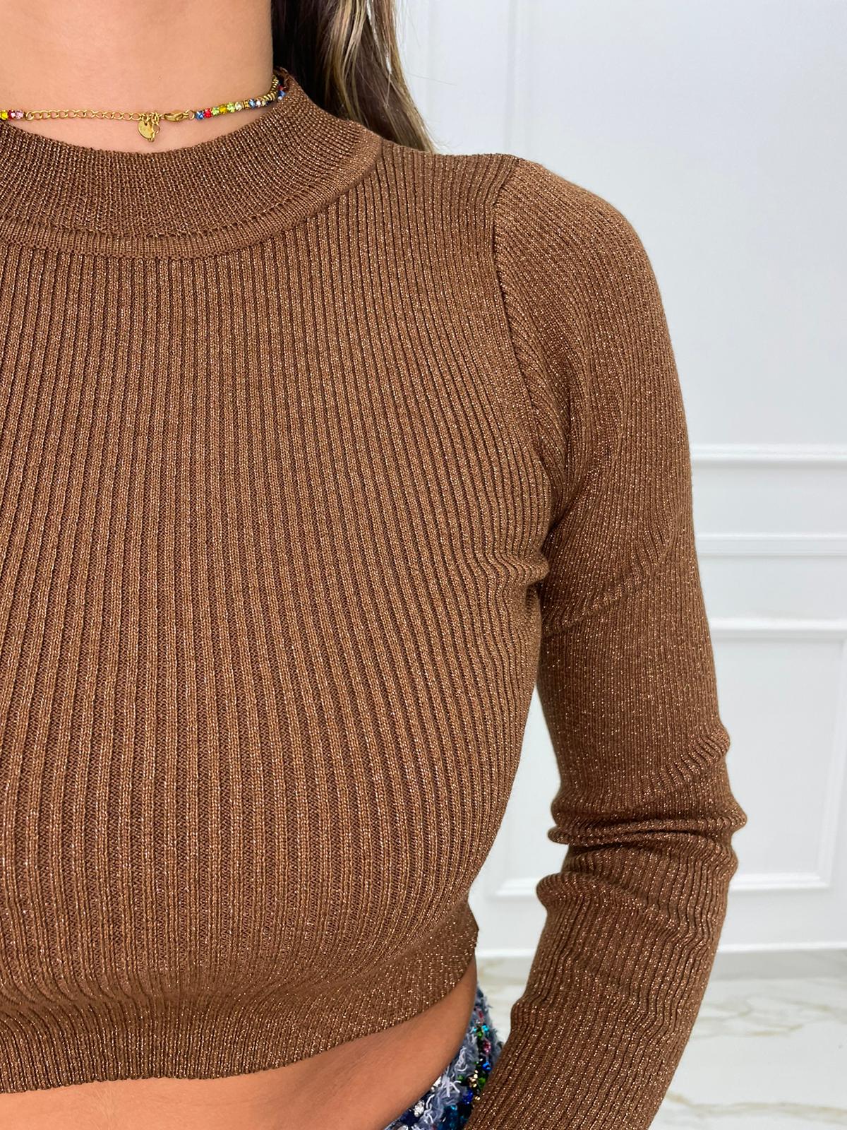 Maglioncino a costine corto laminato